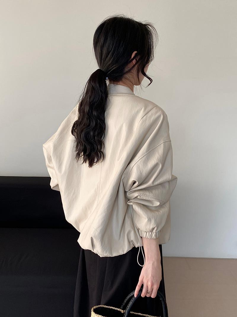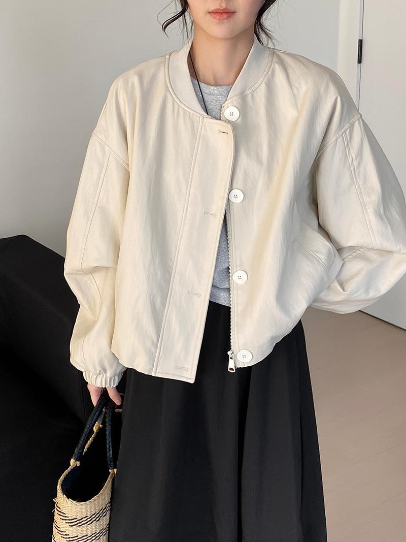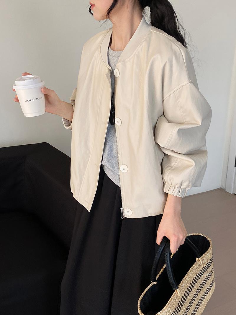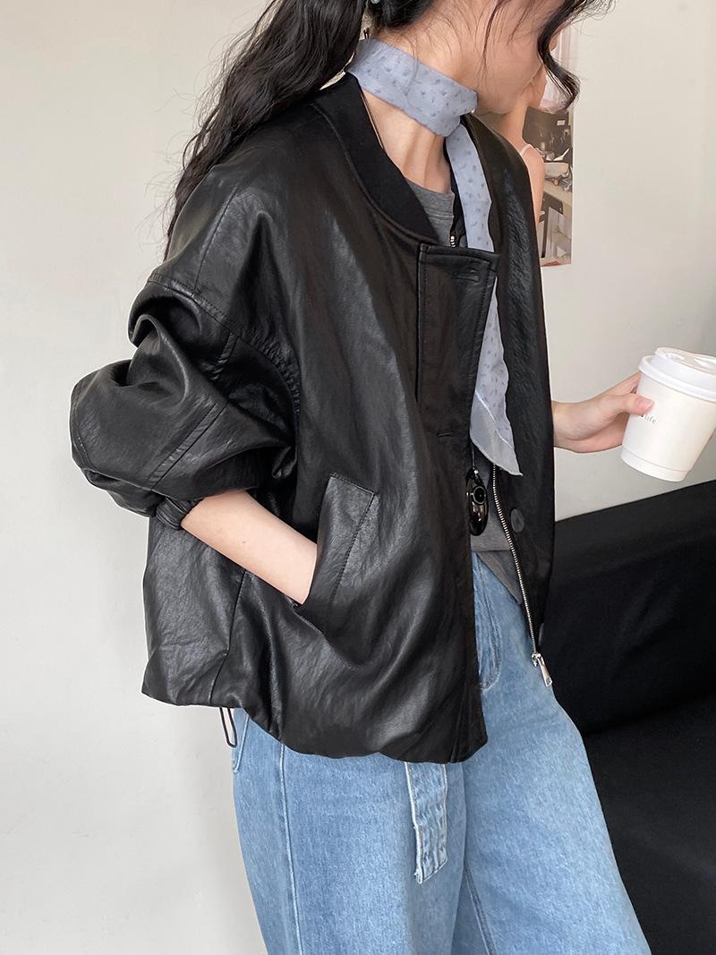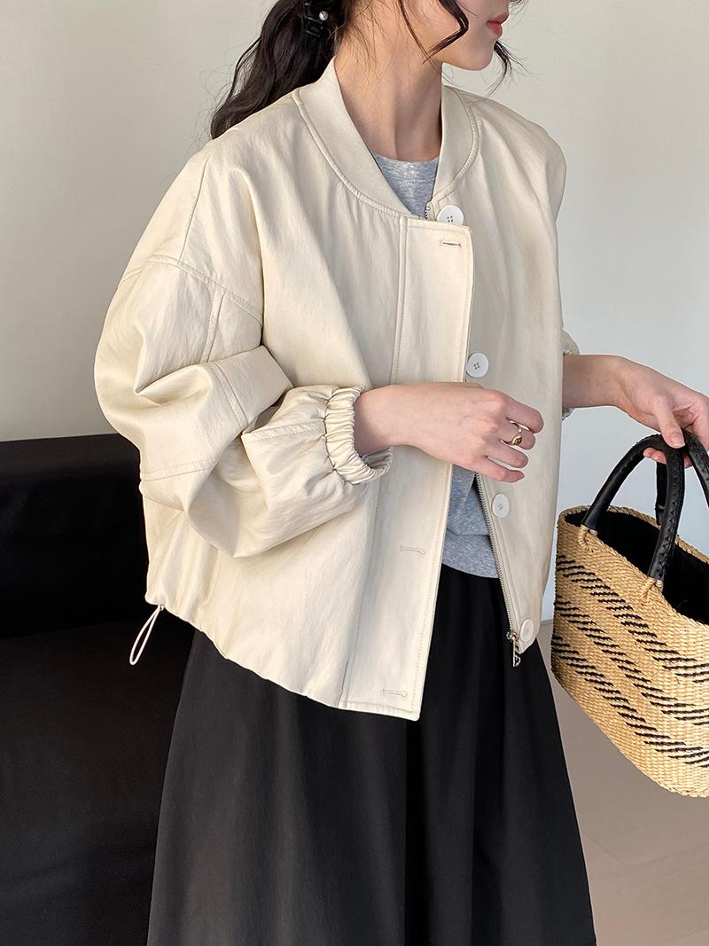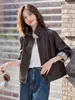 Chaqueta de Cuero para Mujer Estilo Coreano de Primavera y Otoño Cuello Alto Retro Casual Casual Color Sólido Chaqueta Top Corto 2523