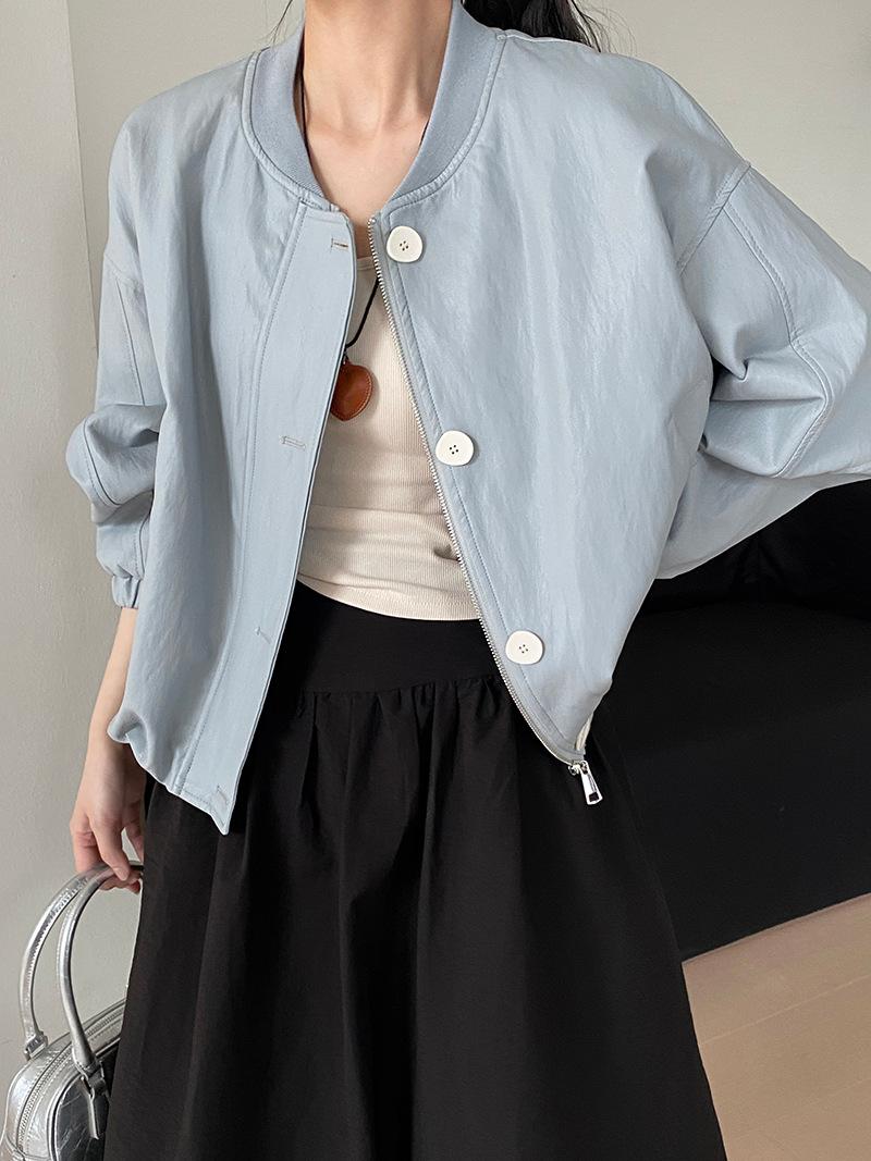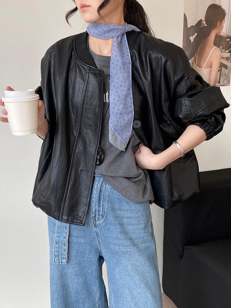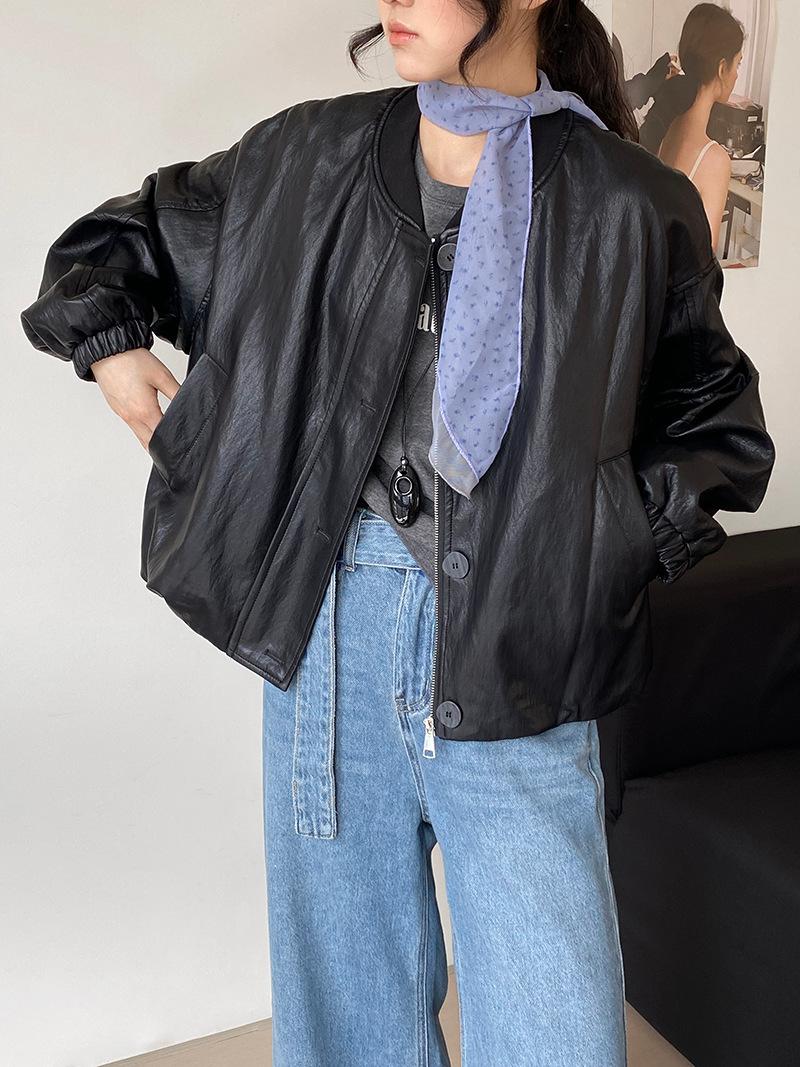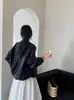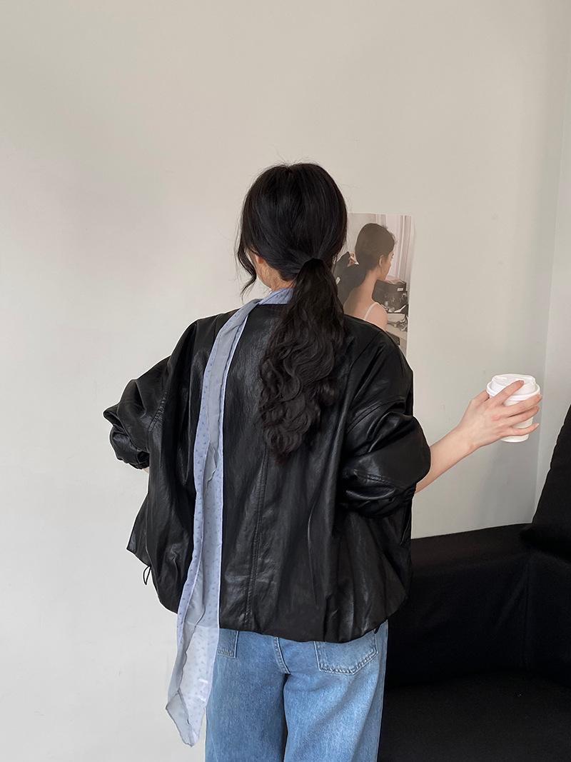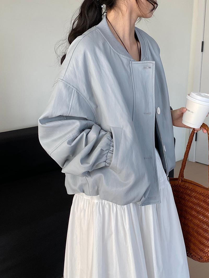 Chaqueta de Cuero para Mujer Estilo Coreano de Primavera y Otoño Cuello Alto Retro Casual Casual Color Sólido Chaqueta Top Corto 2523