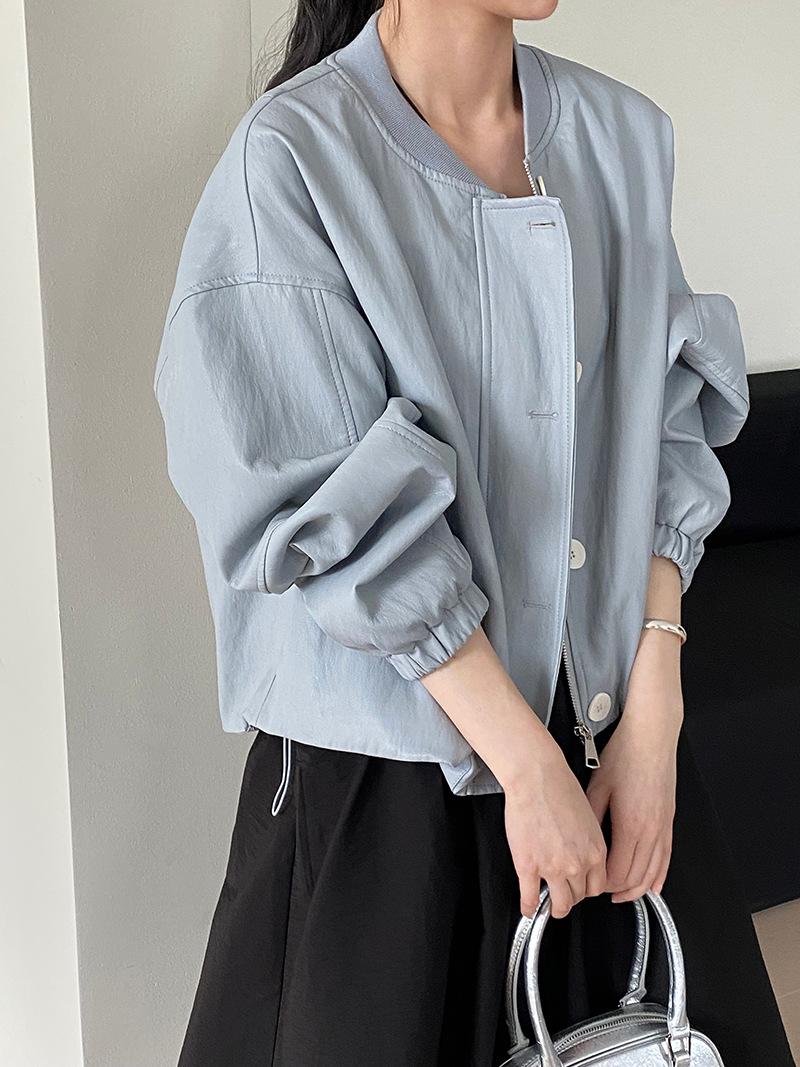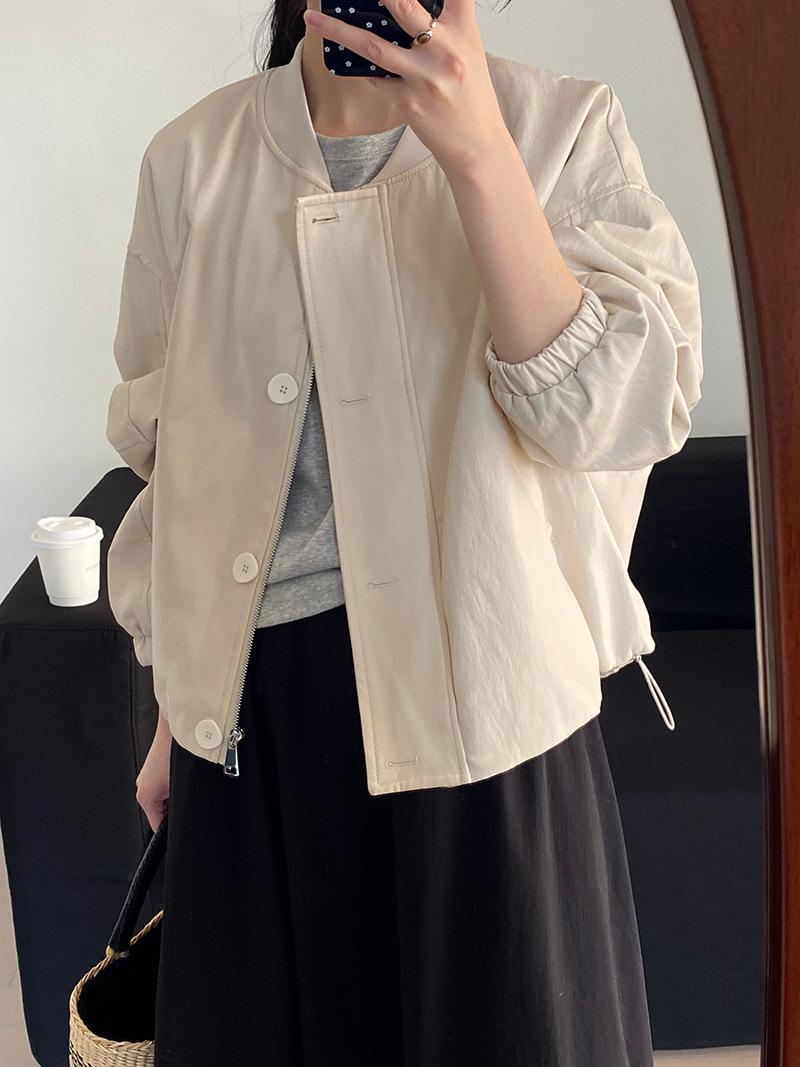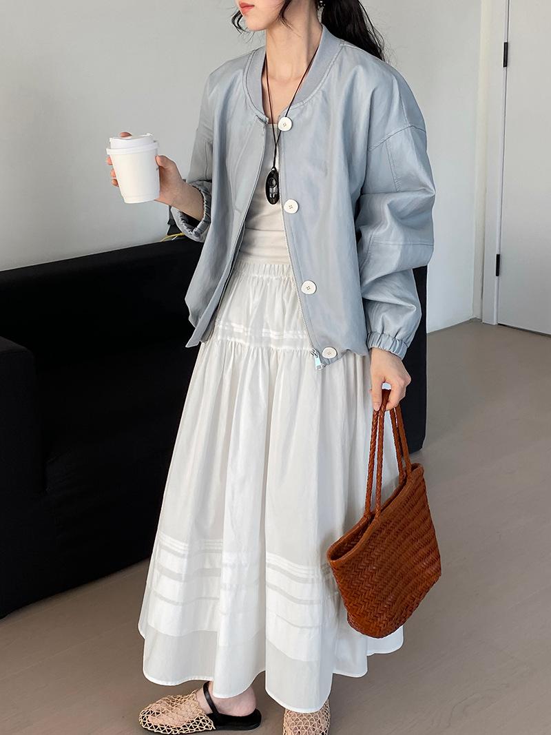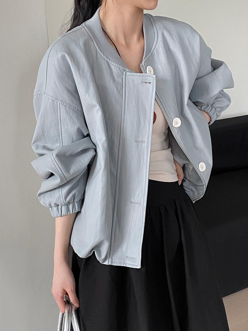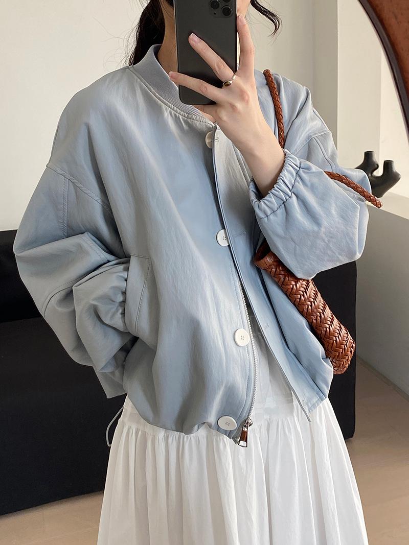 Chaqueta de Cuero para Mujer Estilo Coreano de Primavera y Otoño Cuello Alto Retro Casual Casual Color Sólido Chaqueta Top Corto 2523
