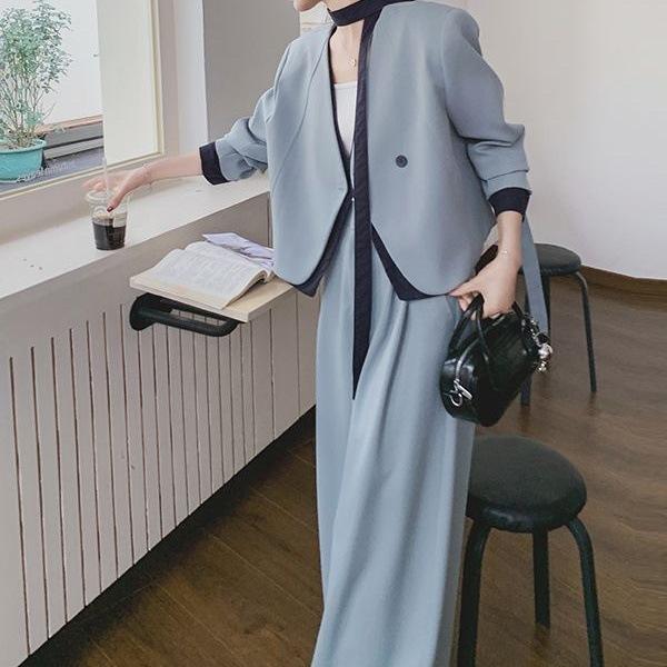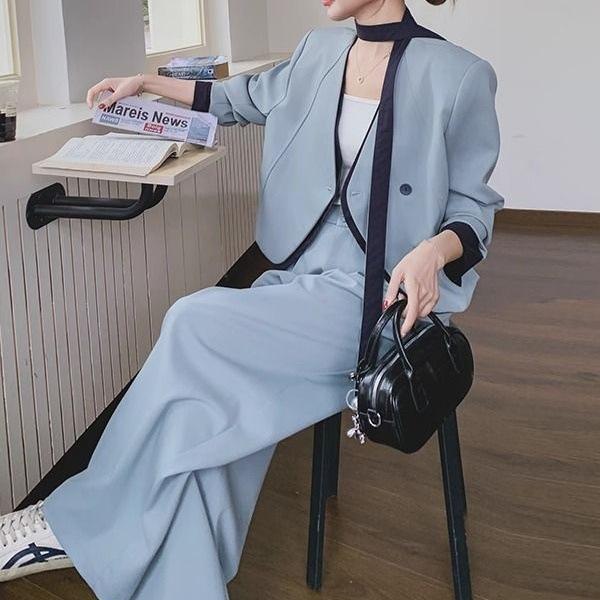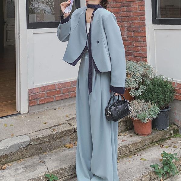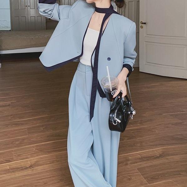 Conjunto de dos piezas de pantalones de traje azul para mujer Primavera y Otoño 2025 Único Hermoso de Alta Gama Estilo Coreano Traje casual Ins
