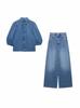 Ropa de Mujer Transfronteriza Europea y Americana 2025 Principios de Primavera Nuevo Estilo Europeo y Americano Camisa de Mezclilla de Manga Corta a la Moda Traje de Pantalón Recto