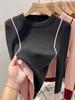 Camisa de punto con cuello redondo y base interior en contraste de color europeo para mujer, otoño e invierno 2024, nuevo suéter coreano elegante y único