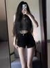 Pantalones cortos ajustados de cintura alta con contraste de color, sexys, de estilo americano, con pierna ancha, calzoncillos, leggings casuales para mujer
