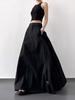Falda Americana de Trabajo para Mujer Verano Cintura Alta Retro Abertura Lateral Plisada A-Line Cubre Caderas Largo Medio Estilo Deportivo Recta