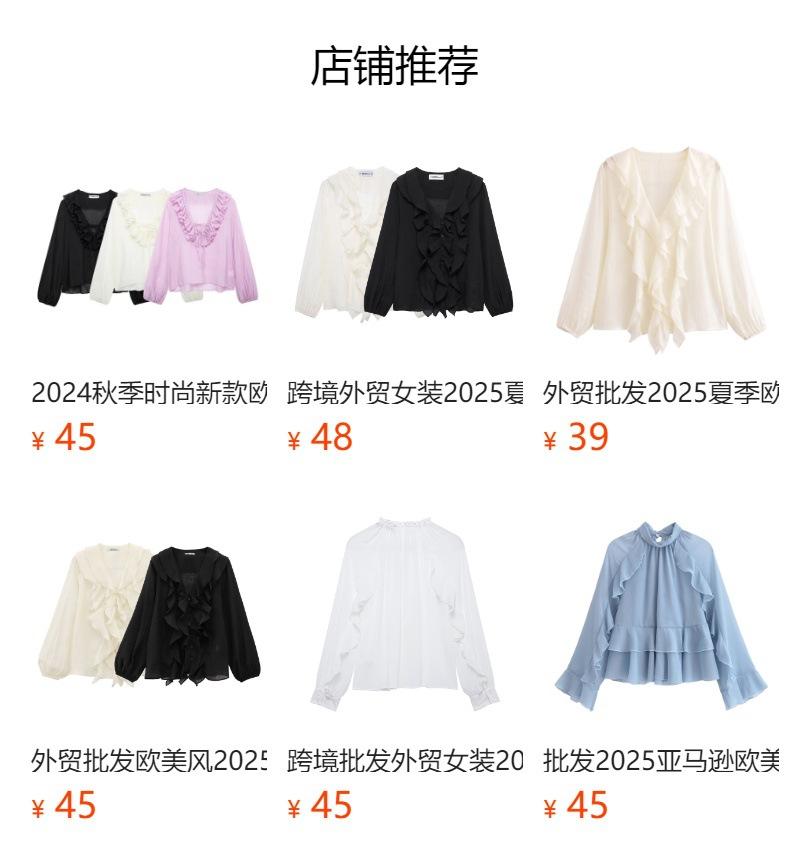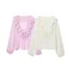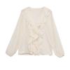 Exportación Transfronteriza Ropa de Mujer 2025 Verano Estilo Europeo y Americano Decoración de Volantes Cuello en V Camisas de Manga Larga Tops para Mujeres B482085