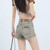 Shorts de mezclilla retro estilo americano para chica sexy, nuevos de primavera y verano, sexy, cintura alta, adelgazantes, línea A, cadera, super cortos, pantalones calientes
