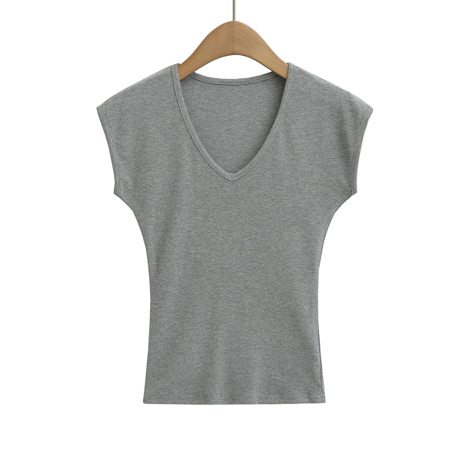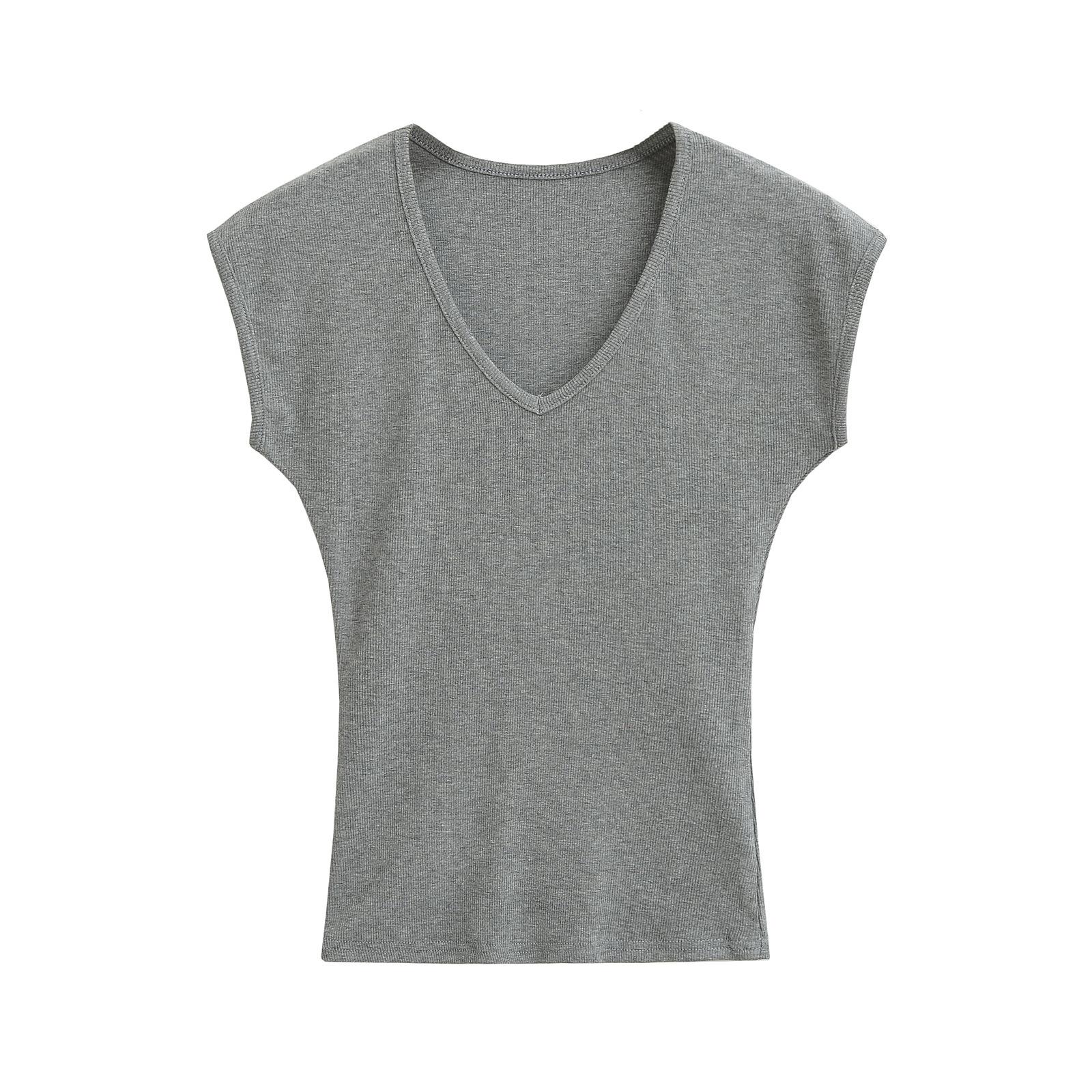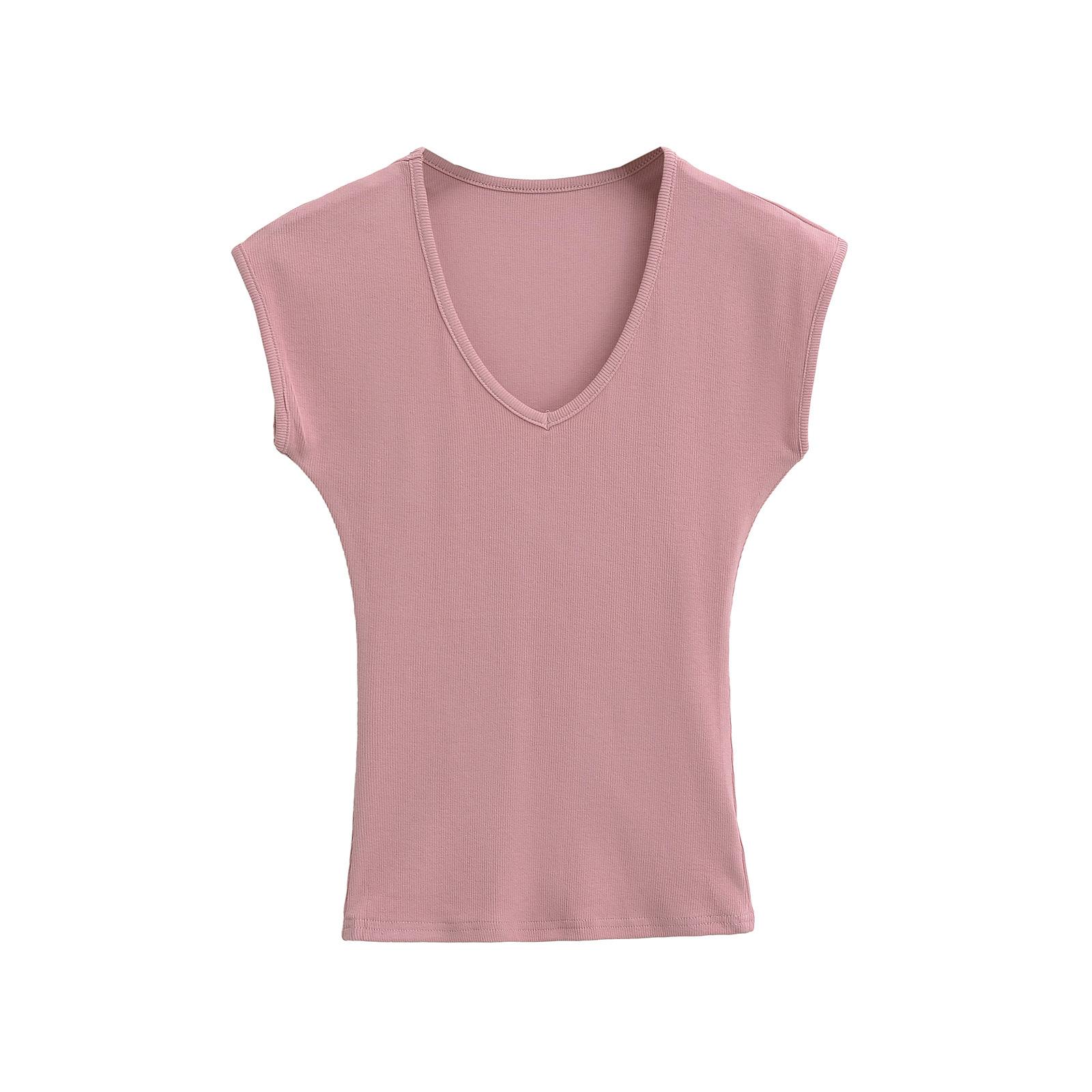 Comercio exterior transfronterizo Ropa de mujer europea y americana Verano 2025 Nuevo estilo europeo y americano Moda simple Temperamento Cuello redondo Manga corta delgada T