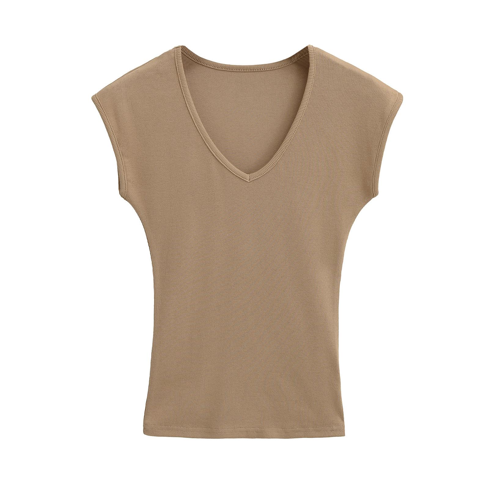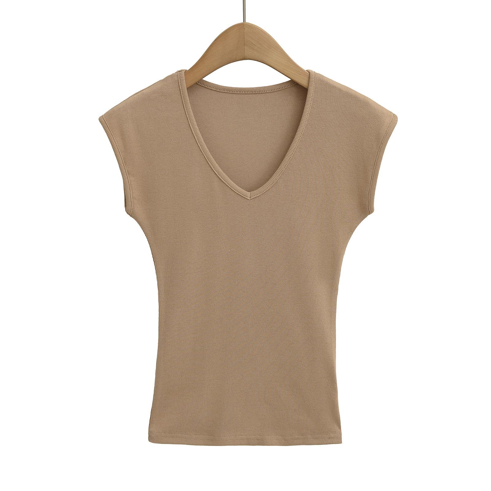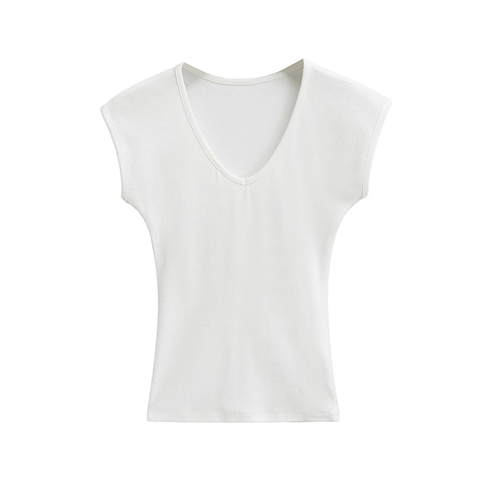 Comercio exterior transfronterizo Ropa de mujer europea y americana Verano 2025 Nuevo estilo europeo y americano Moda simple Temperamento Cuello redondo Manga corta delgada T