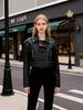 Chaqueta de Cuero para Motocicleta de PU Gris Lavado Transfronteriza para Mujer, Solapa Corta con Cinturón, Chaqueta Retro Europea y Americana para Mujer