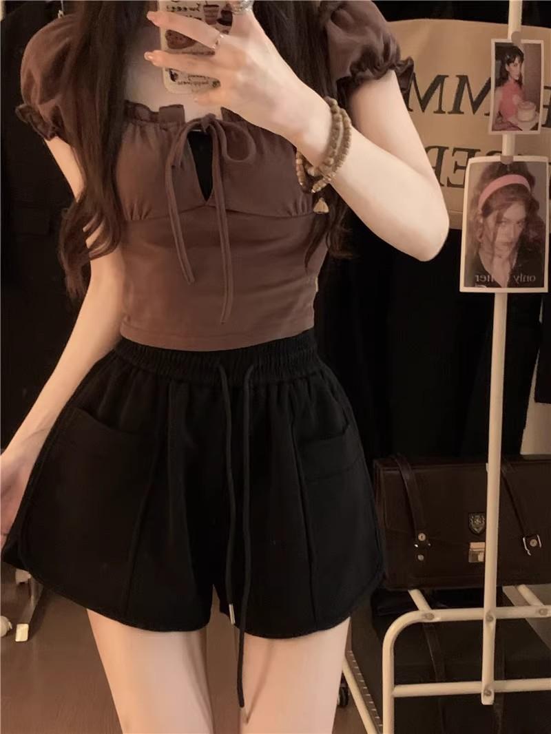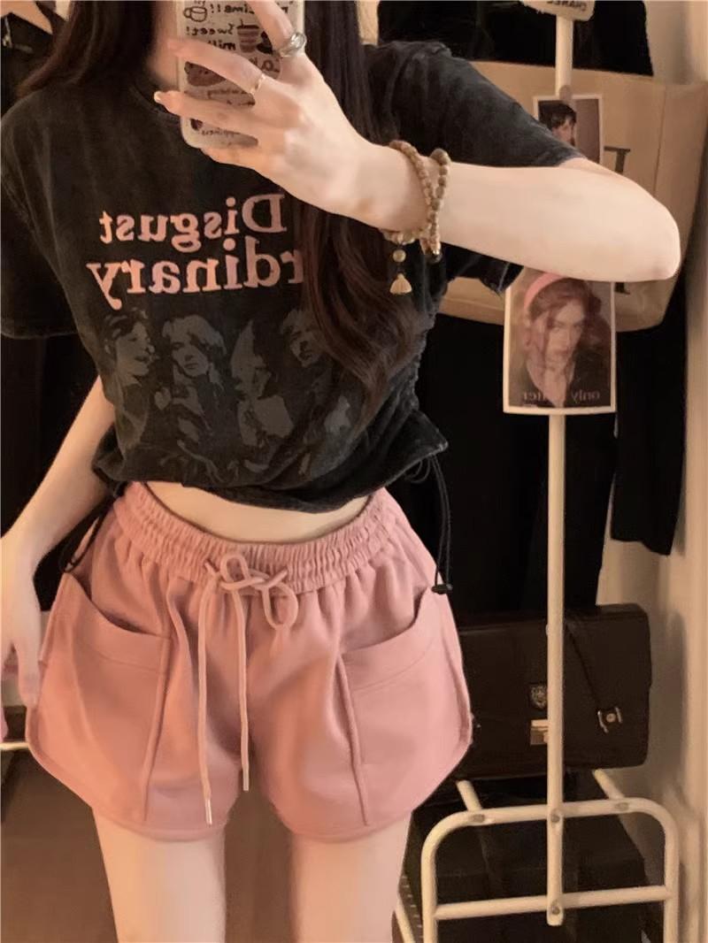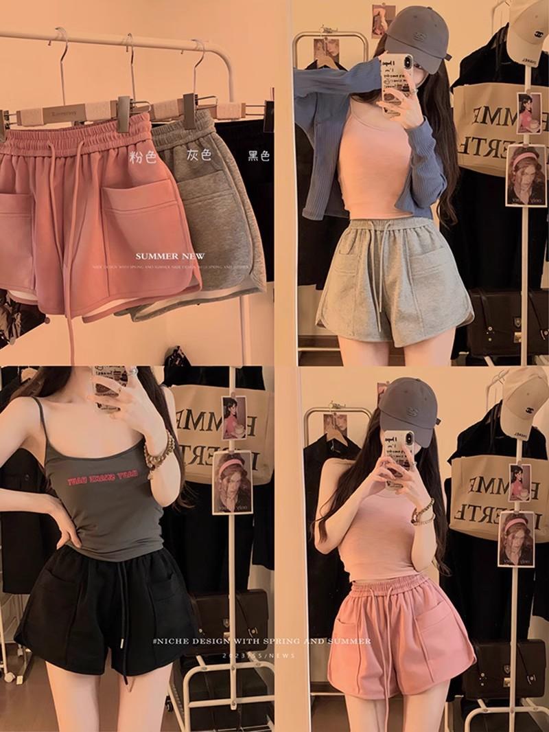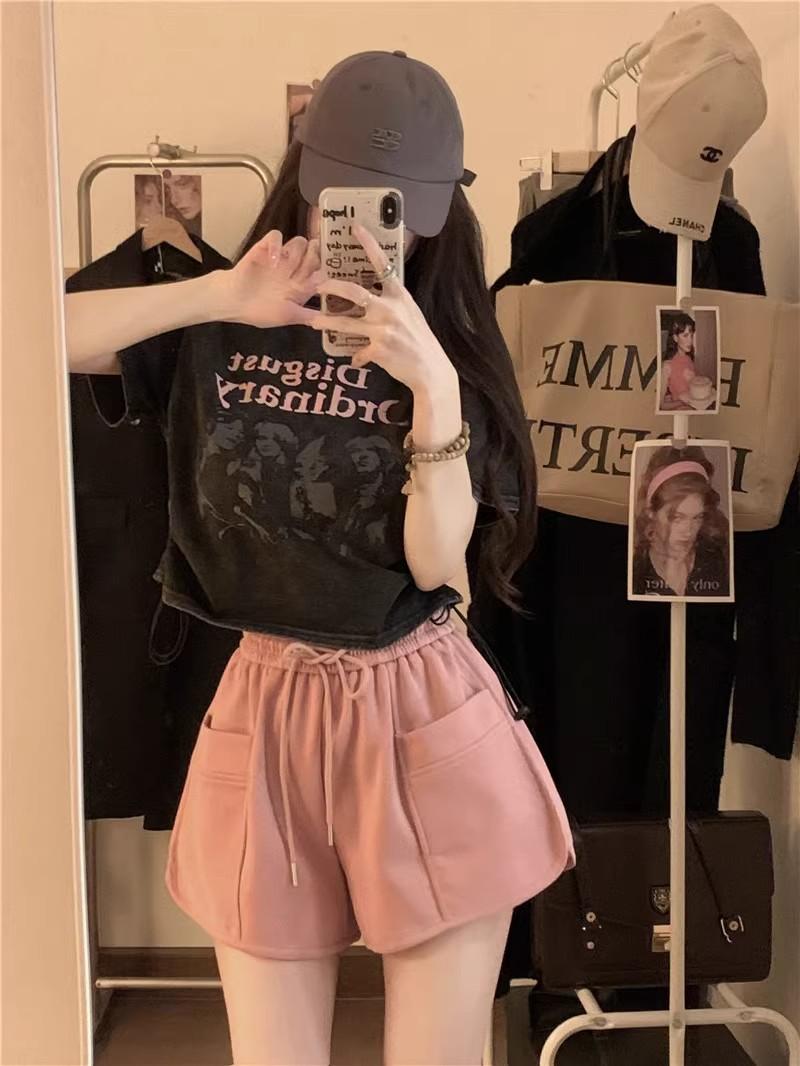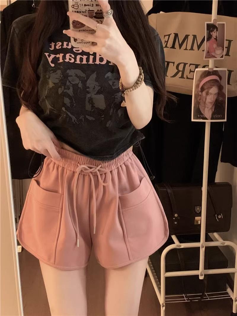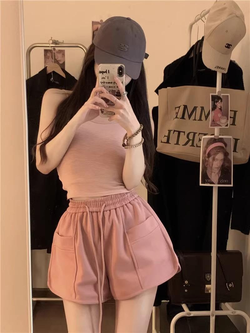 Pantalones Rosas Pantalones Deportivos para Mujer Verano Cordón Casual Pantalones Sueltos de Pierna Ancha Adelgazantes Pequeños A- Shorts Trendy