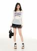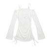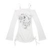 TKPA Camiseta de Manga Larga Estilo Americano con Estampado de Chica Sexy para Mujer Primavera y Verano Tirantes Cintura Ajustada Ajuste Entallado Sexy Hombro Top de Largo Medio