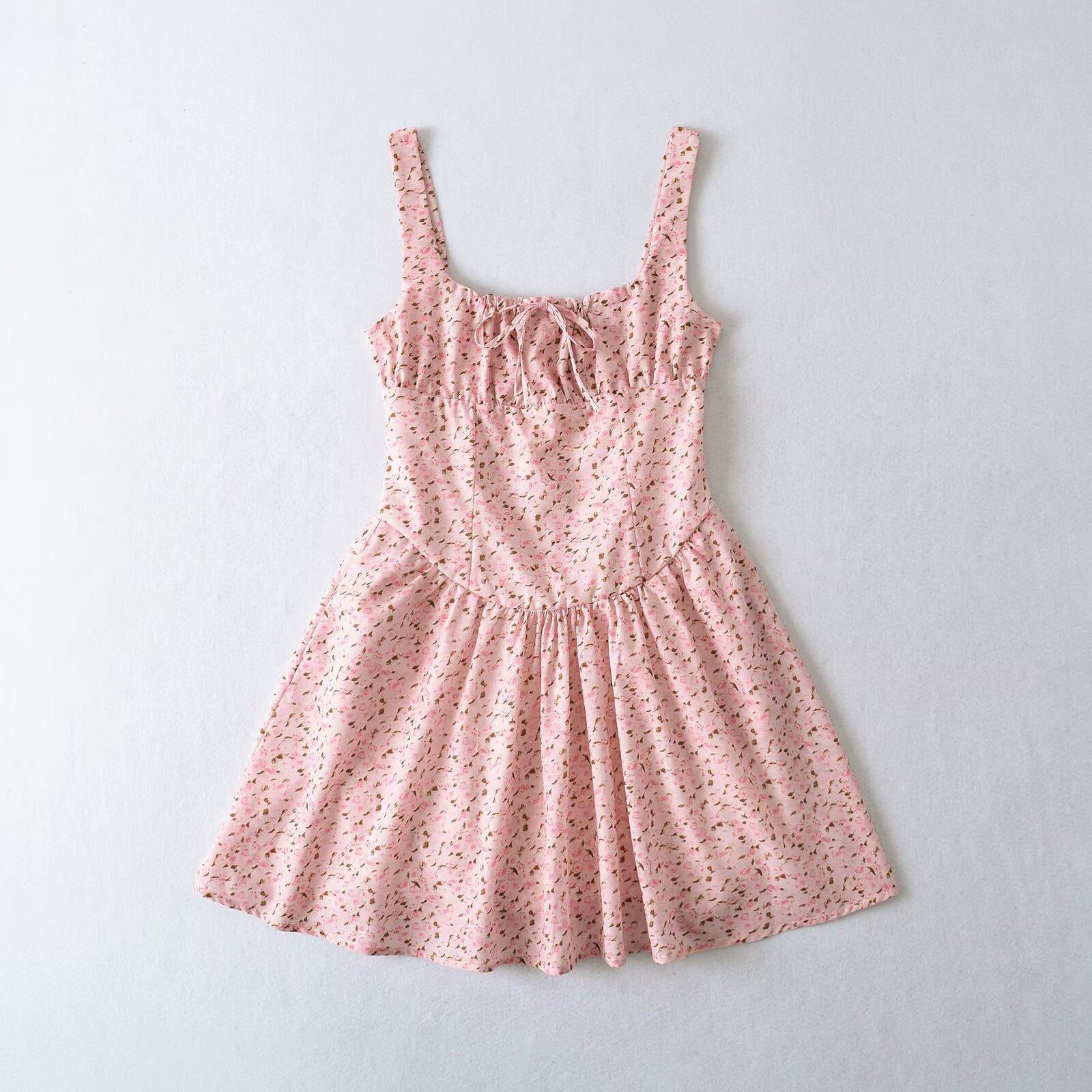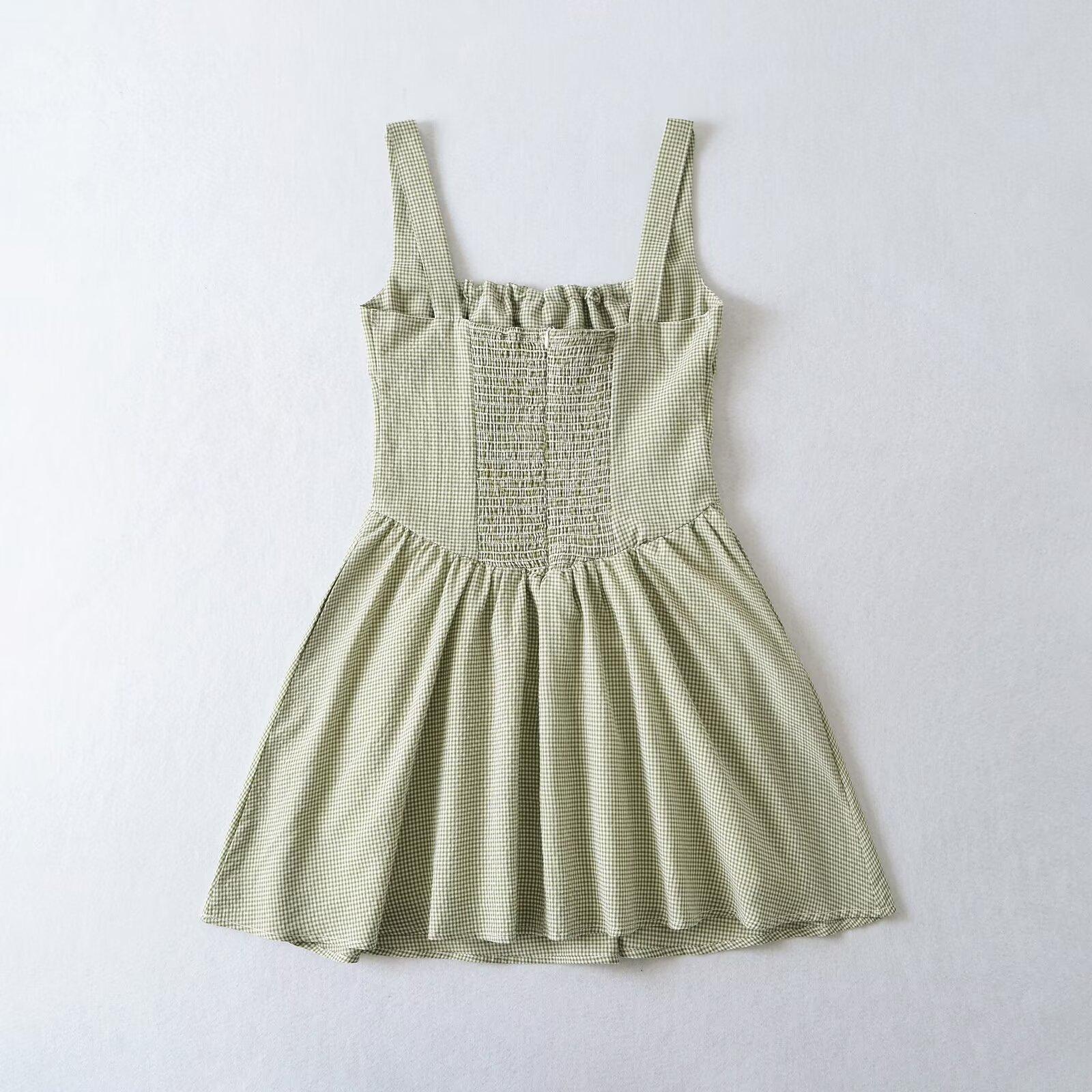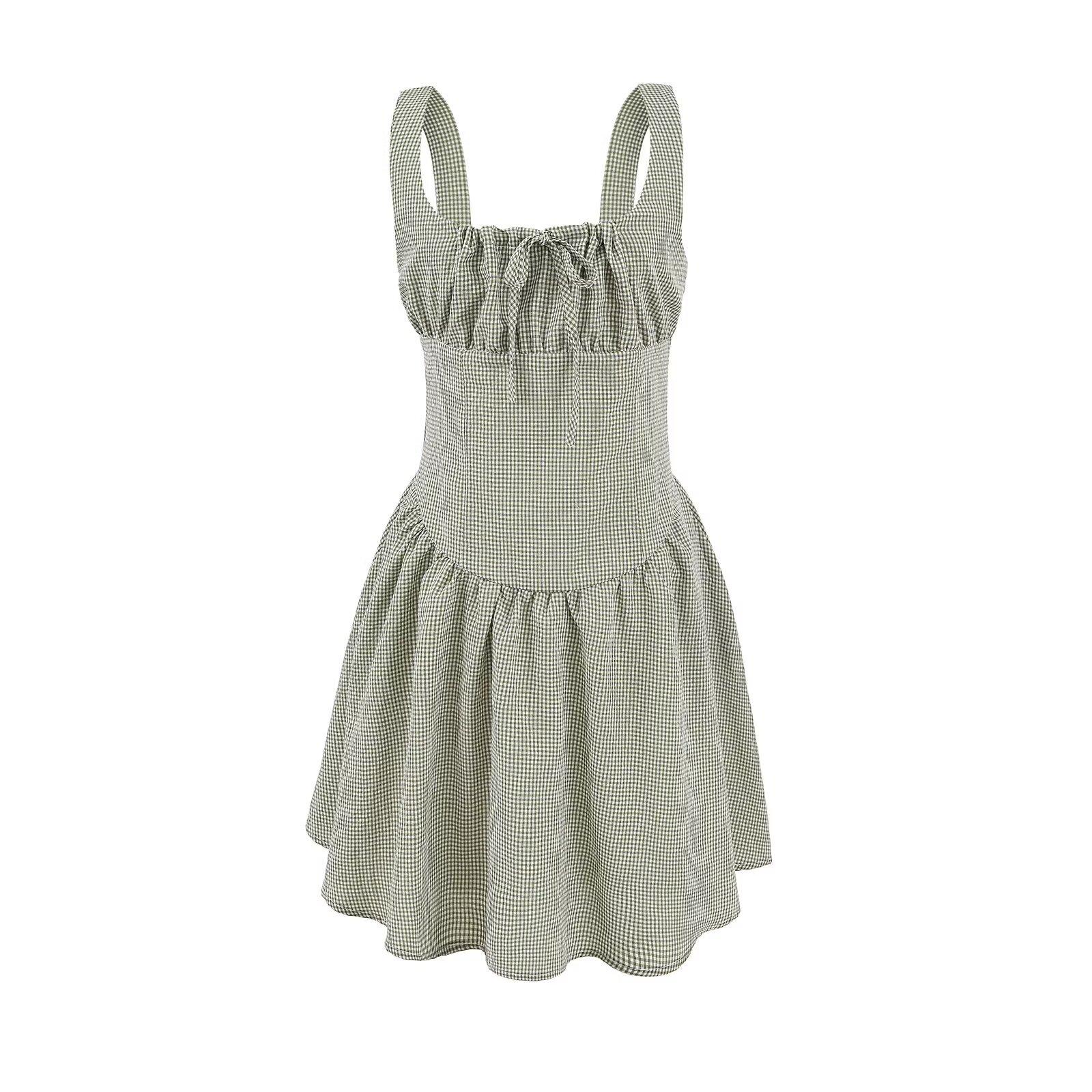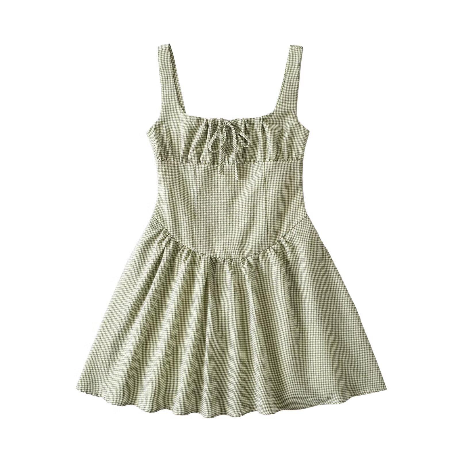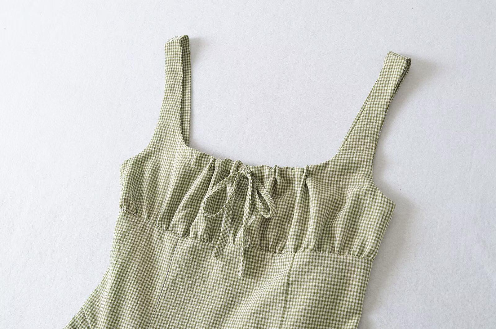 6057-Estilo Europeo y Americano Sexy Sexy Espalda Descubierta Mochila Falda de Cadera para Mujer 2025 Nuevo Encaje Encaje Cuadros Vestido de Tirantes