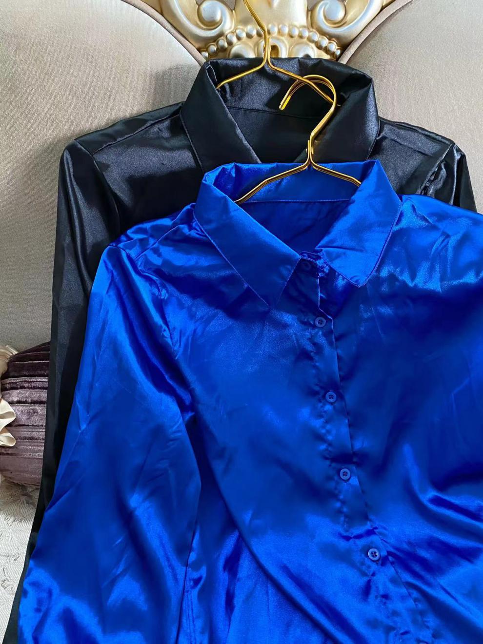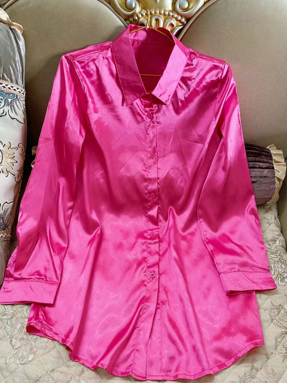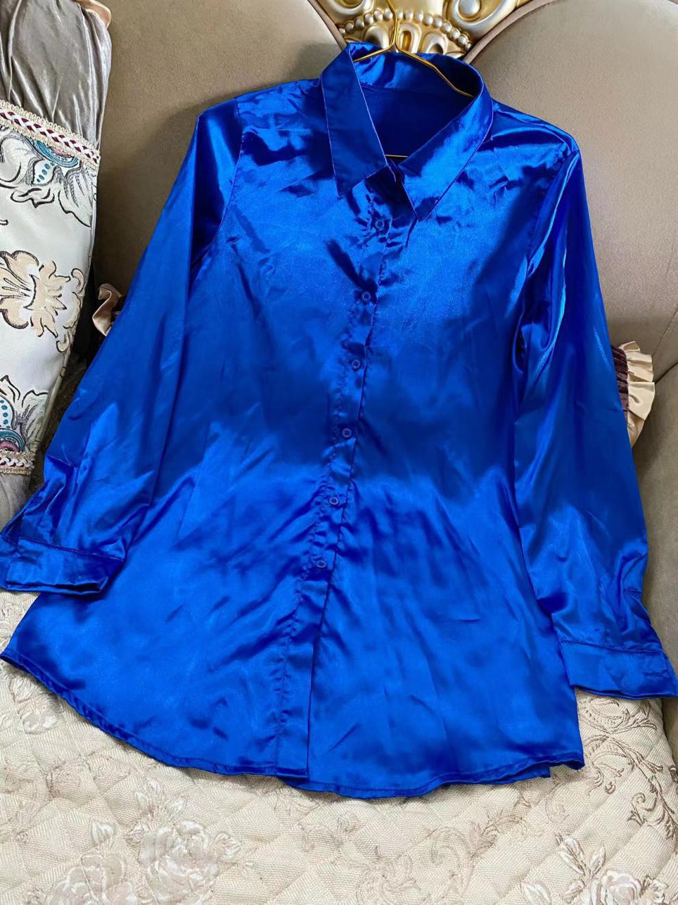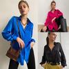 2022 Ventas Calientes Nuevo Aliexpress Transfronterizo Popular Manga Larga Elegante Camisa Solapa Top Camisa de Satén Brillante para Mujer