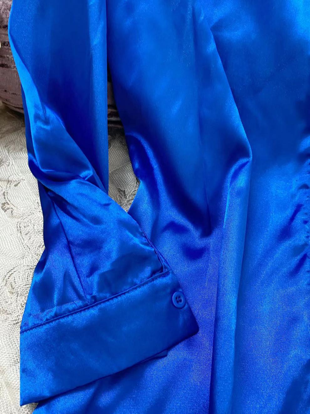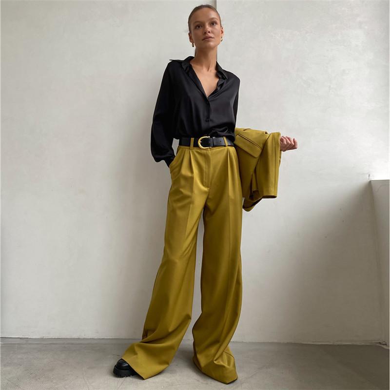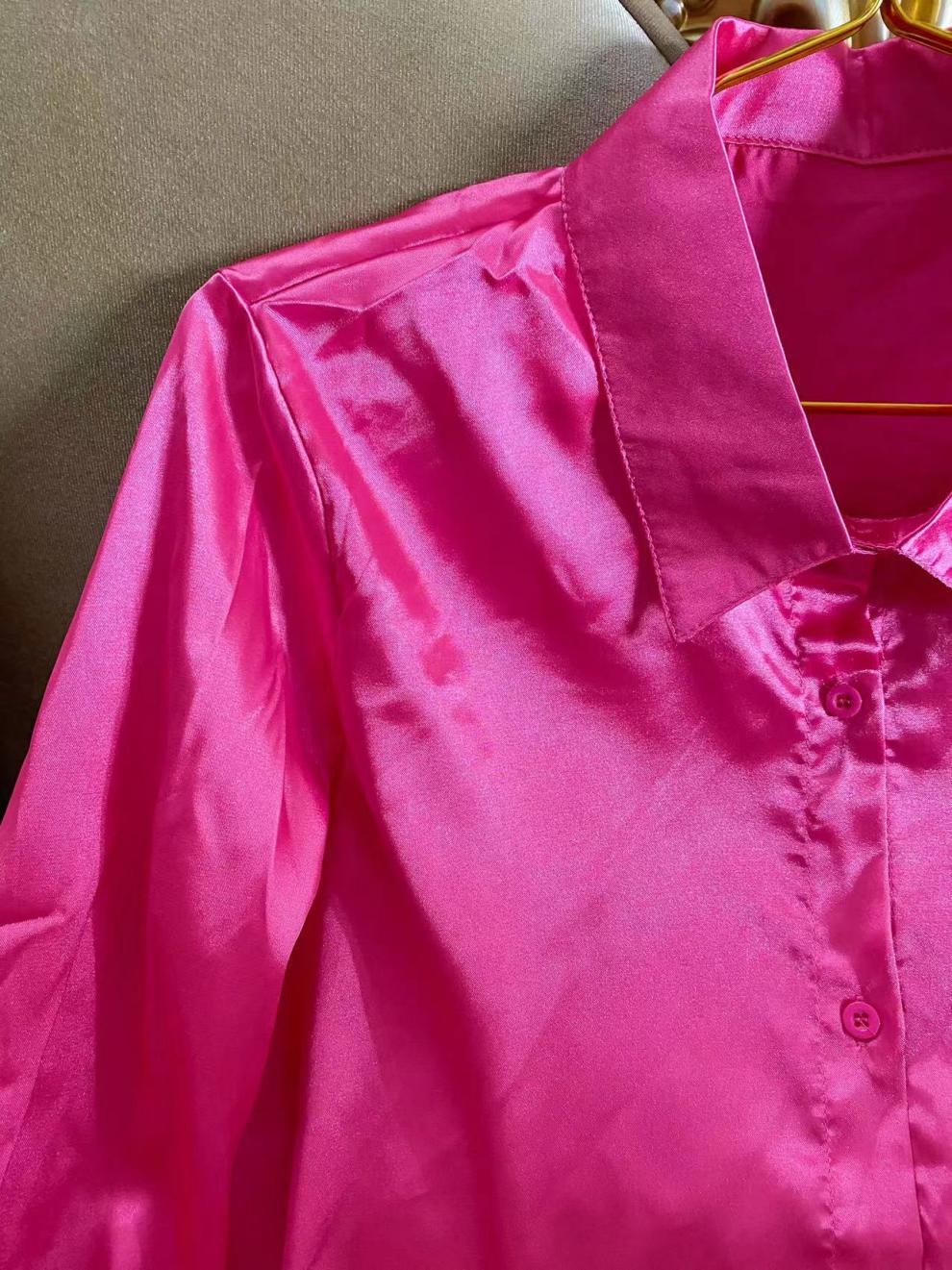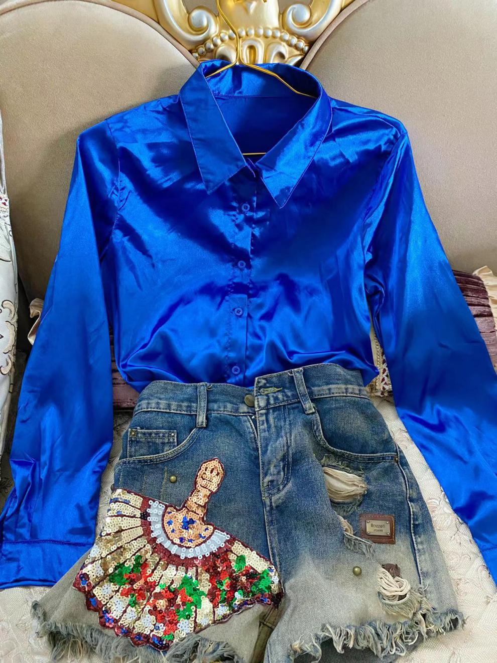 2022 Ventas Calientes Nuevo Aliexpress Transfronterizo Popular Manga Larga Elegante Camisa Solapa Top Camisa de Satén Brillante para Mujer