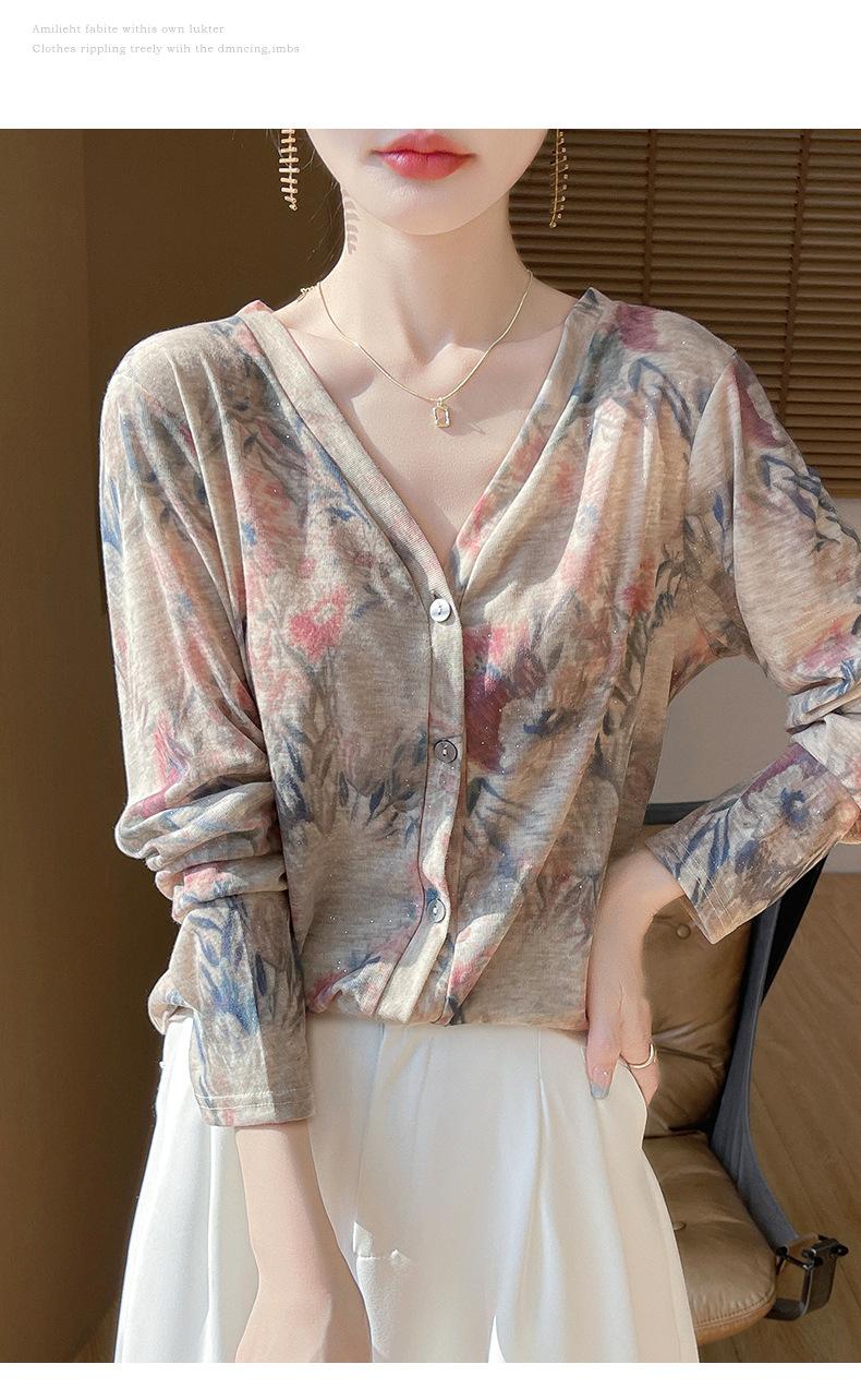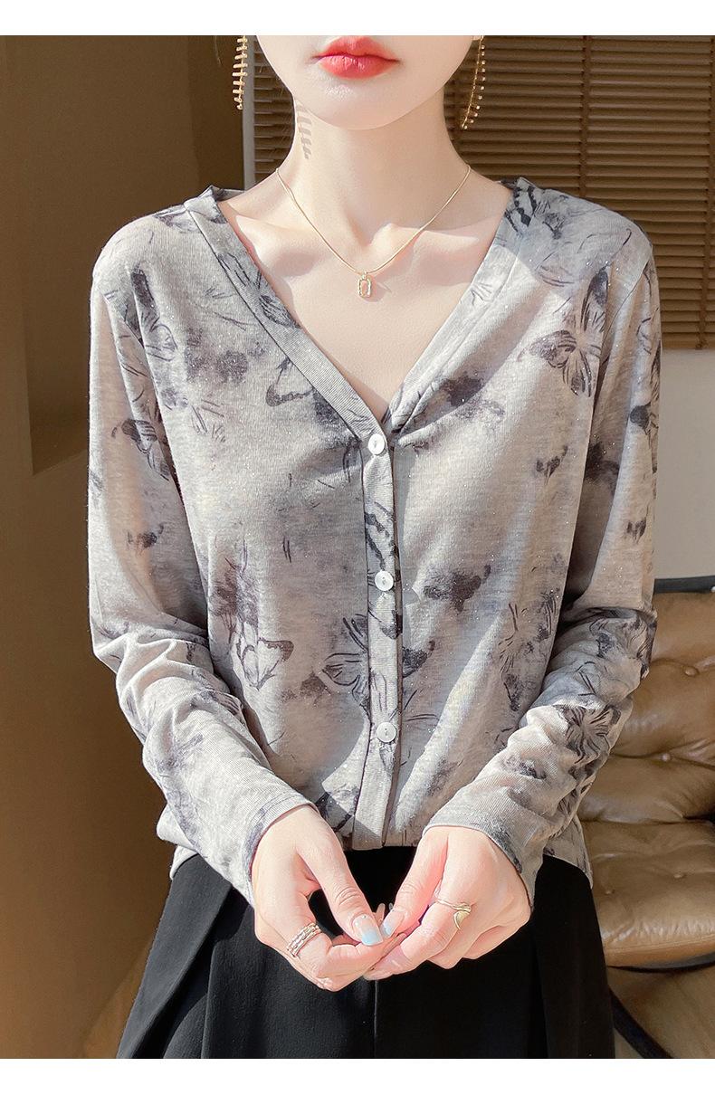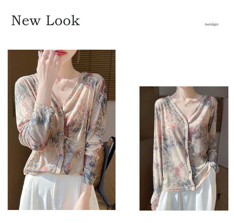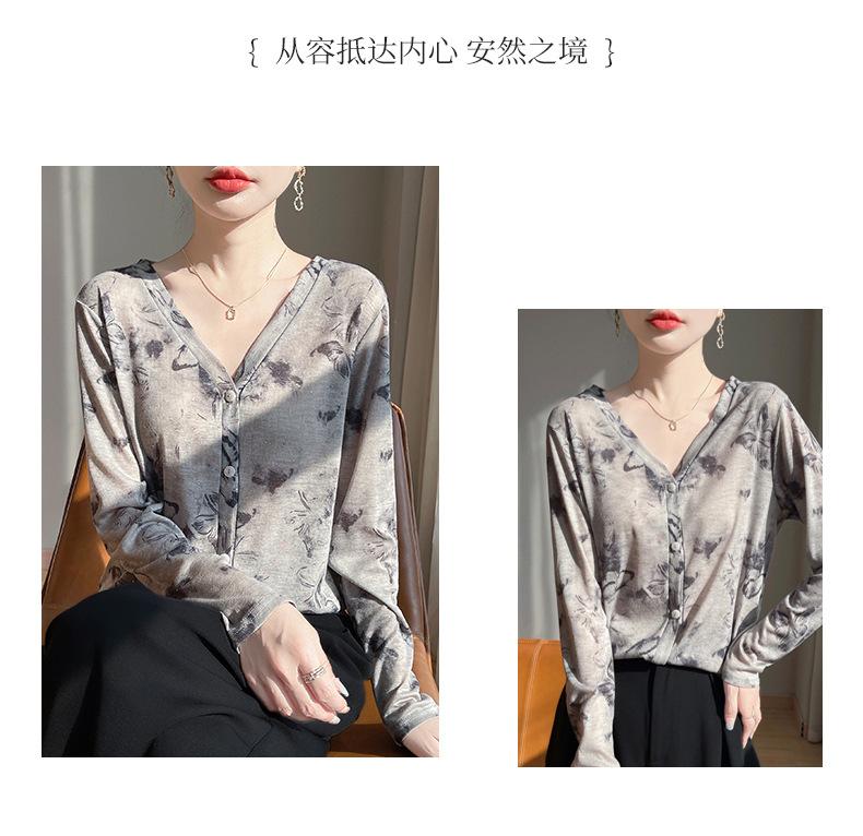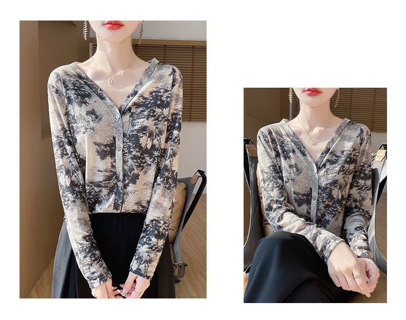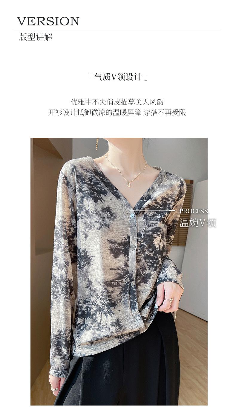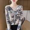 Venta al por Mayor Transfronteriza 2025 Verano Nuevo Cuello en V Manga Larga Estampado Tie-Dye Suéter Holgado Cárdigan Tejido de Punto para Mujer