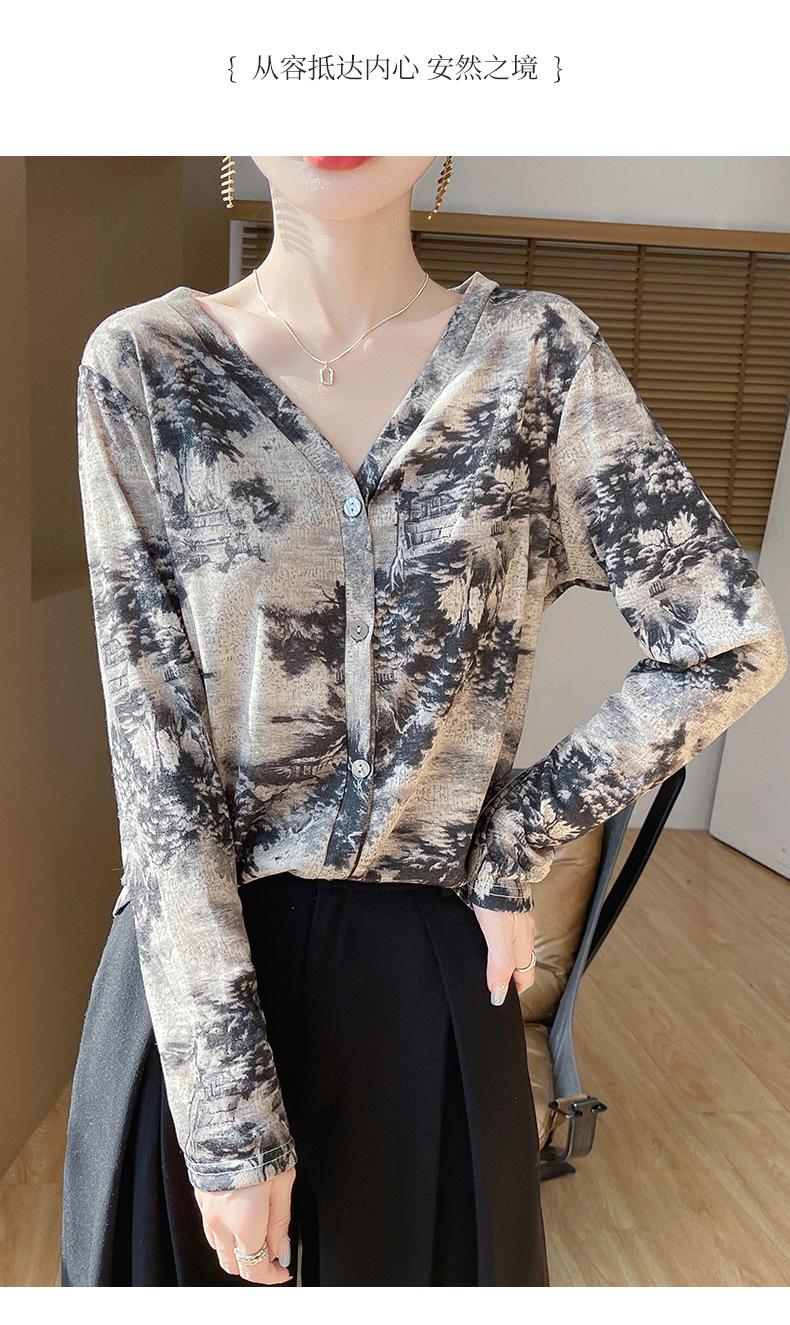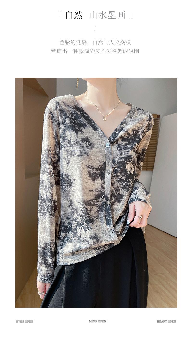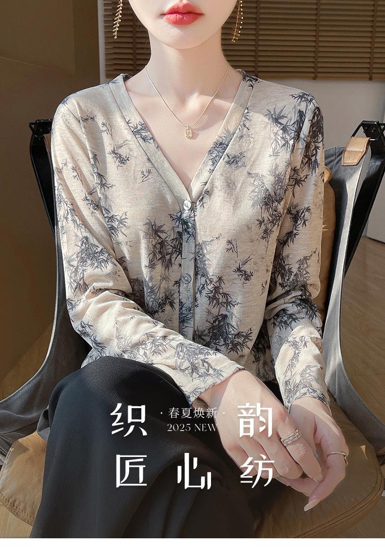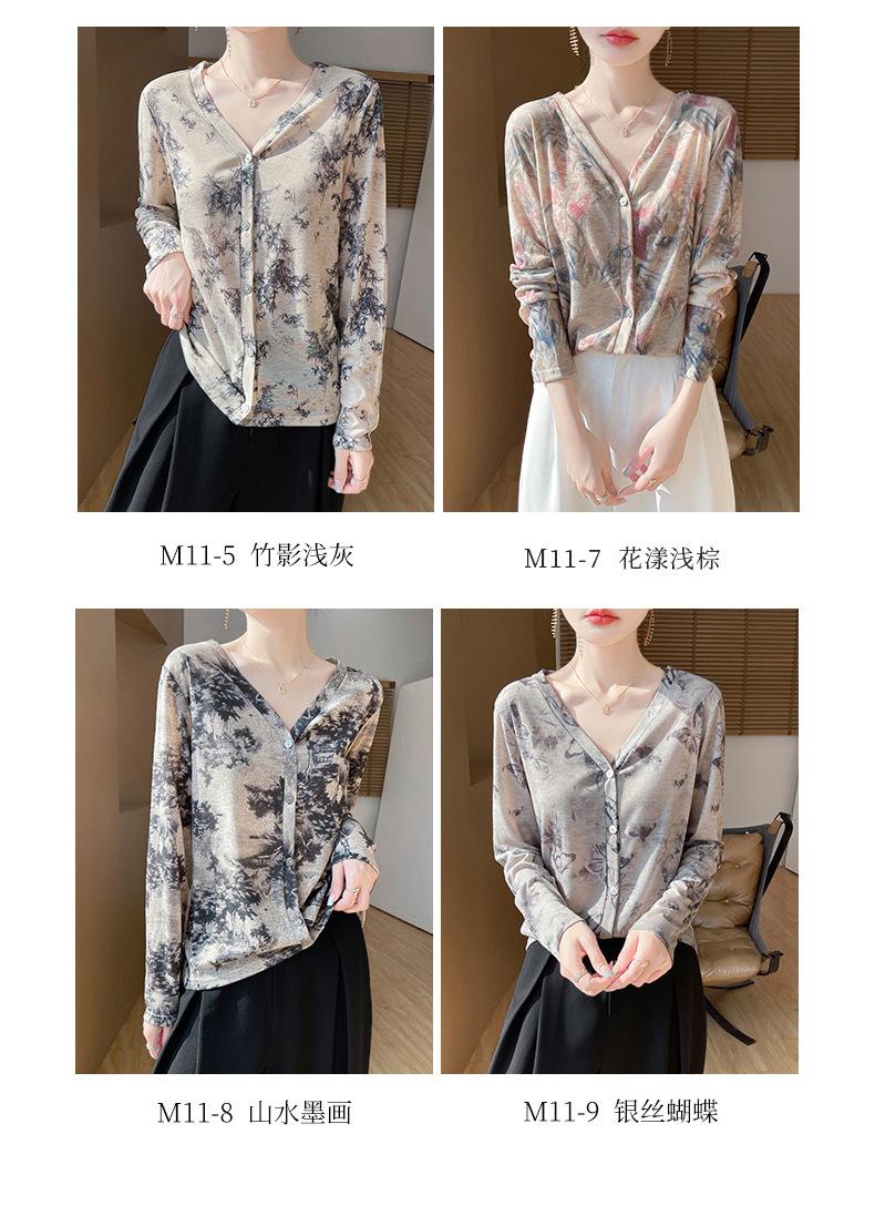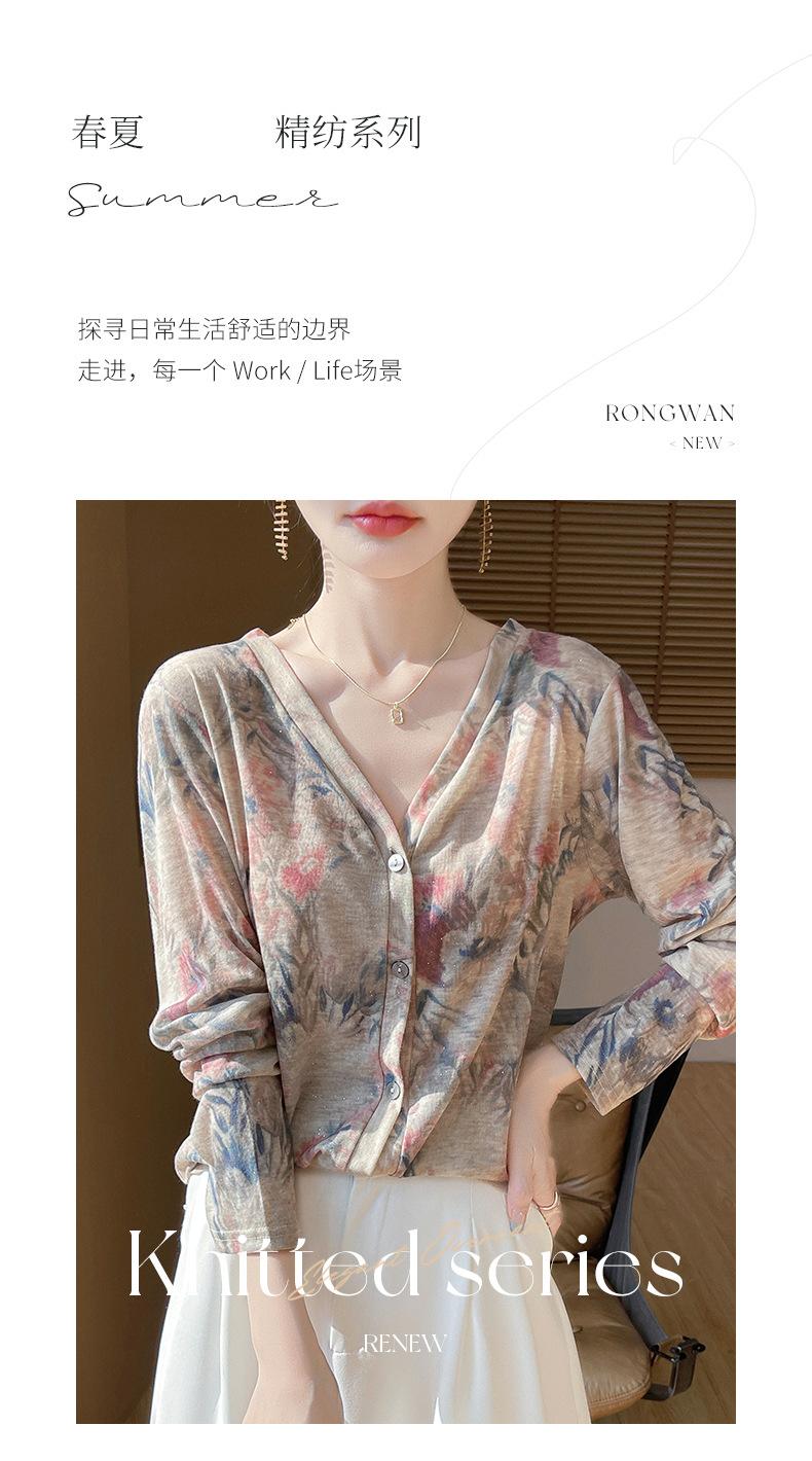 Venta al por Mayor Transfronteriza 2025 Verano Nuevo Cuello en V Manga Larga Estampado Tie-Dye Suéter Holgado Cárdigan Tejido de Punto para Mujer