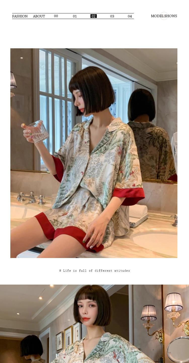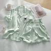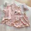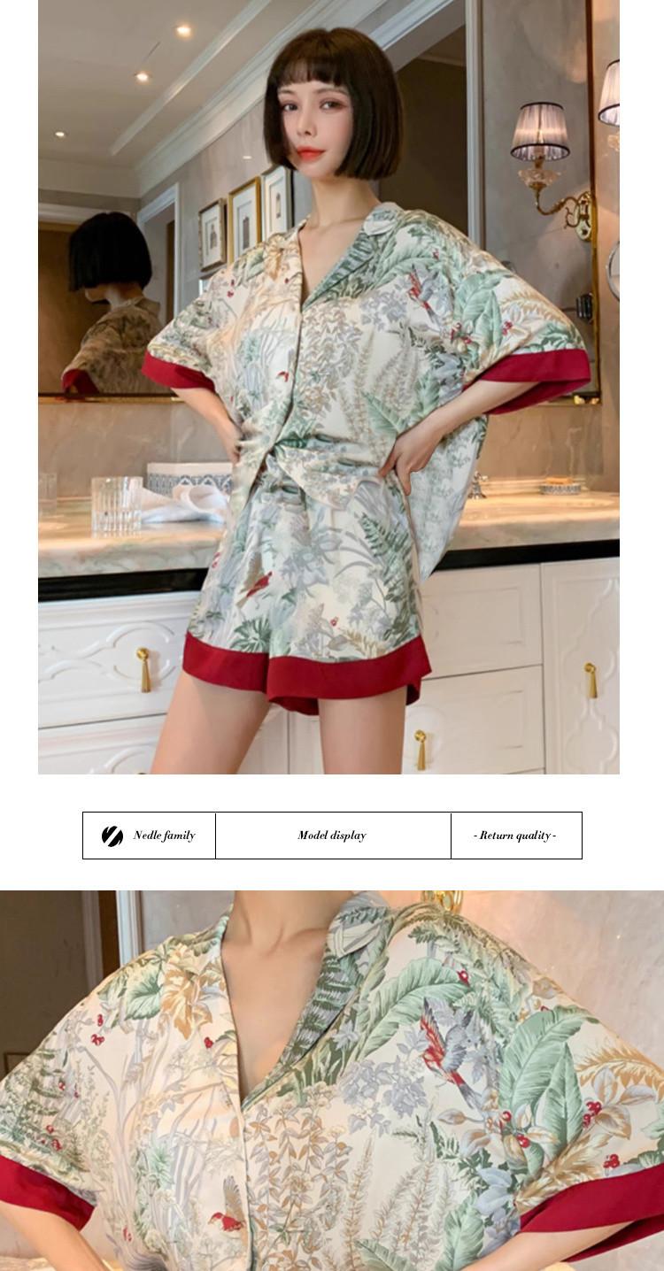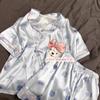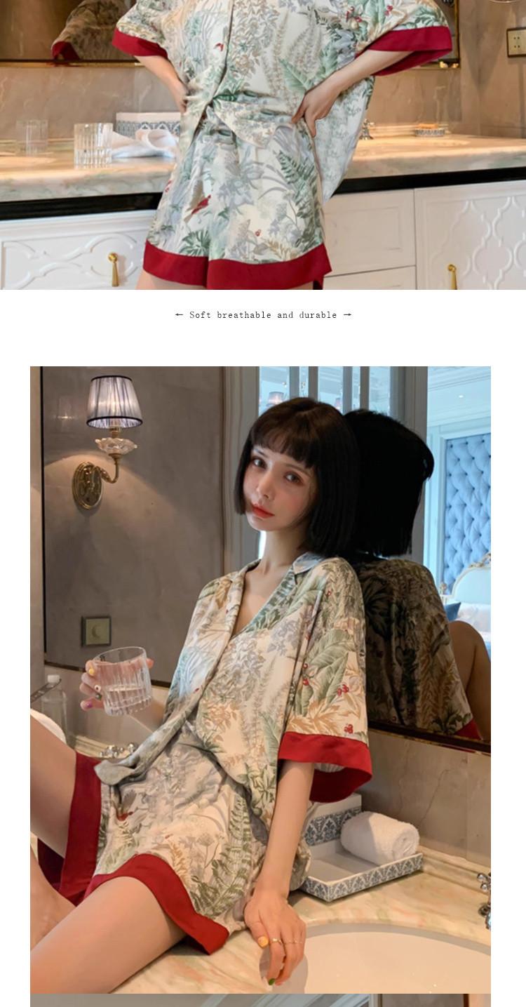 Gran Venta Primavera y Otoño Nuevo Pijama de Pantalones Cortos de Manga Corta de Seda de Hielo para Mujer Diseño de Verano Ropa Casual para el Hogar Set