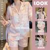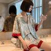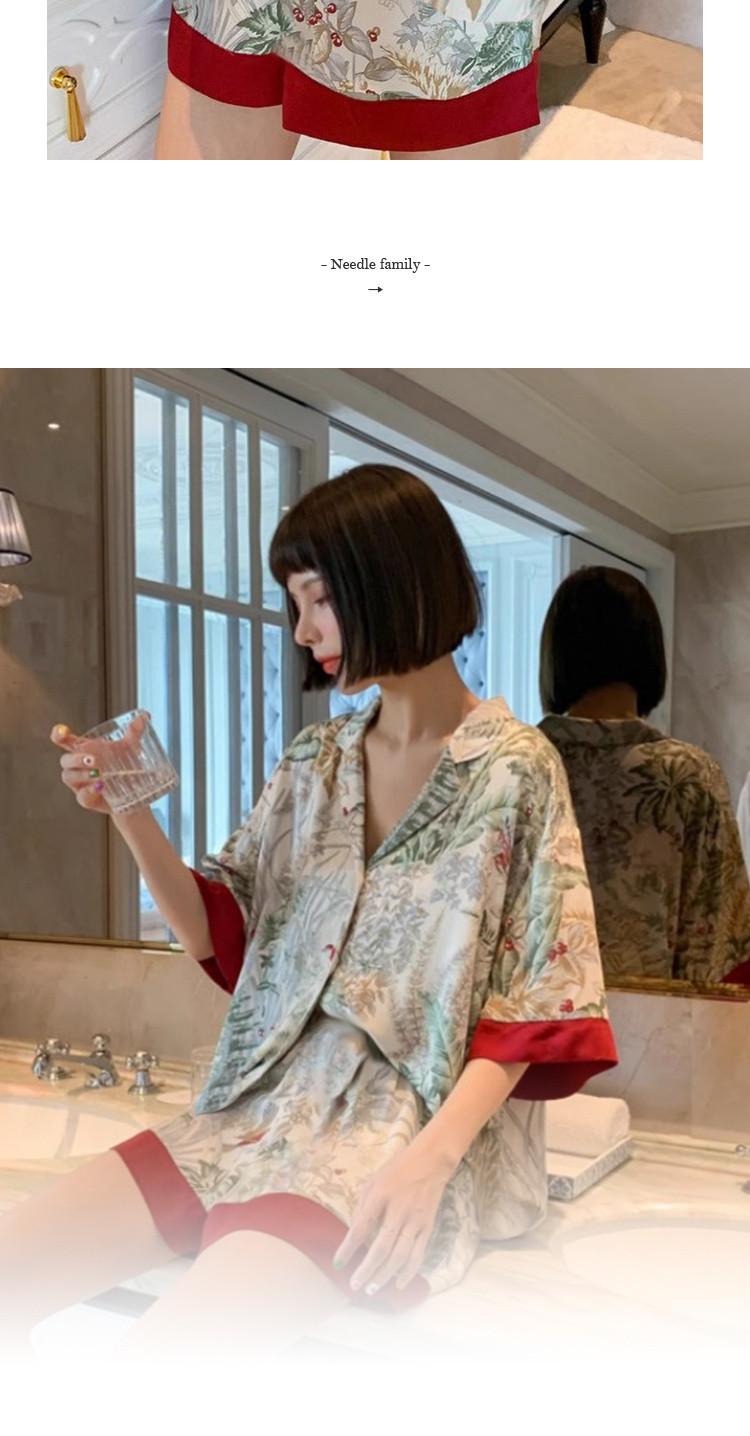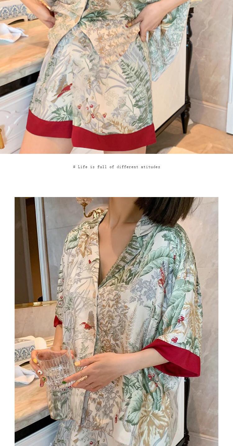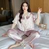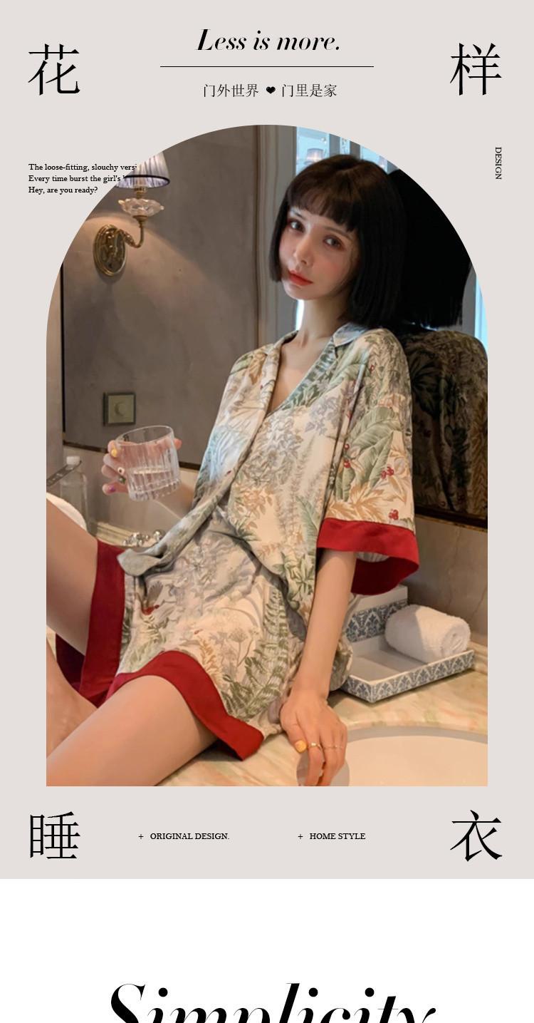 Gran Venta Primavera y Otoño Nuevo Pijama de Pantalones Cortos de Manga Corta de Seda de Hielo para Mujer Diseño de Verano Ropa Casual para el Hogar Set
