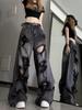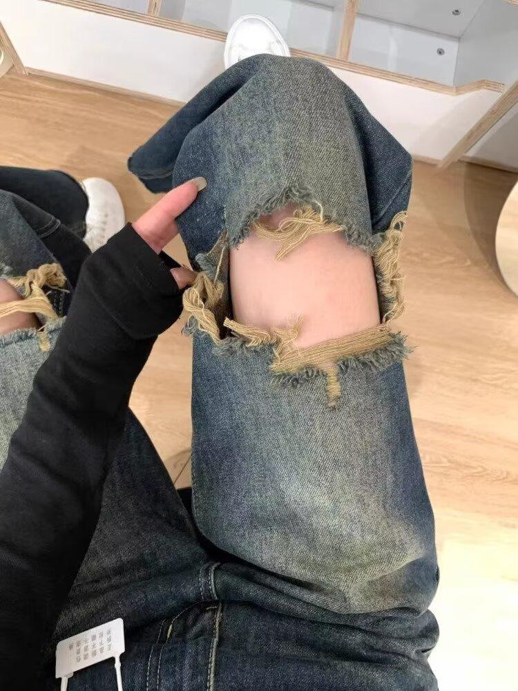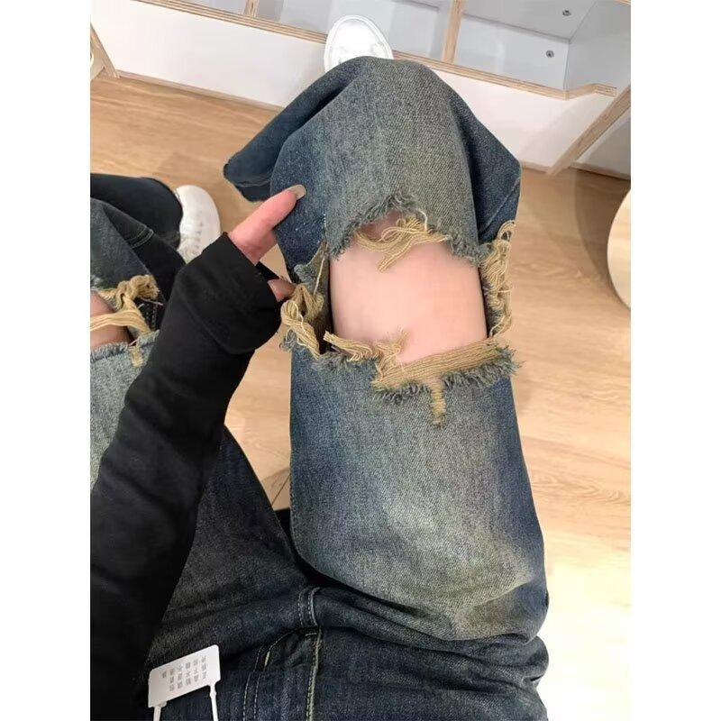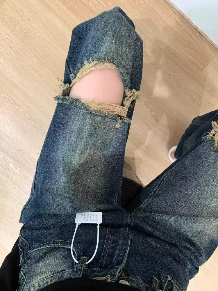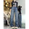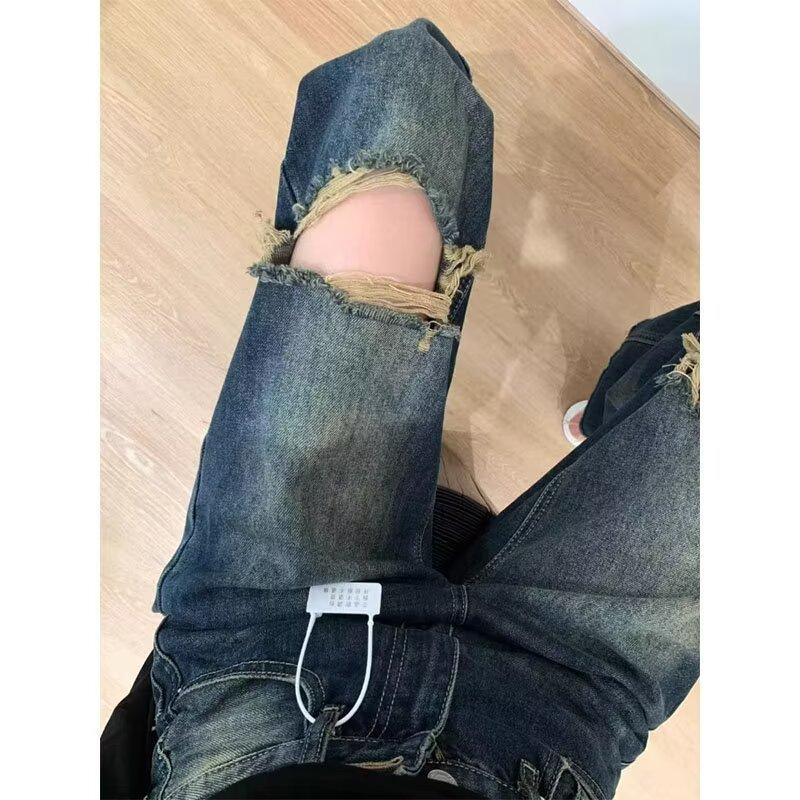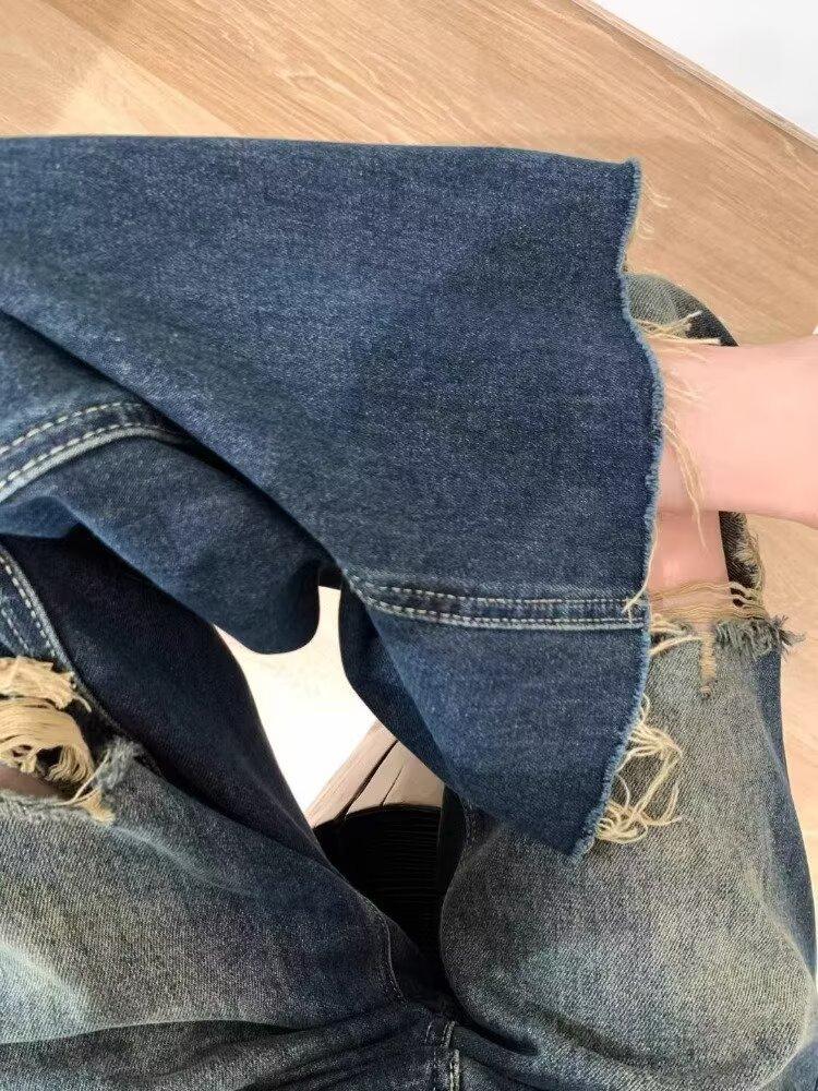 Jeans Rotos Americanos Retro para Mujer Alta Verano Nuevo Deshilachados Sueltos Rectos Pierna Ancha Largo hasta el Piso