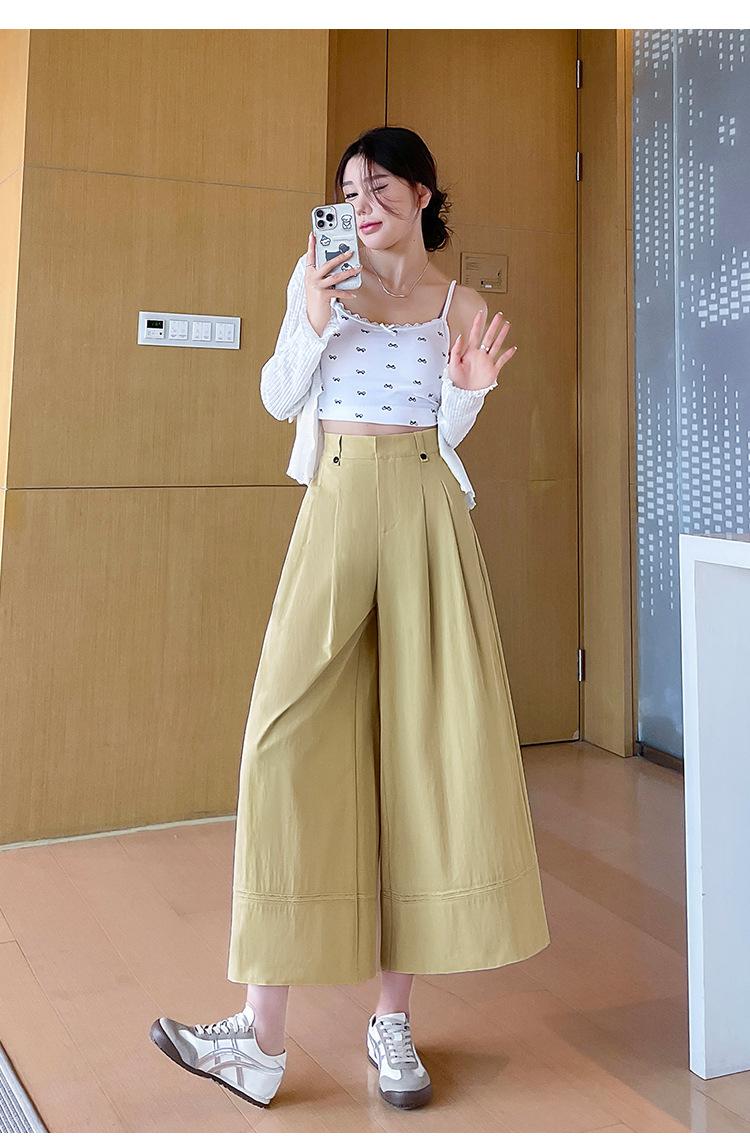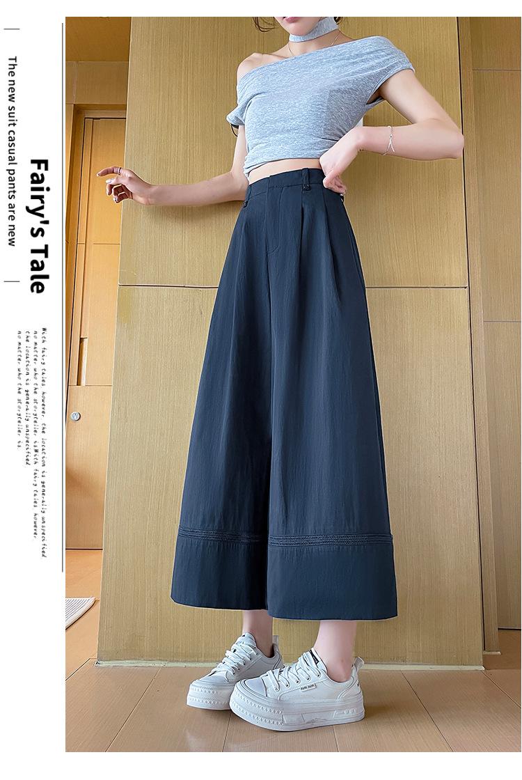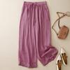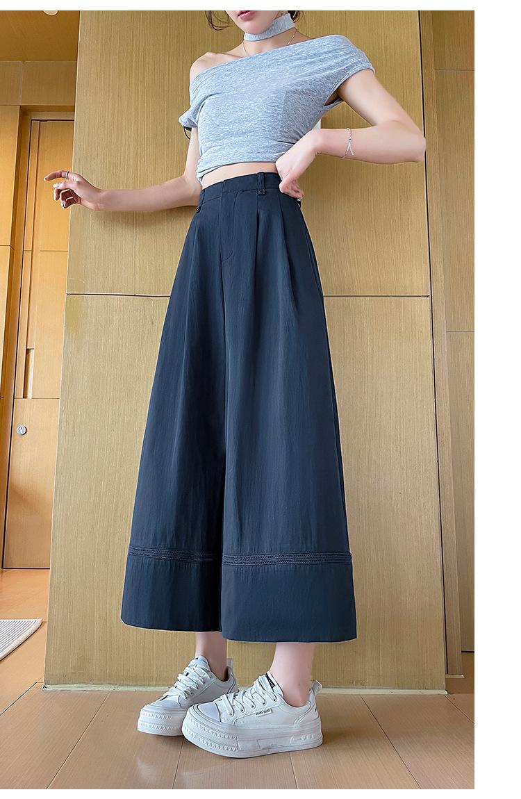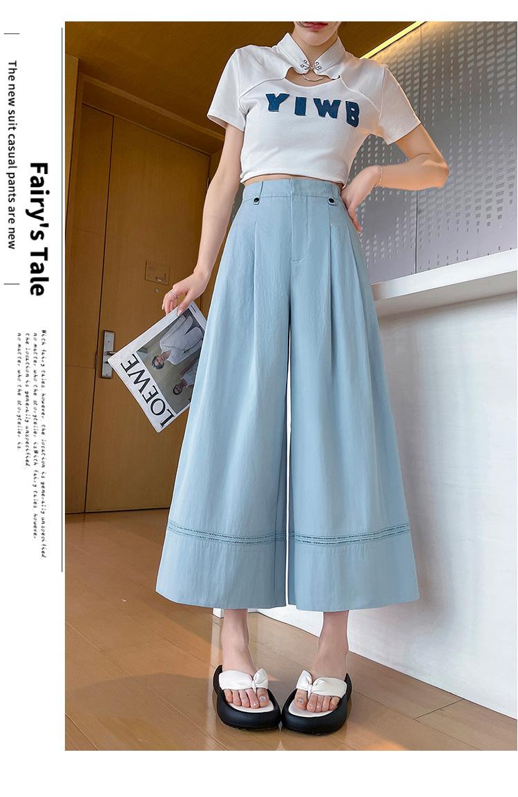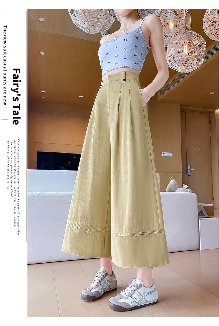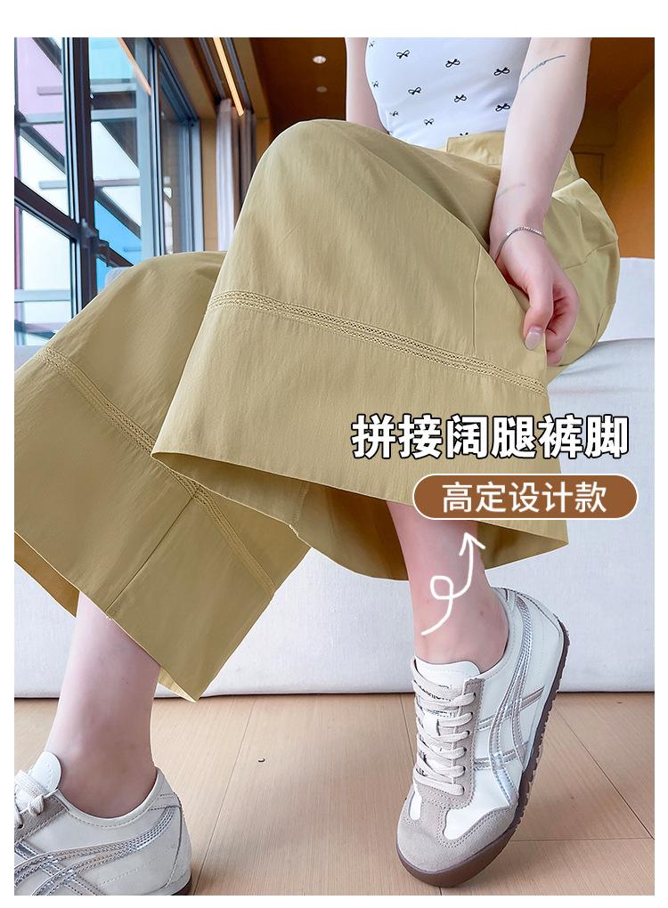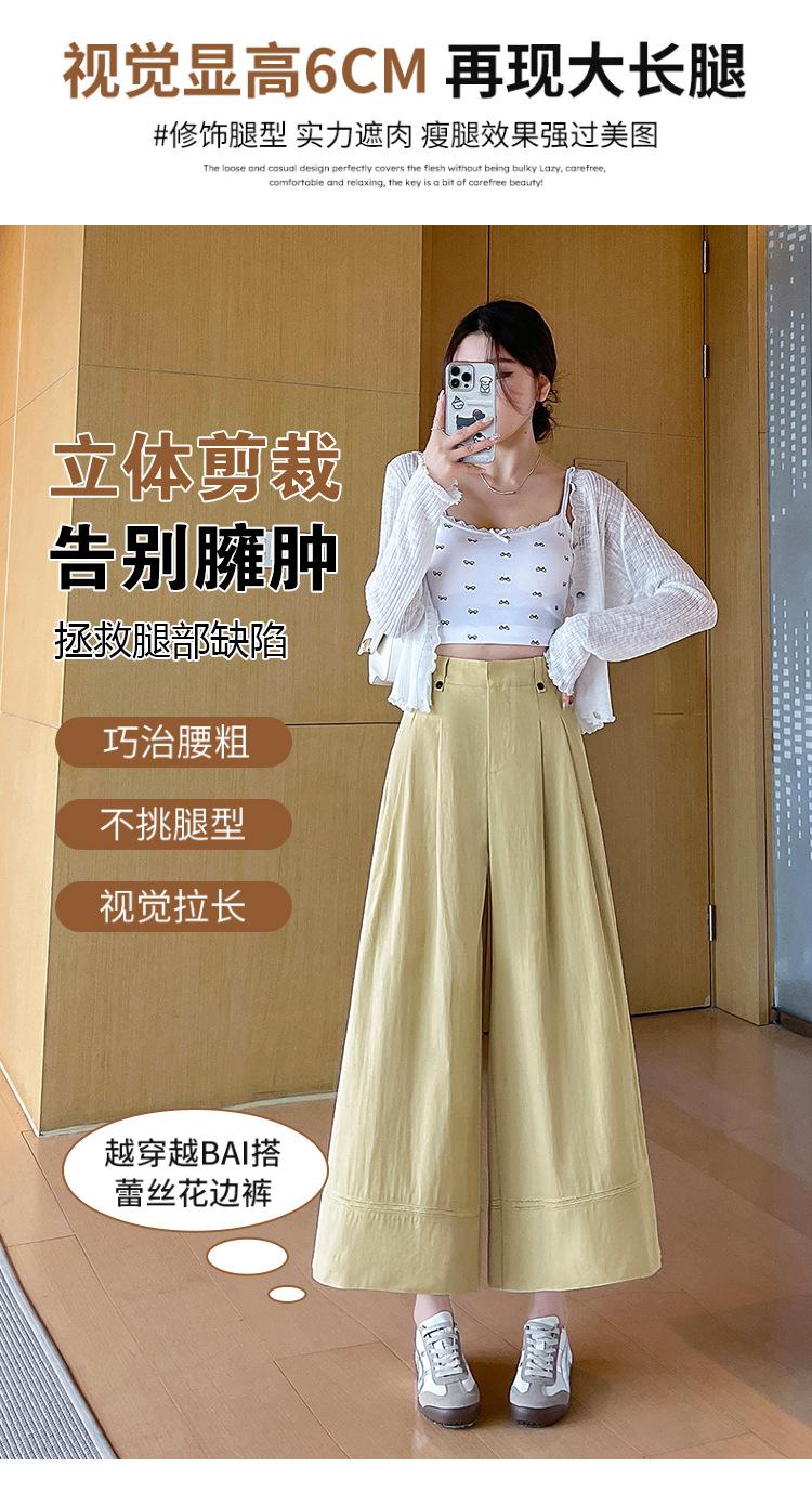 Pantalones Casuales de Algodón Lavado con Encaje para Mujer Verano 2025 Nuevo Diseño Sentido Cintura Alta Recortados Pierna Ancha