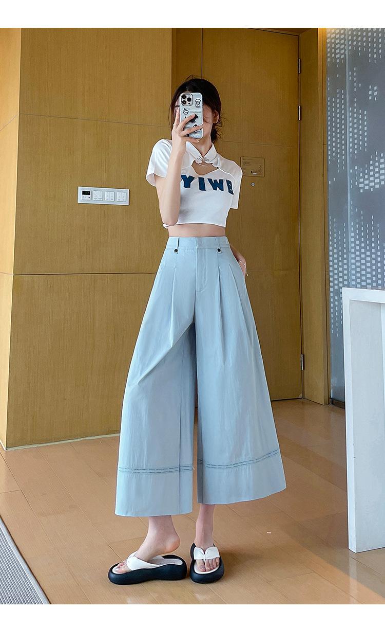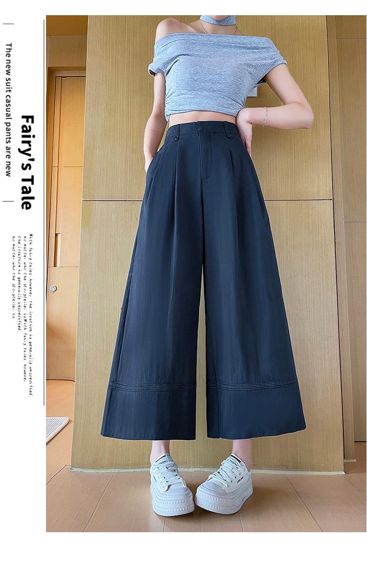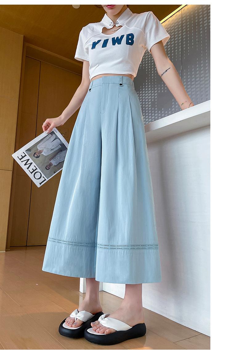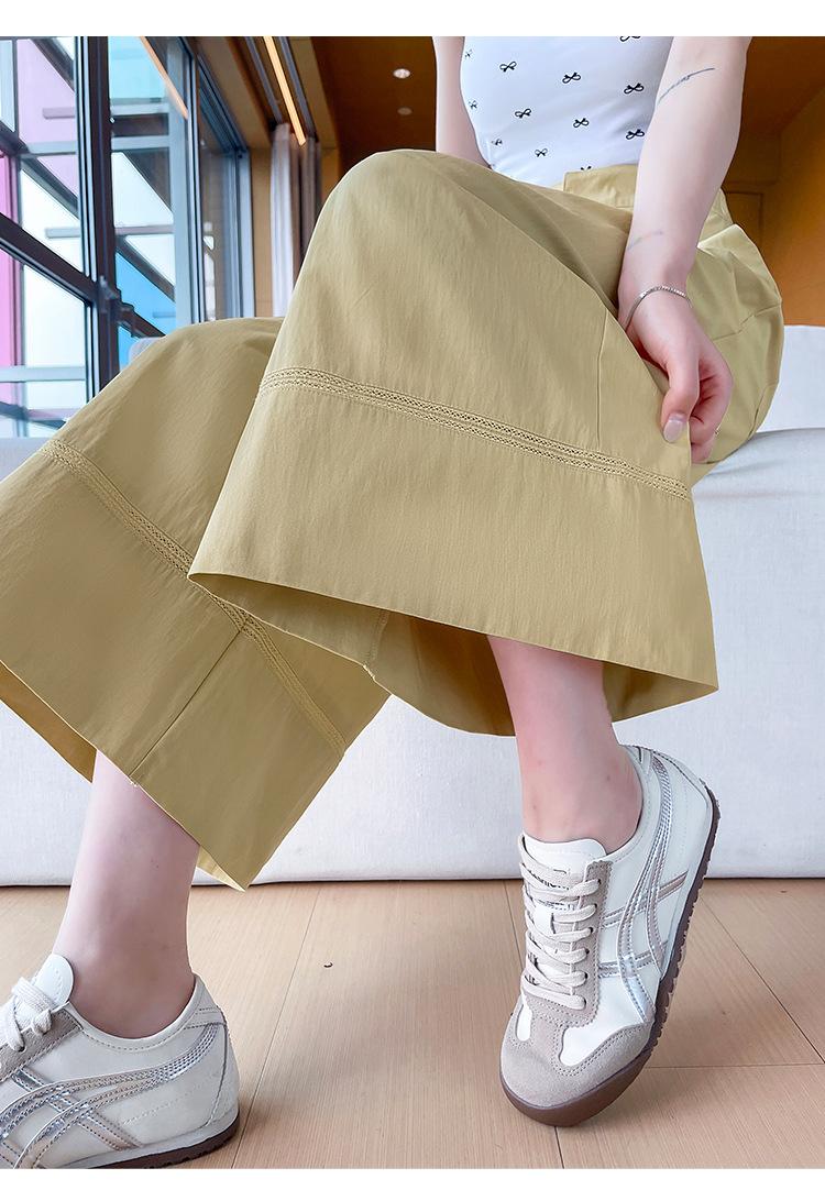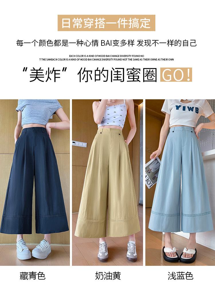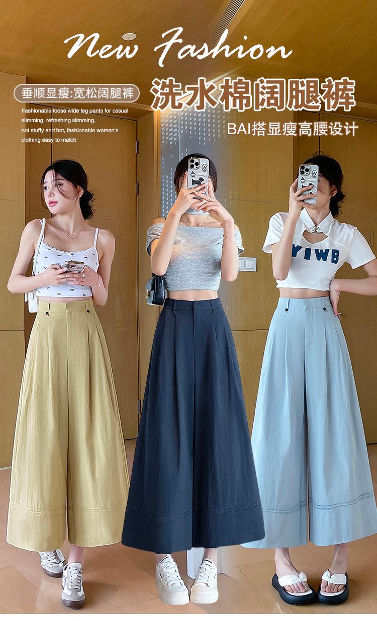 Pantalones Casuales de Algodón Lavado con Encaje para Mujer Verano 2025 Nuevo Diseño Sentido Cintura Alta Recortados Pierna Ancha