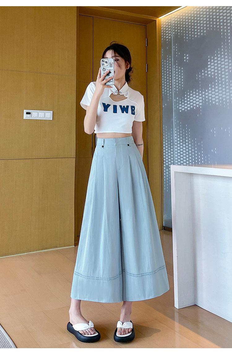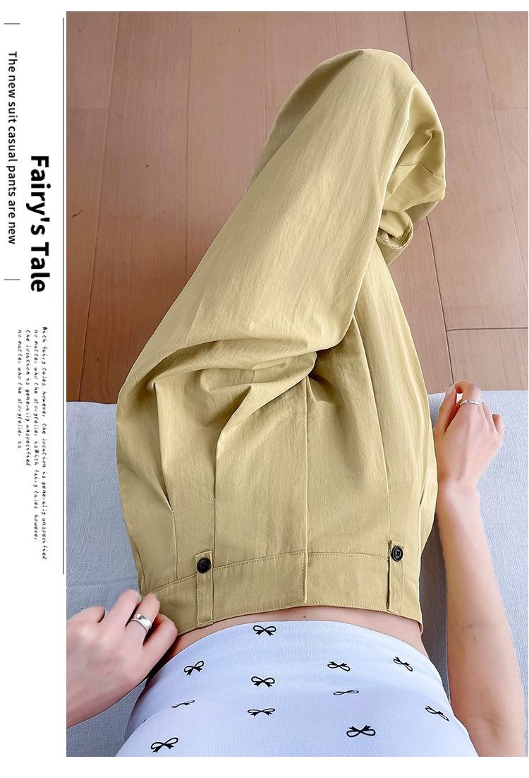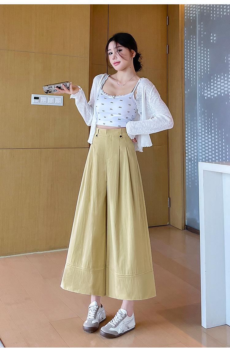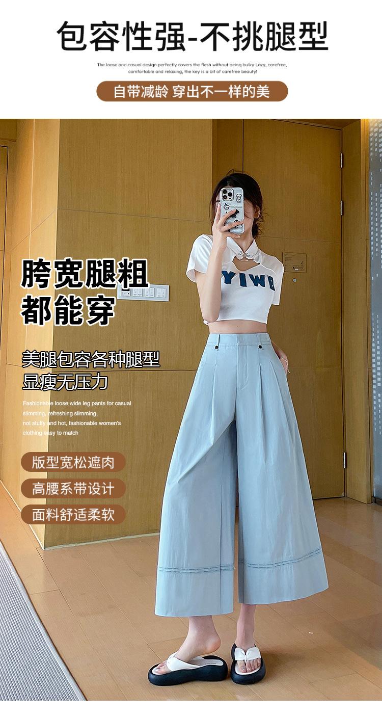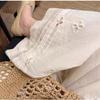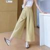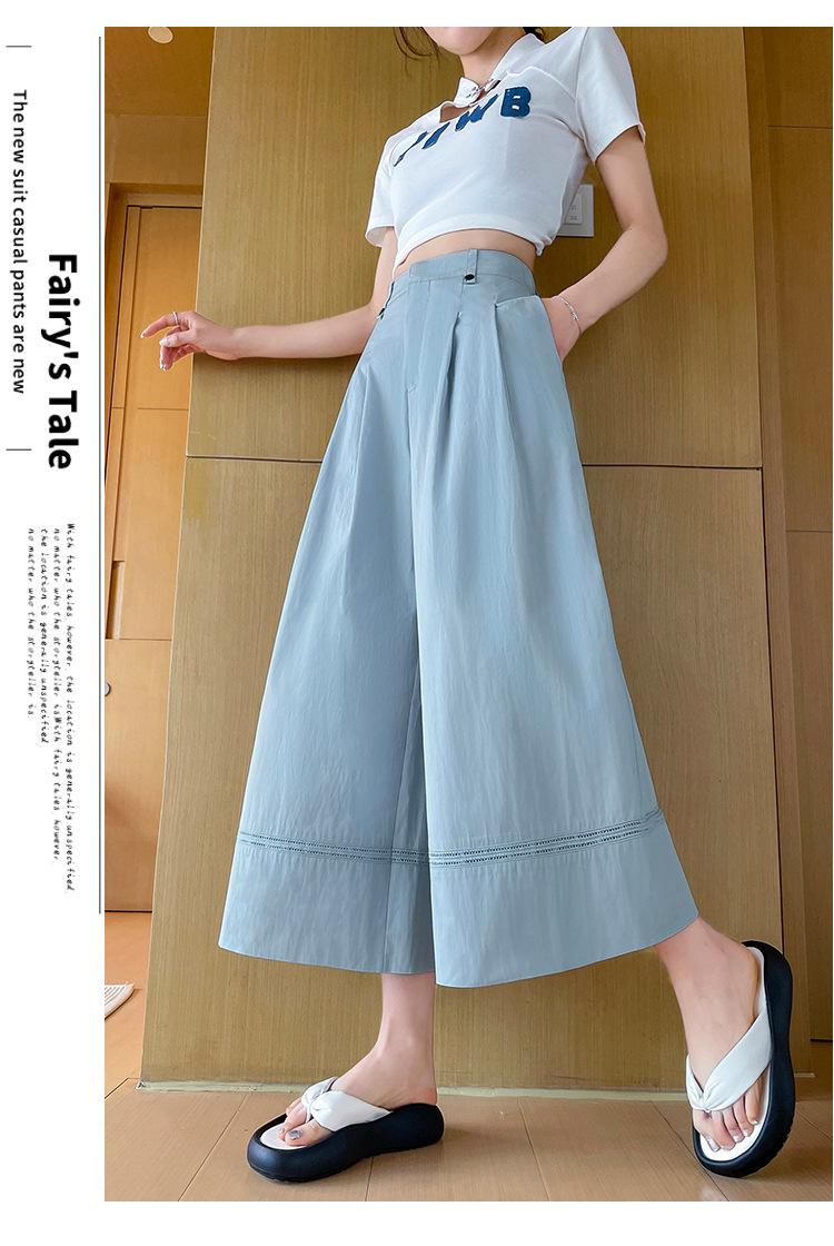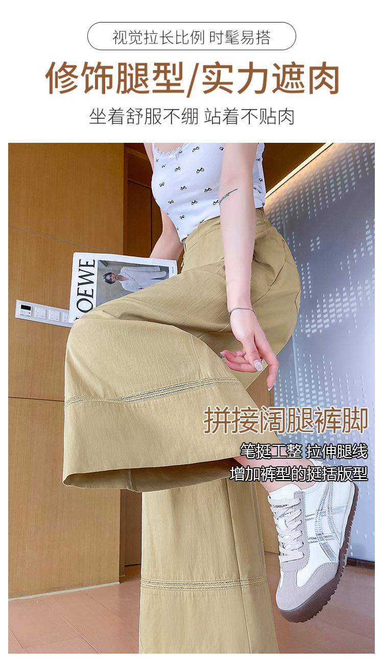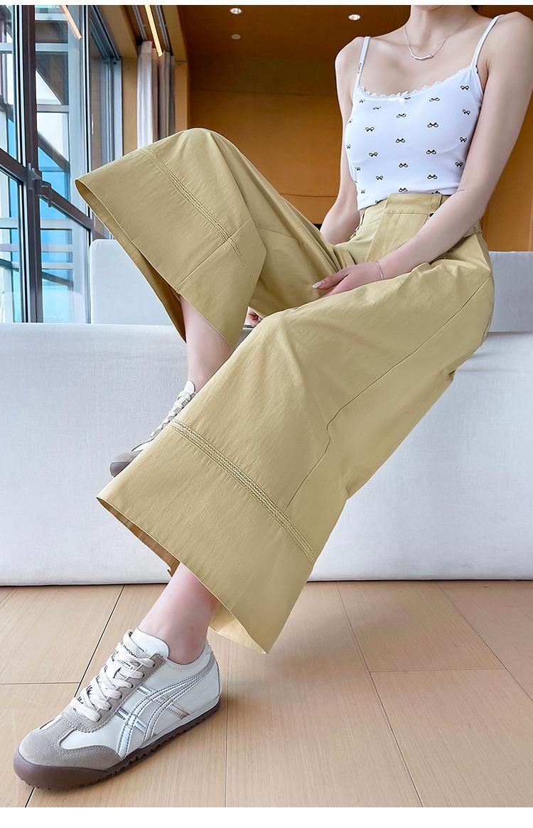 Pantalones Casuales de Algodón Lavado con Encaje para Mujer Verano 2025 Nuevo Diseño Sentido Cintura Alta Recortados Pierna Ancha