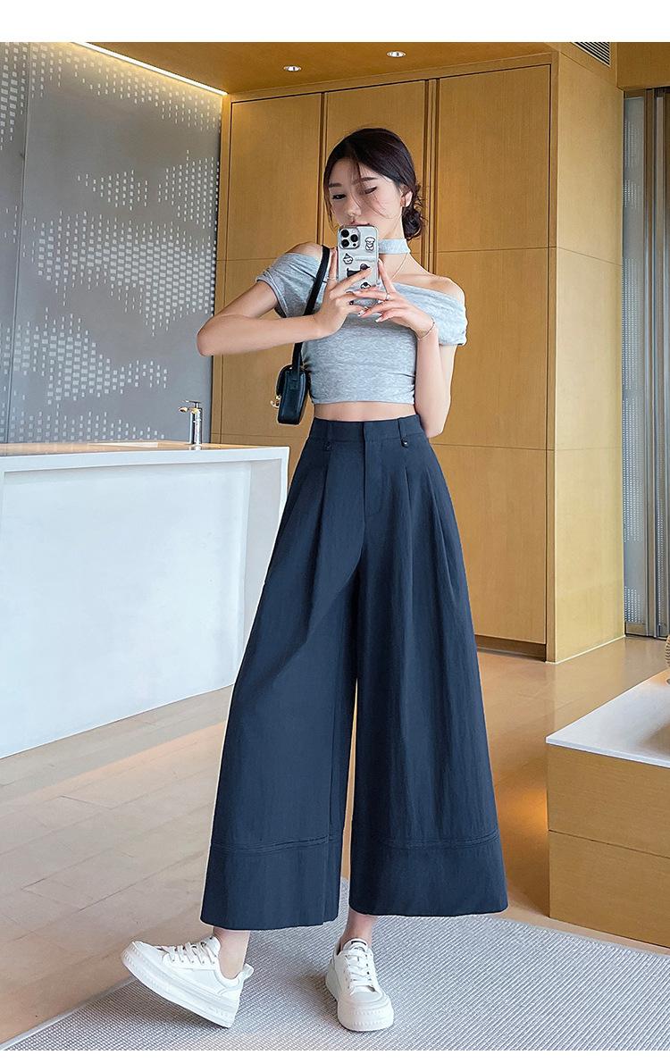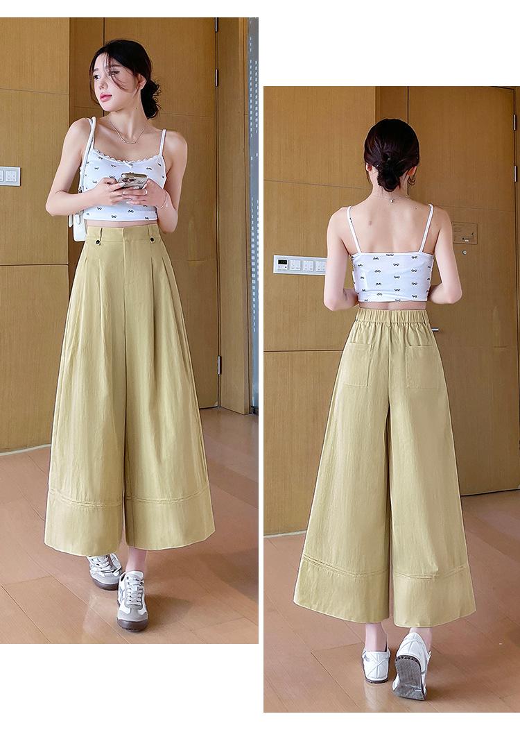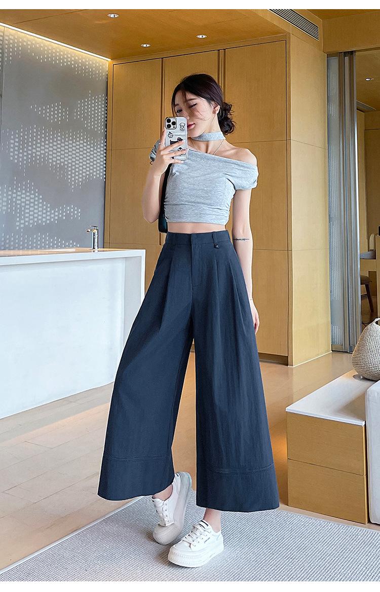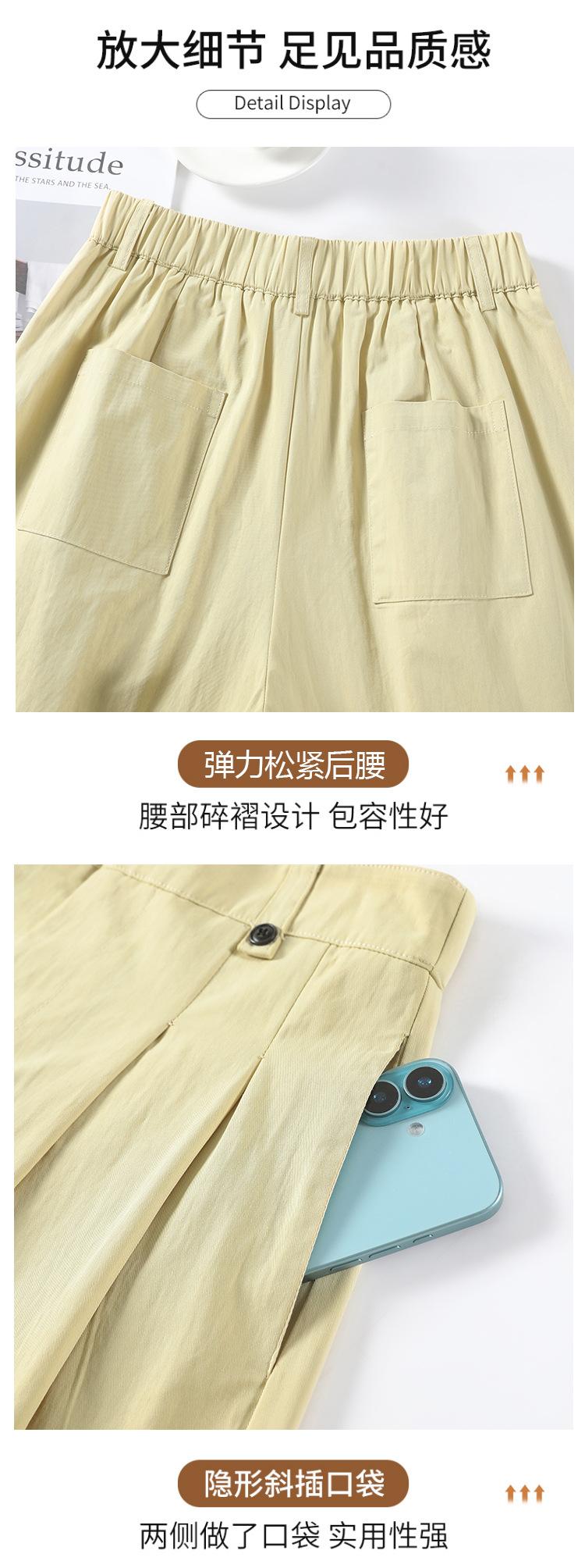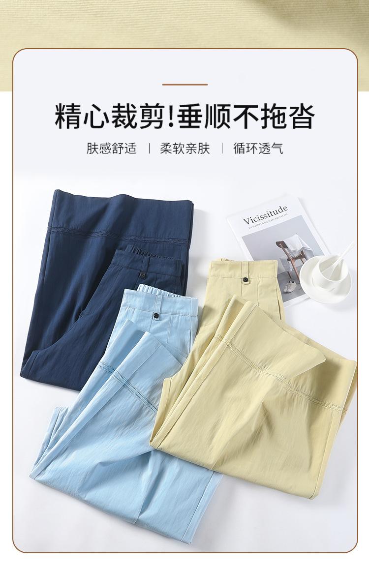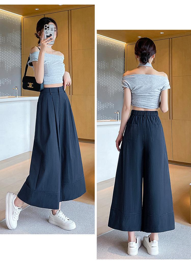 Pantalones Casuales de Algodón Lavado con Encaje para Mujer Verano 2025 Nuevo Diseño Sentido Cintura Alta Recortados Pierna Ancha