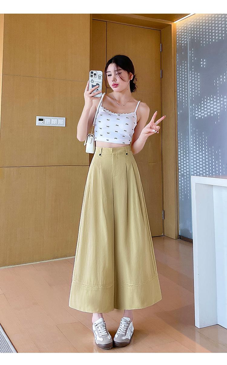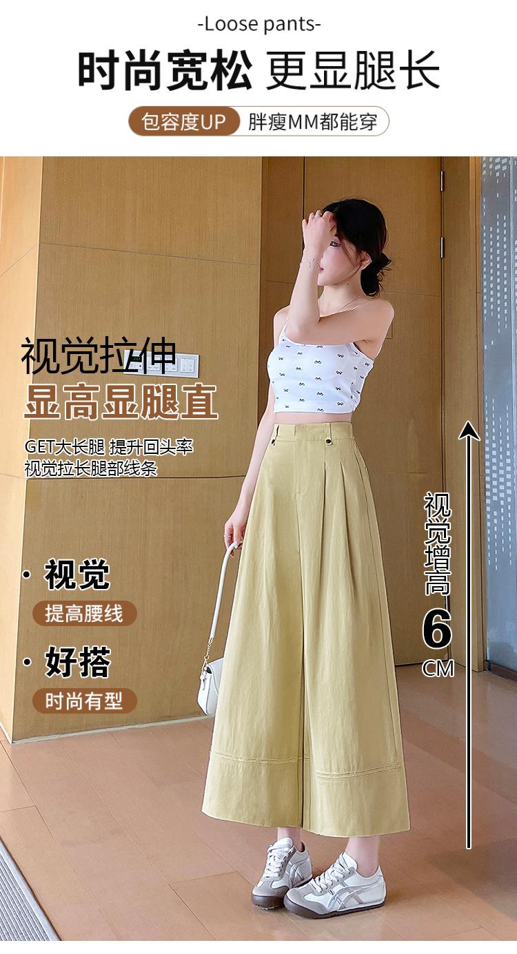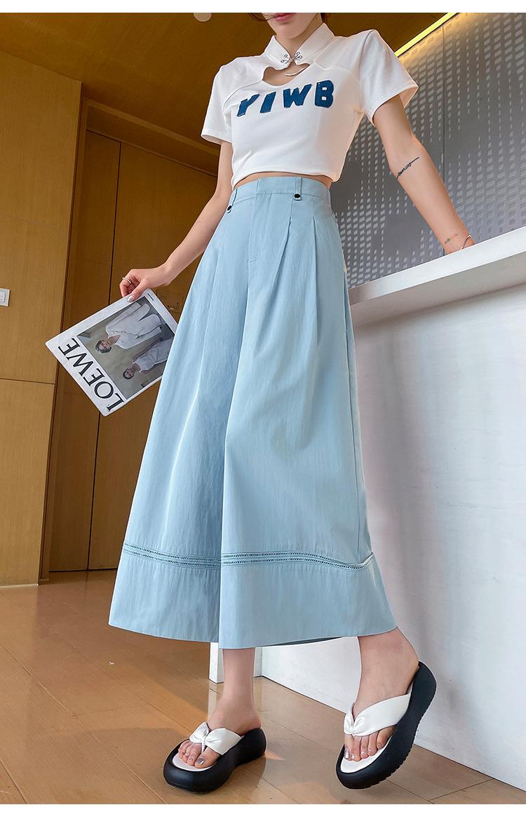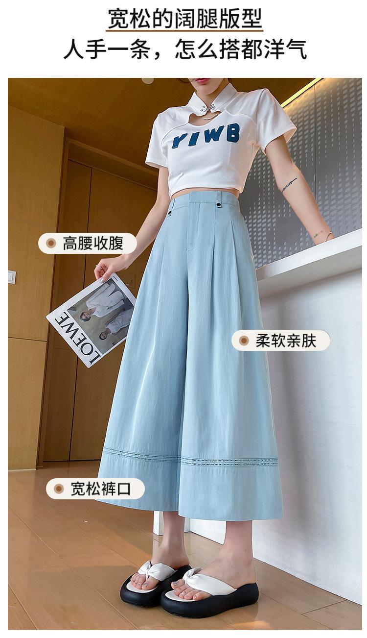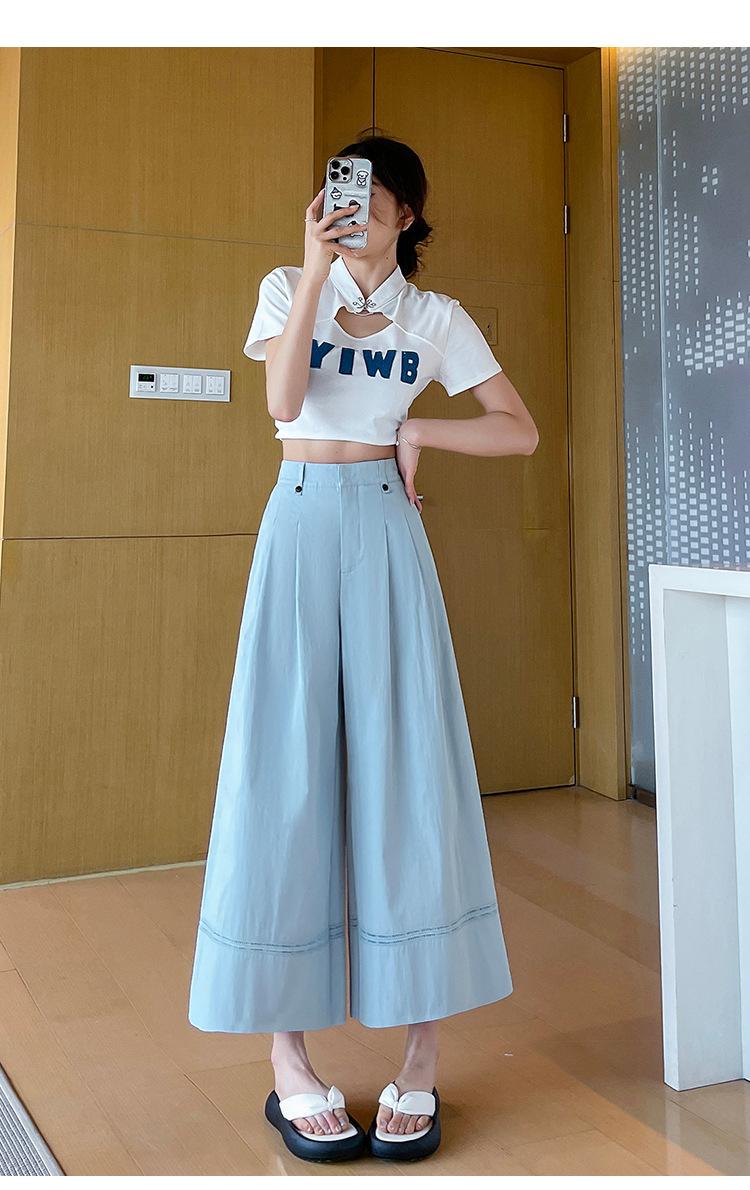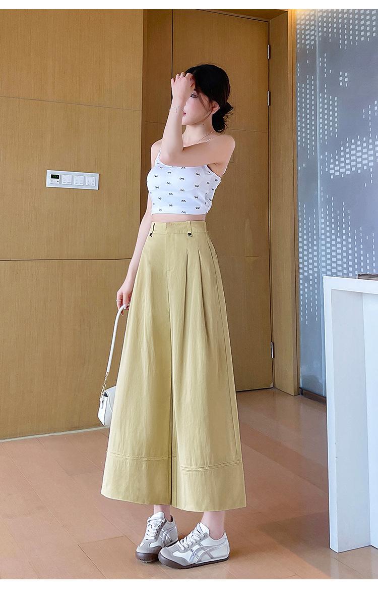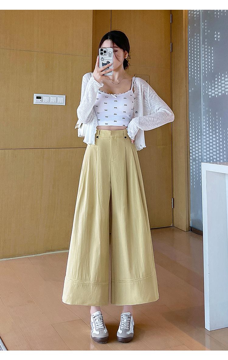 Pantalones Casuales de Algodón Lavado con Encaje para Mujer Verano 2025 Nuevo Diseño Sentido Cintura Alta Recortados Pierna Ancha