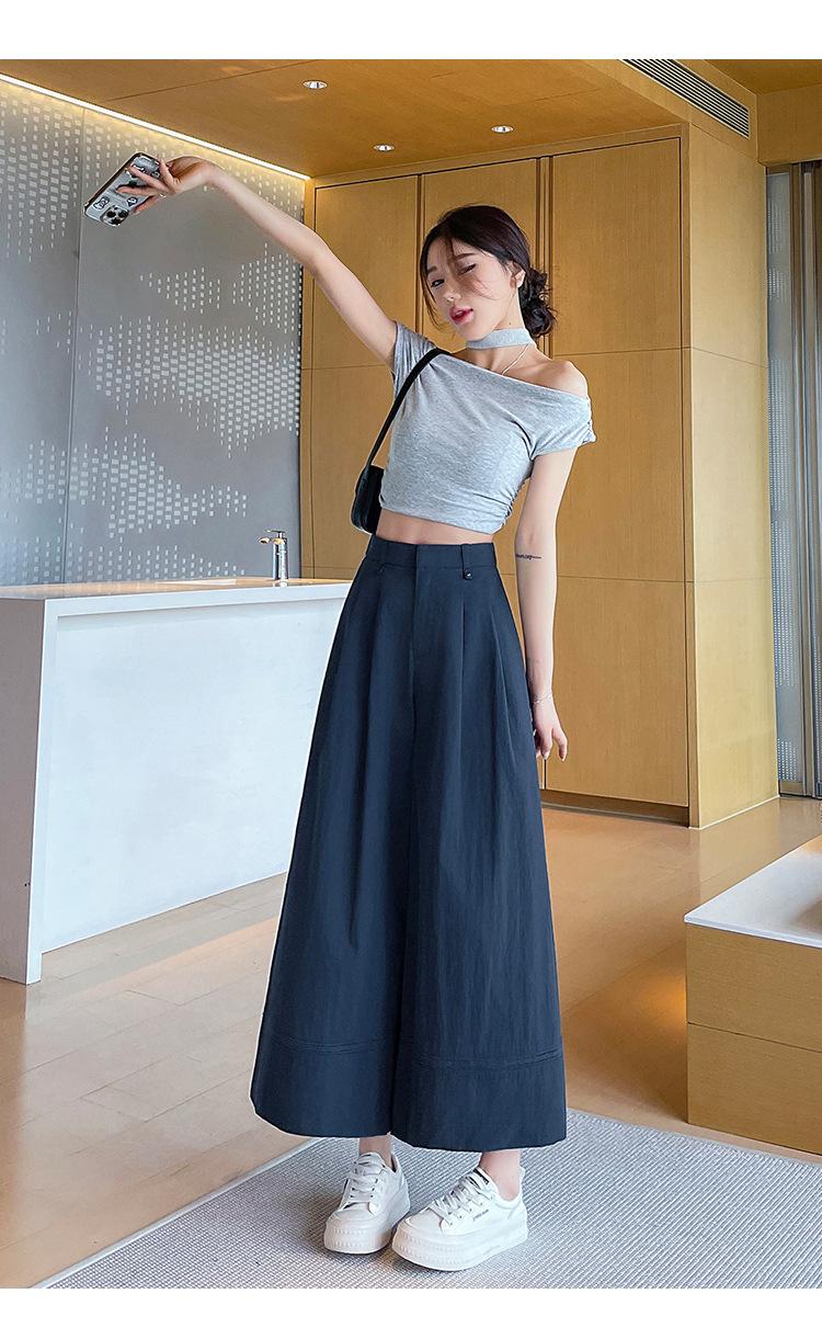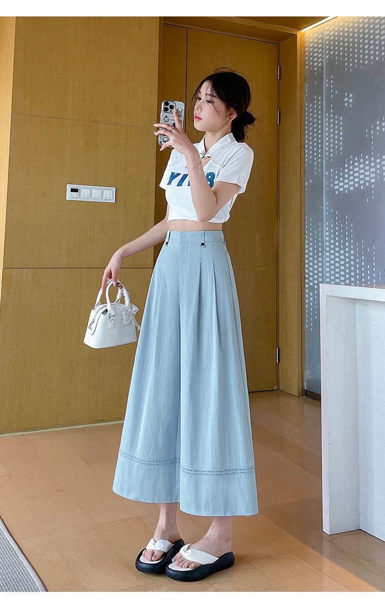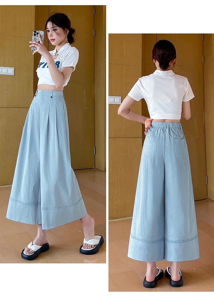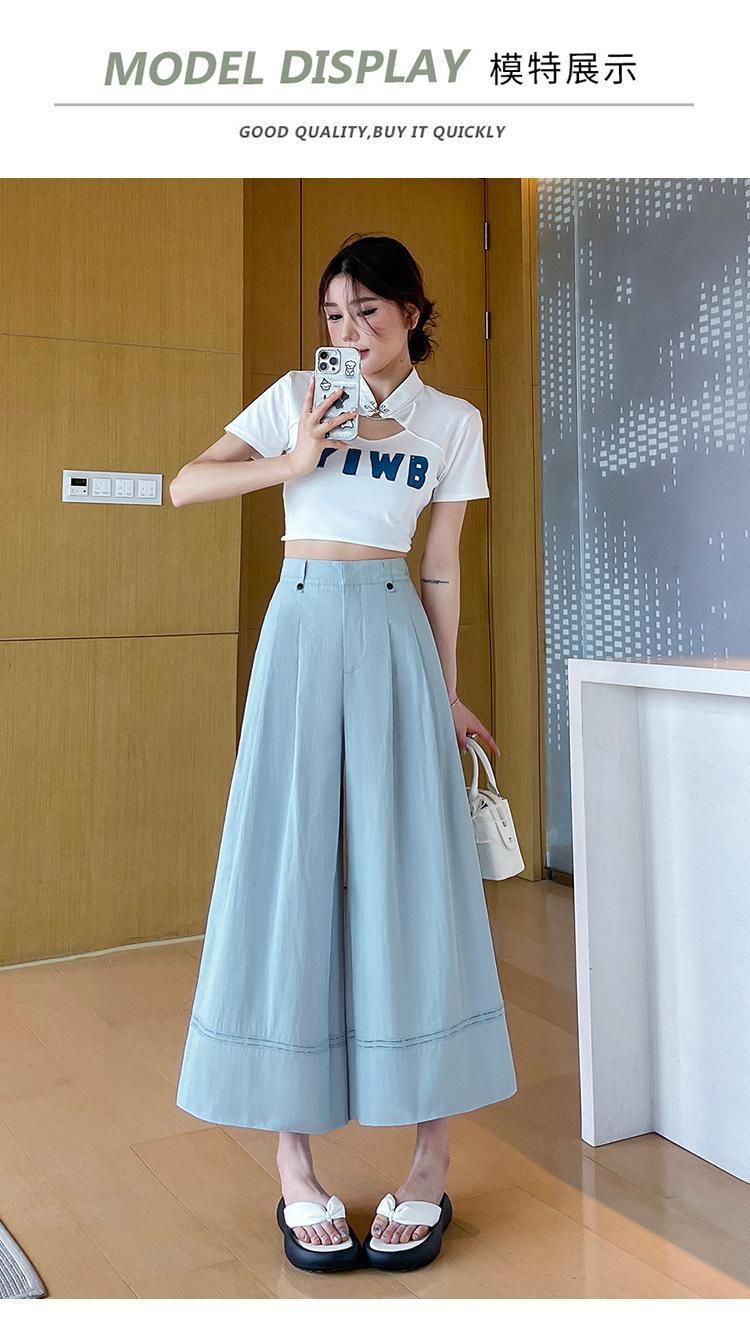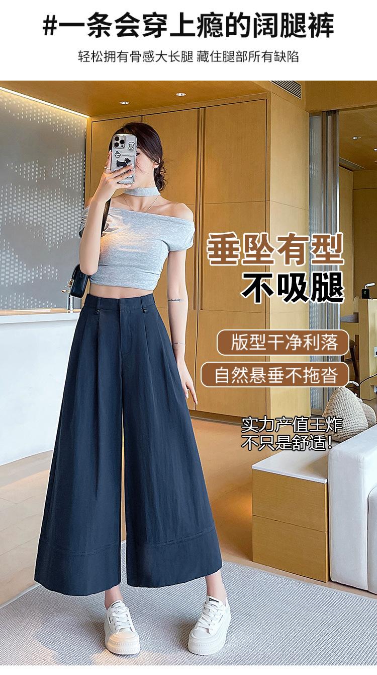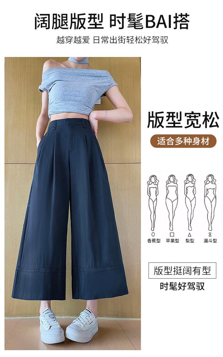 Pantalones Casuales de Algodón Lavado con Encaje para Mujer Verano 2025 Nuevo Diseño Sentido Cintura Alta Recortados Pierna Ancha