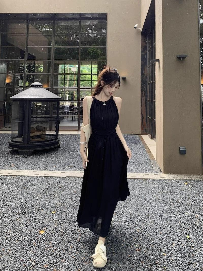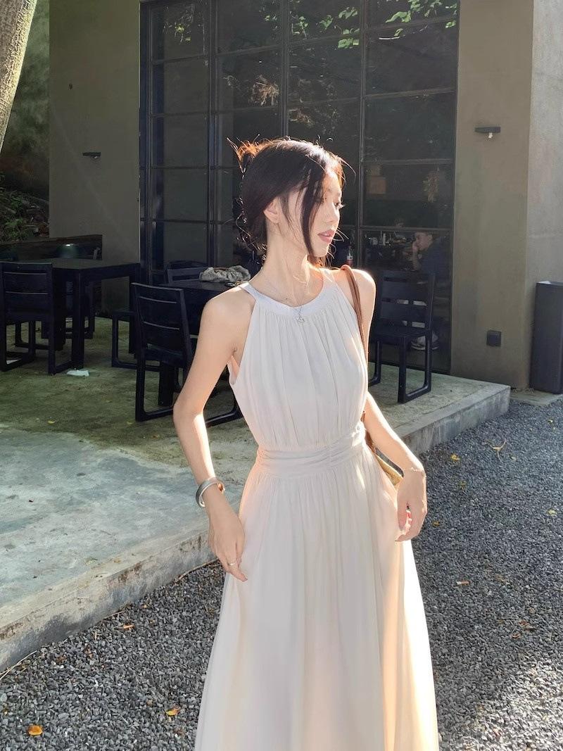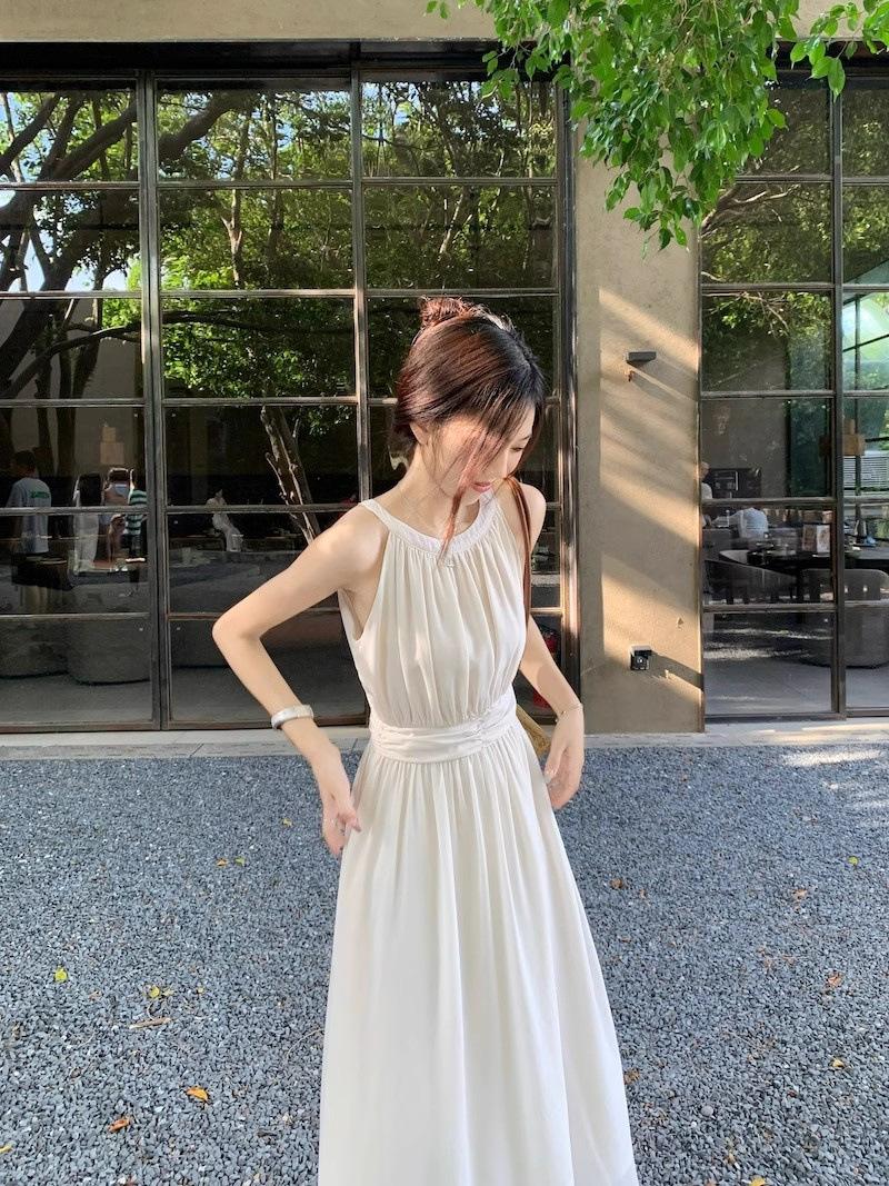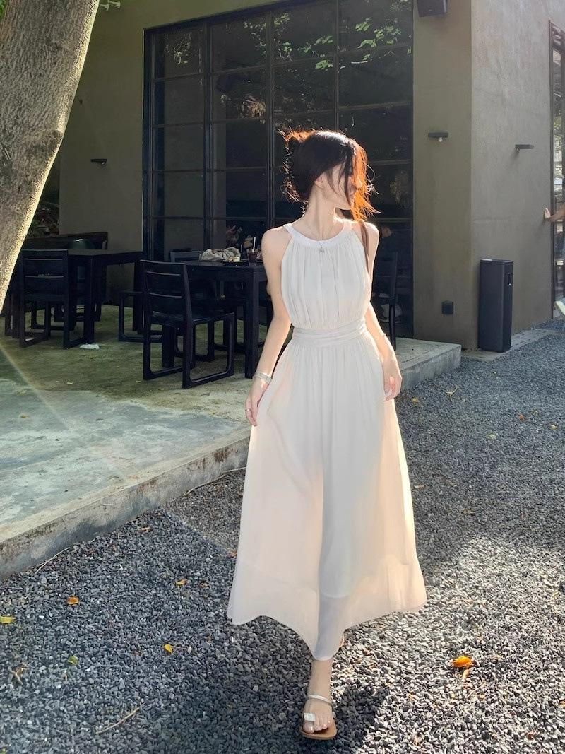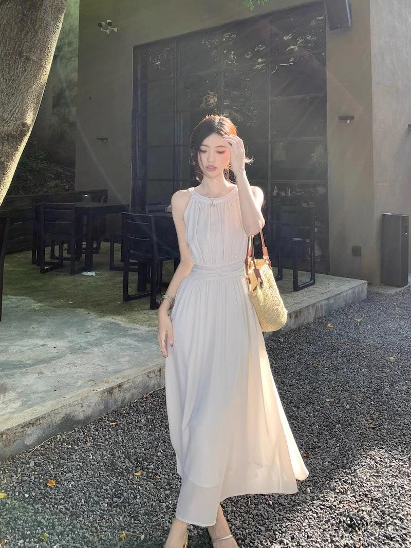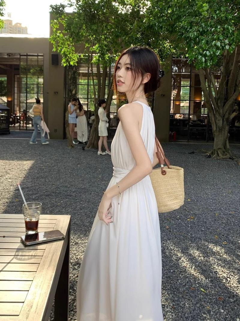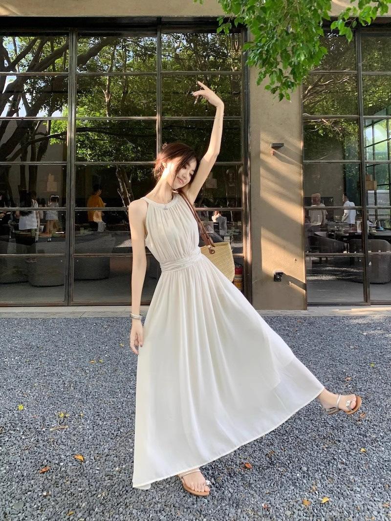 Vestido de verano para niños con cuello colgante estilo francés, nueva textura, estilo francés de alta gama, hermoso vestido de fiesta junto al mar.