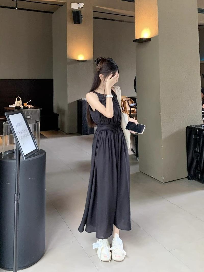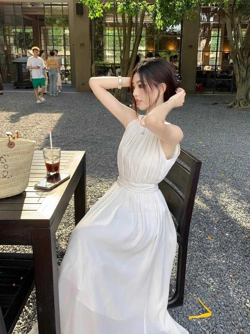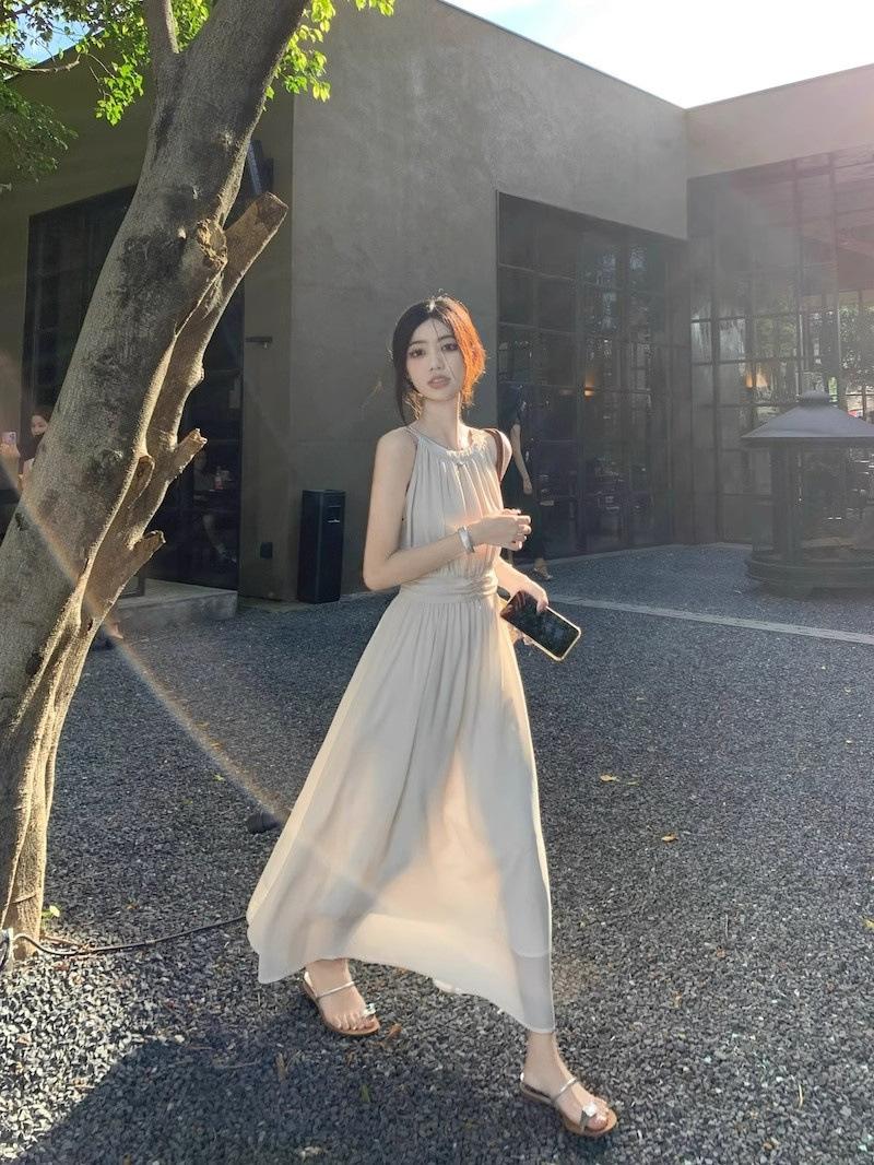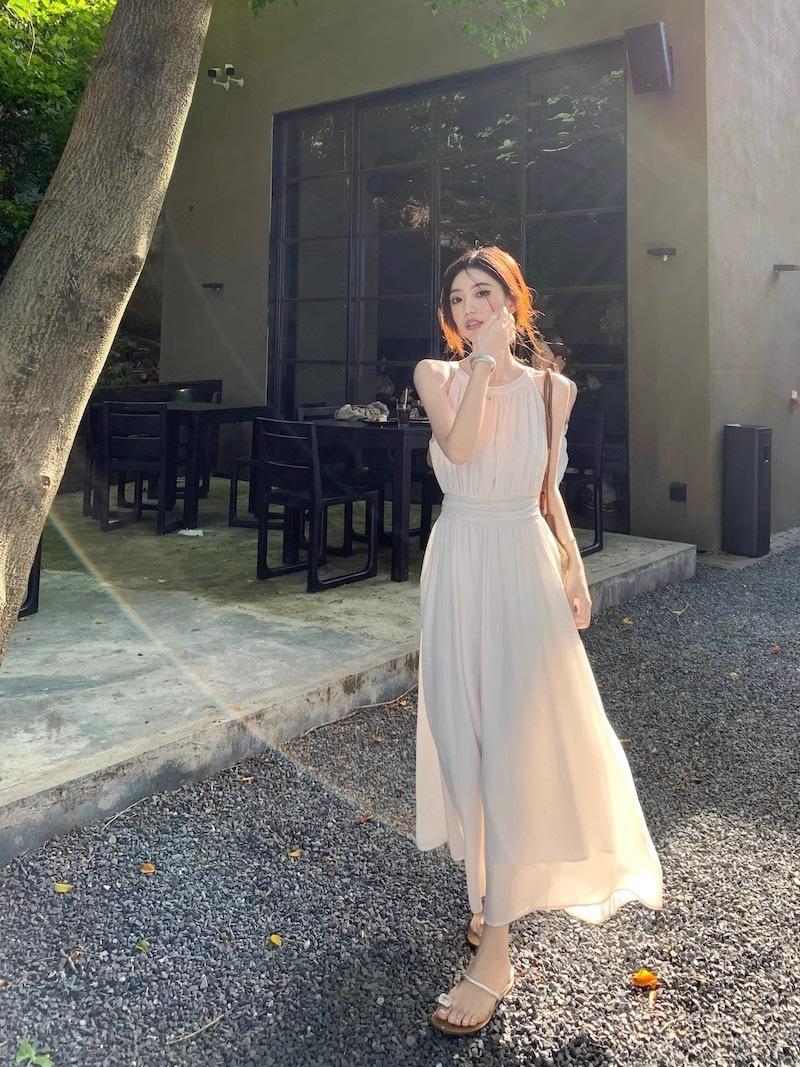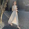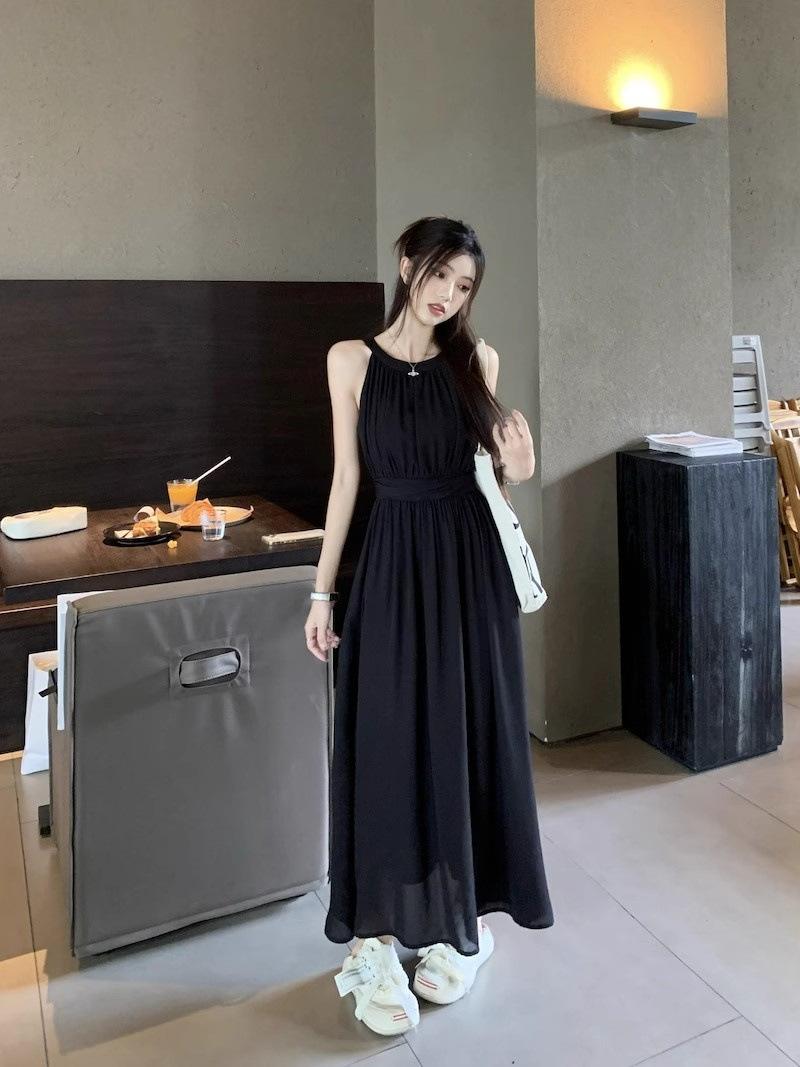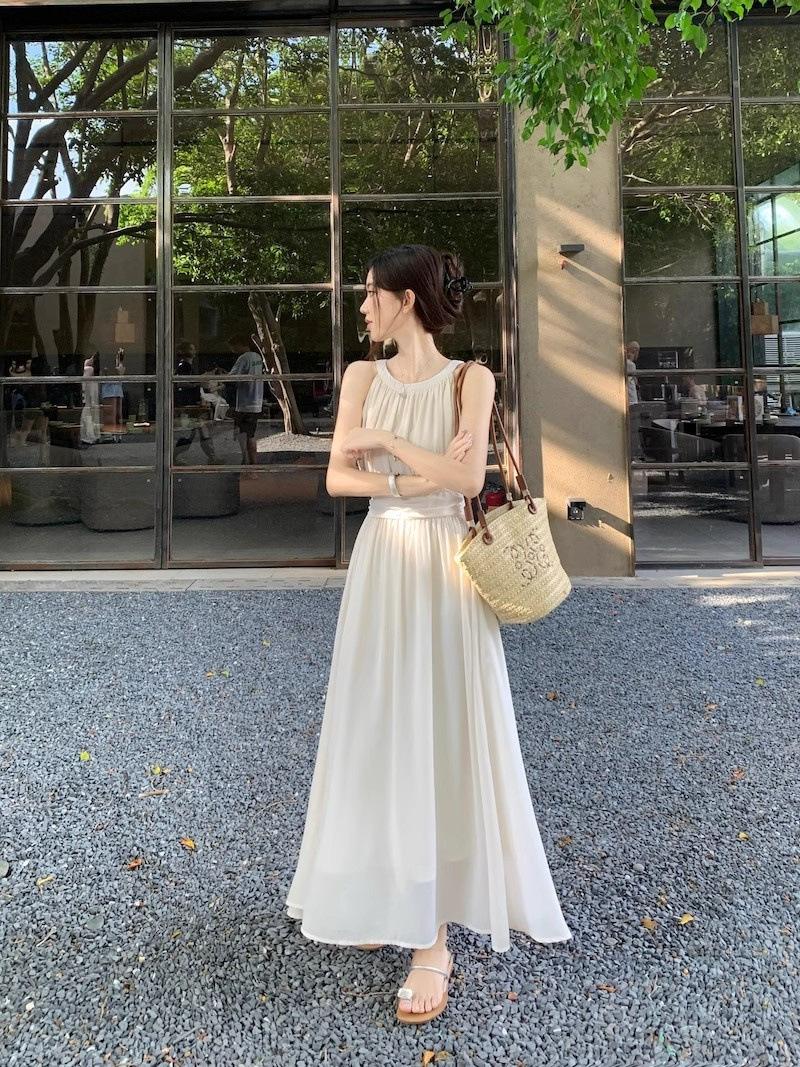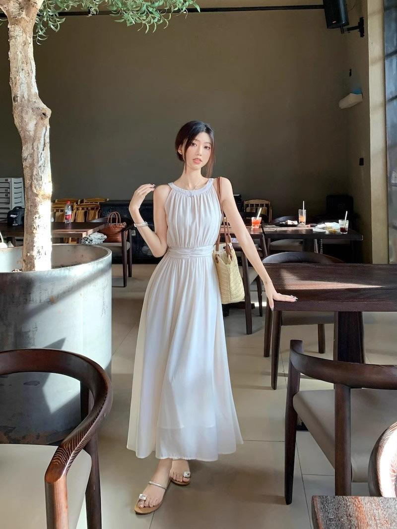 Vestido de verano para niños con cuello colgante estilo francés, nueva textura, estilo francés de alta gama, hermoso vestido de fiesta junto al mar.