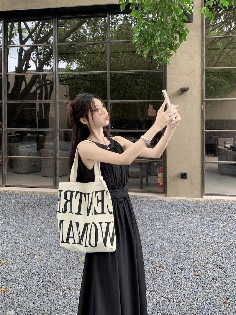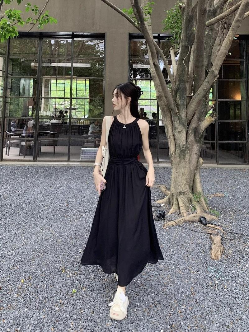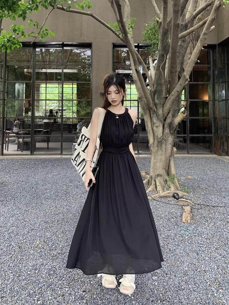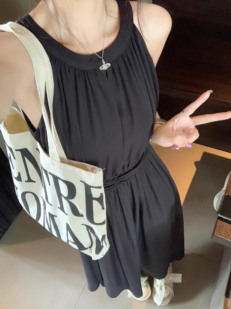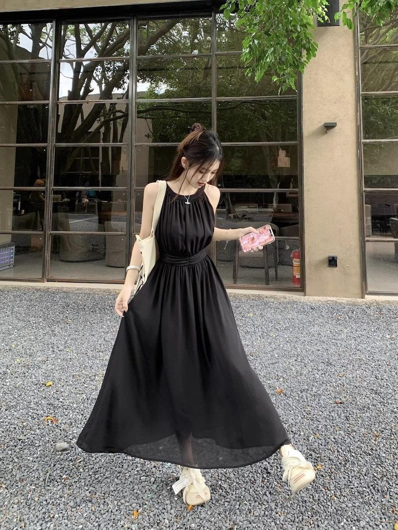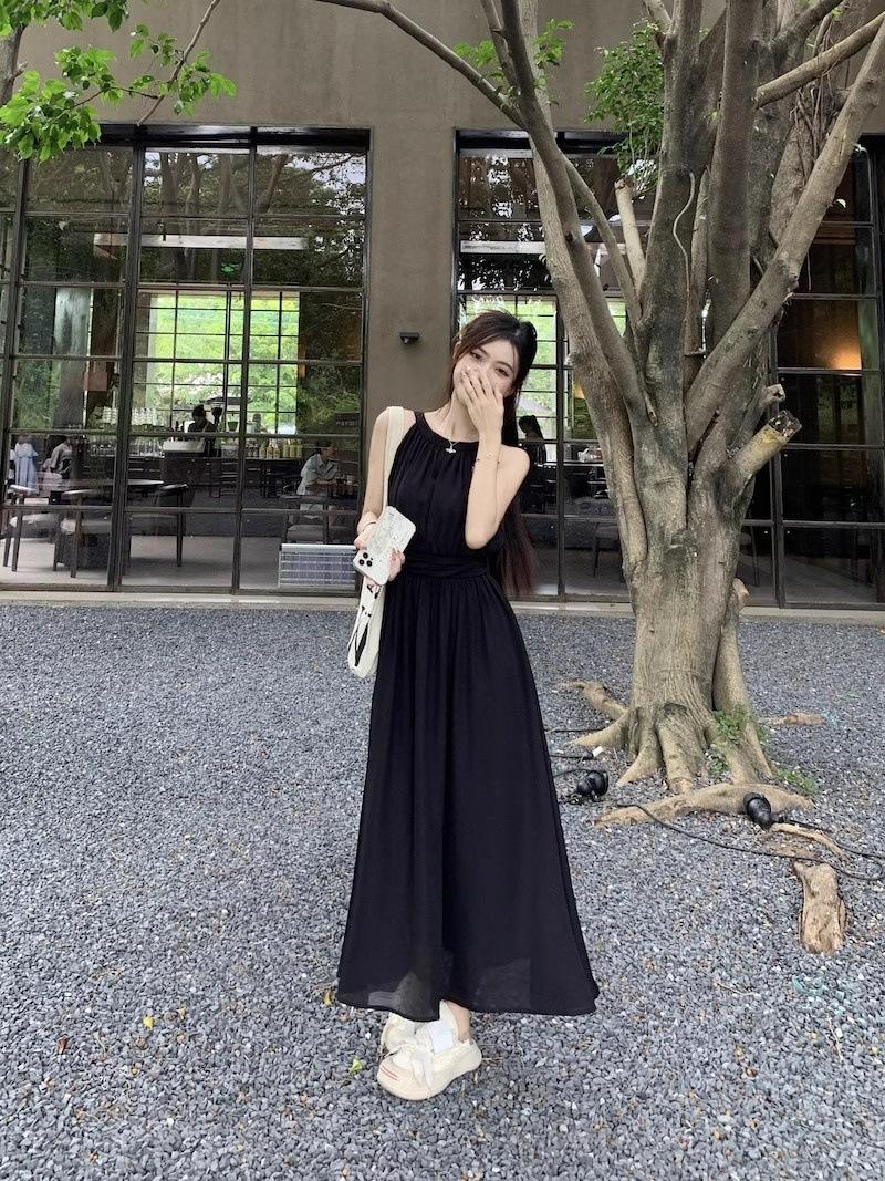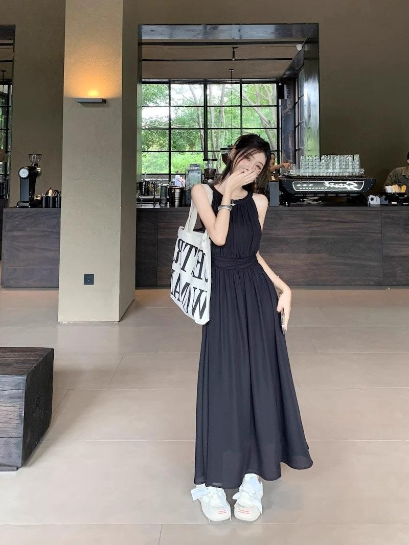 Vestido de verano para niños con cuello colgante estilo francés, nueva textura, estilo francés de alta gama, hermoso vestido de fiesta junto al mar.