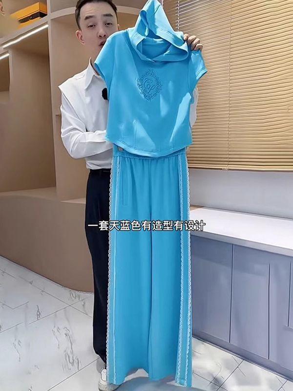 Traje deportivo europeo para mujer verano 2025 nueva moda estilo occidental sentido del diseño de alta calidad holgado pantalones de pierna ancha conjunto de dos piezas