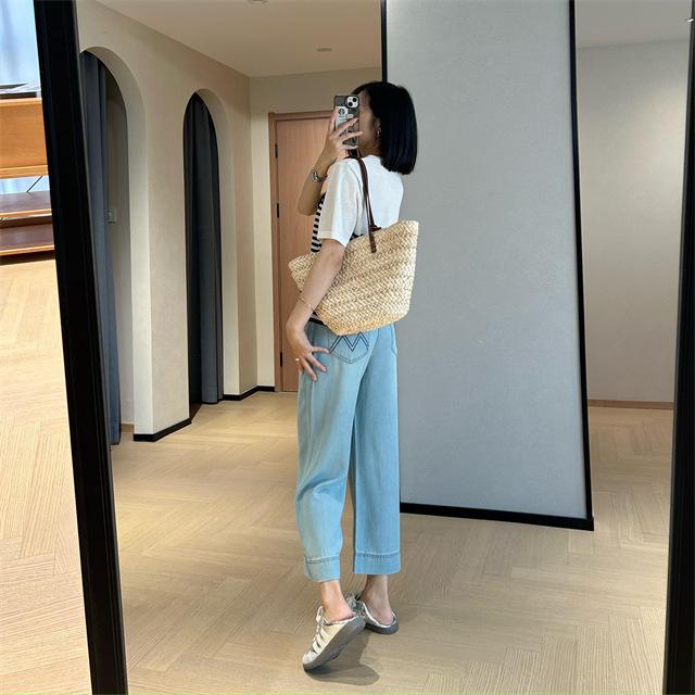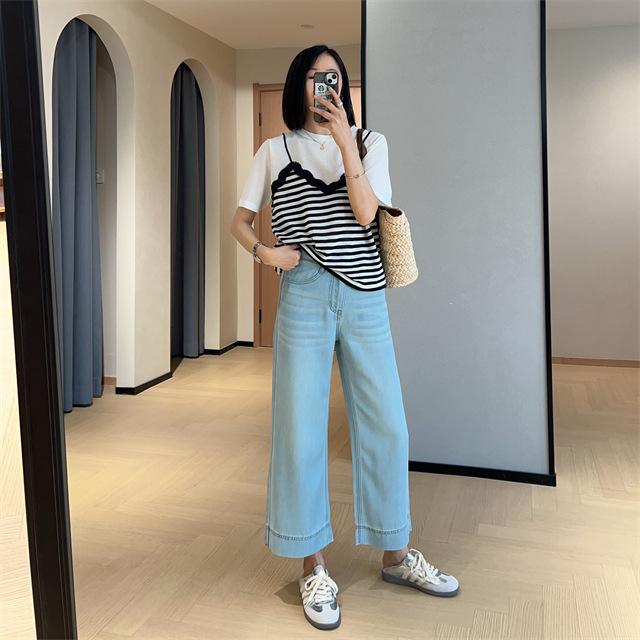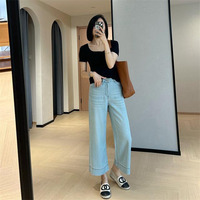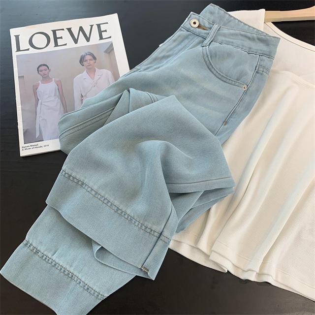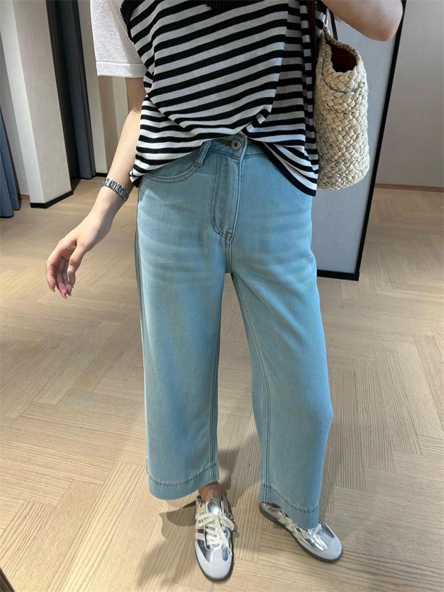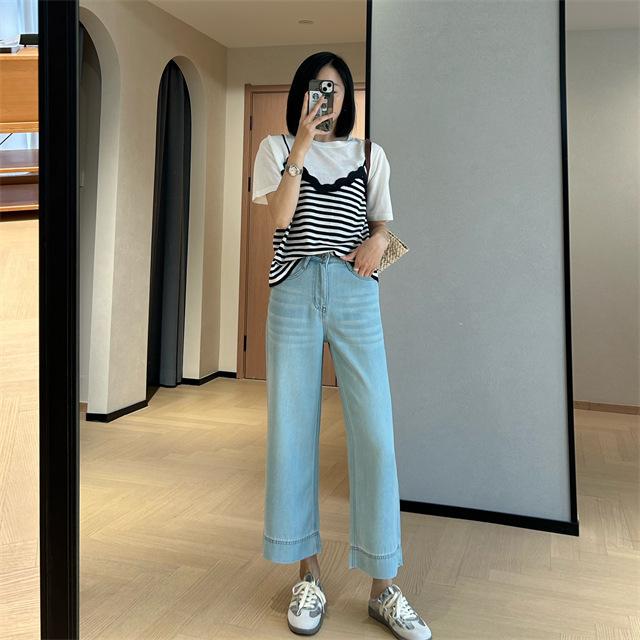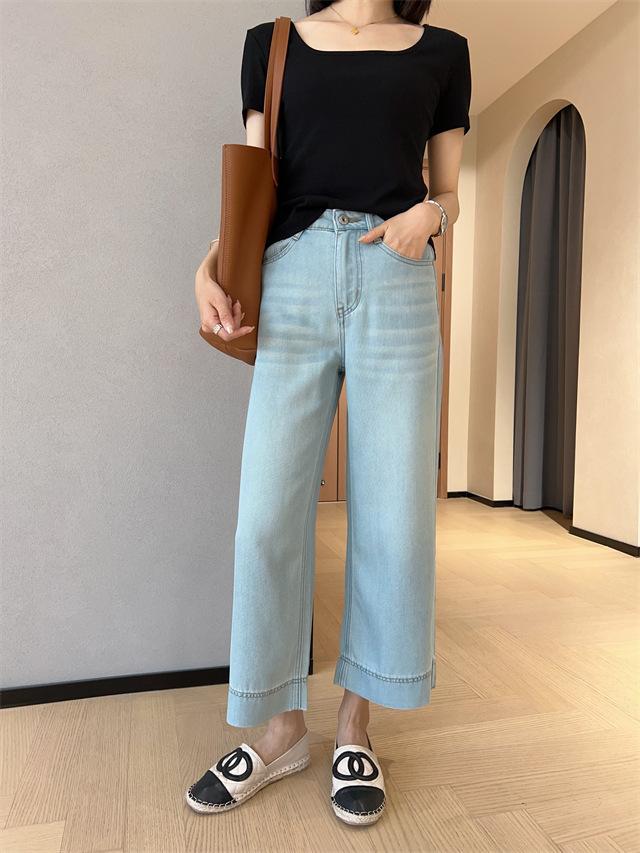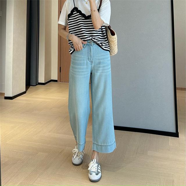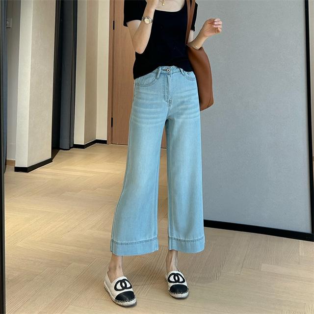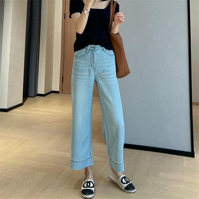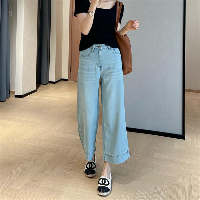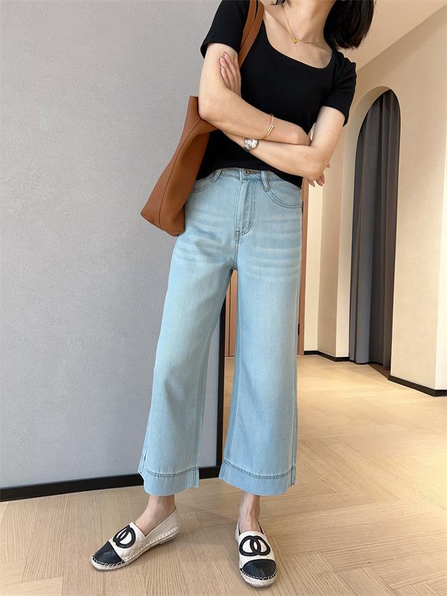 Versión de pierna ancha, cubriendo la carne y haciéndote lucir más delgada, pantalones de nueve puntos, limpios y pulcros,