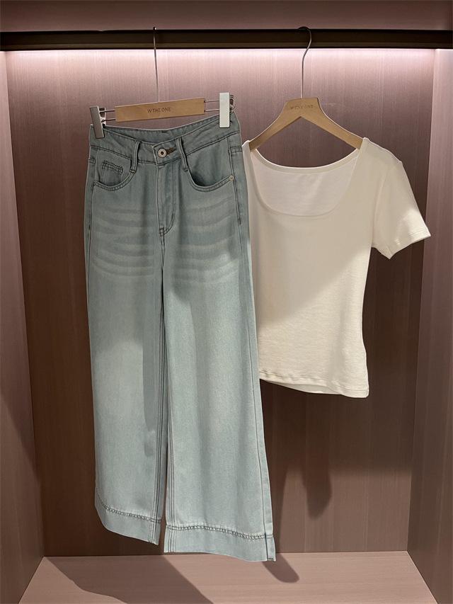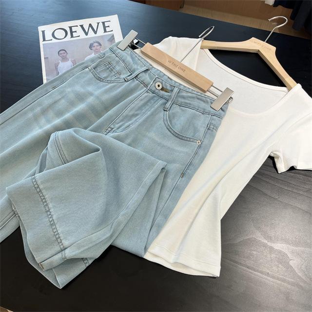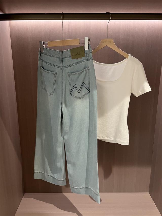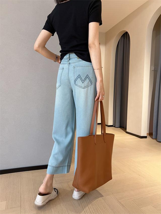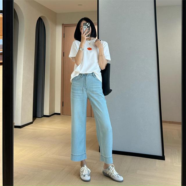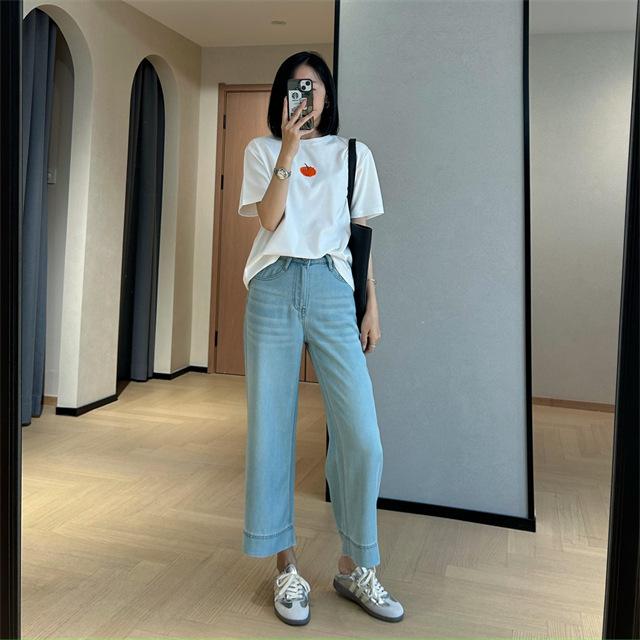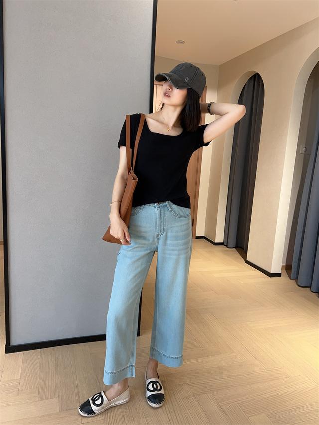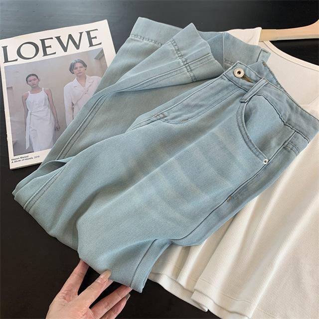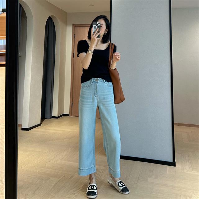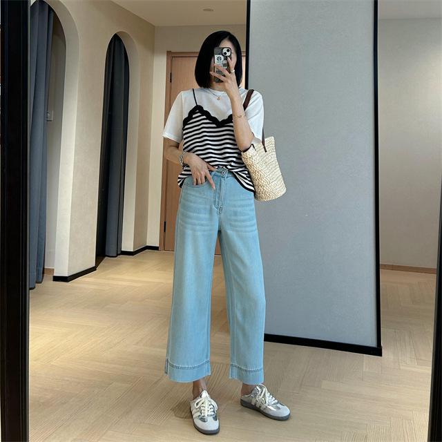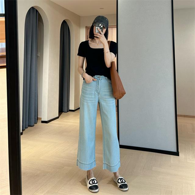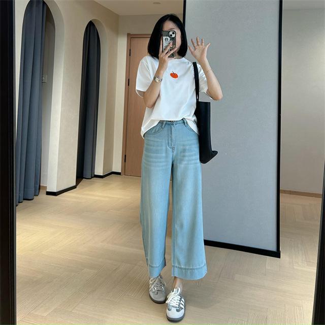Versión de pierna ancha, cubriendo la carne y haciéndote lucir más delgada, pantalones de nueve puntos, limpios y pulcros,