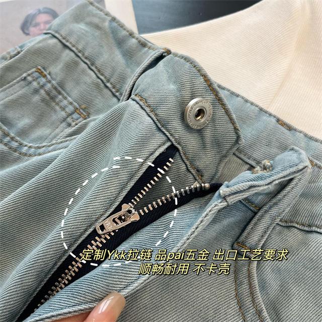 Estilo lavado retro, diseño de bordado M en el bolsillo trasero,