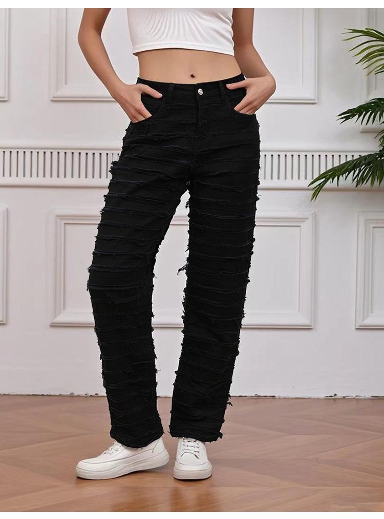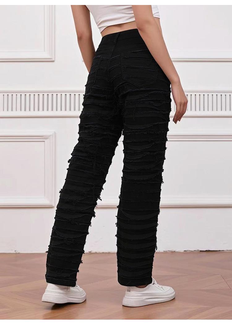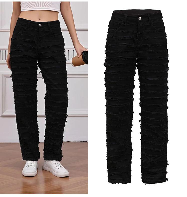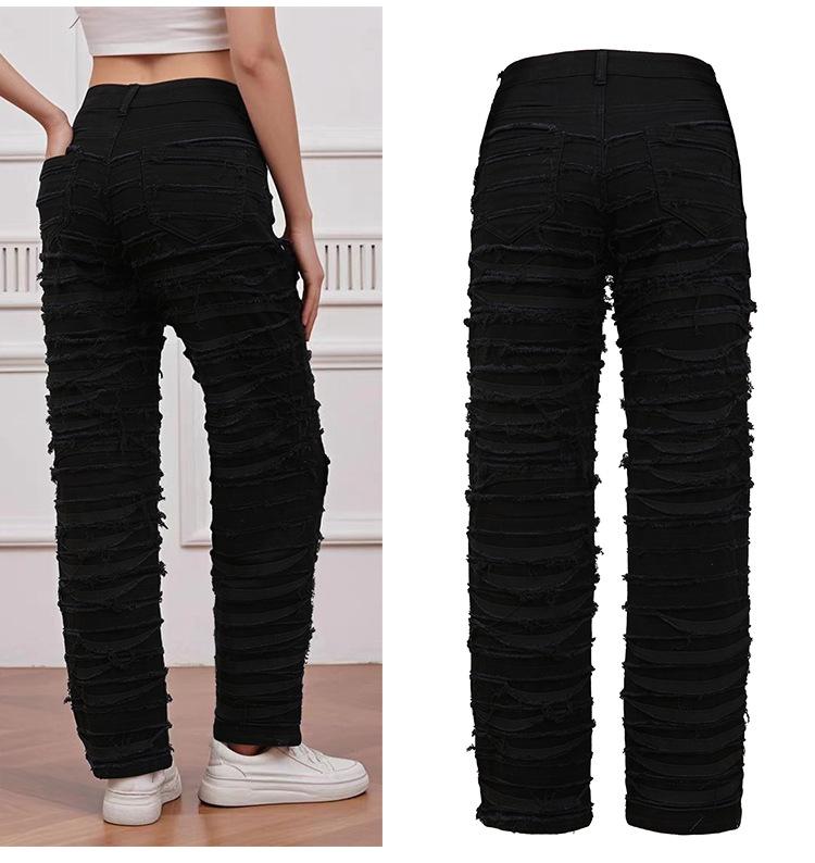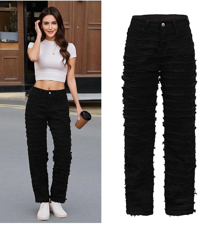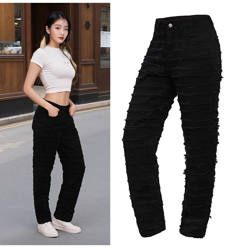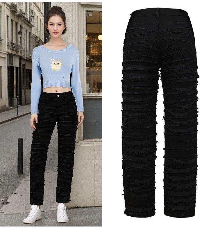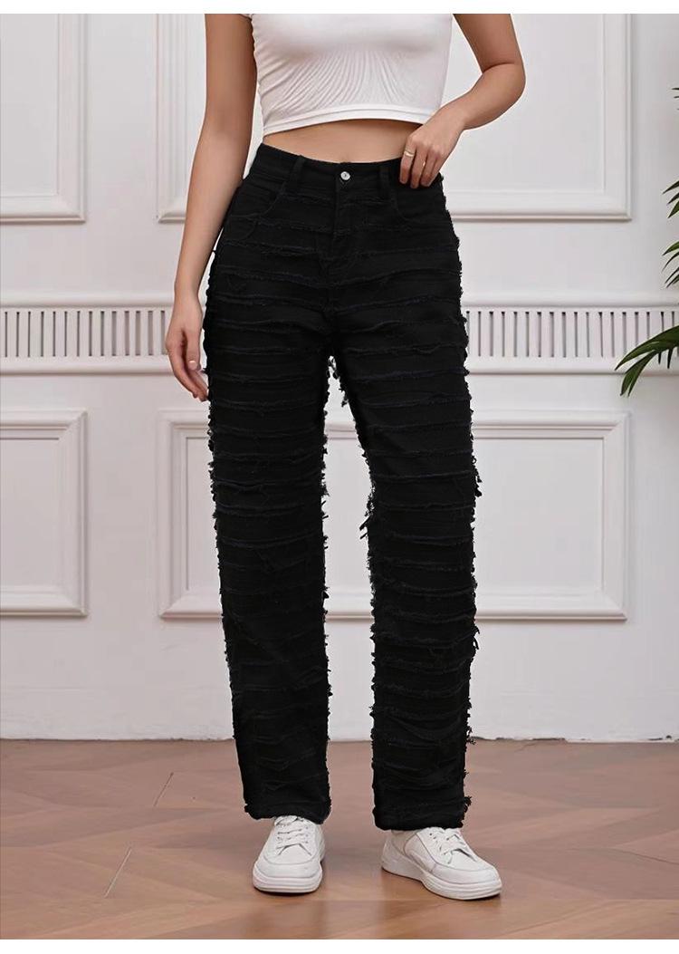Jeans rectos de pierna recta de primavera para mujer europea y americana, jeans gruesos holgados rasgados para mujer
