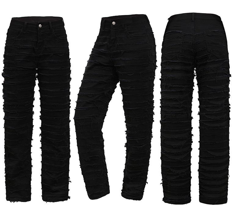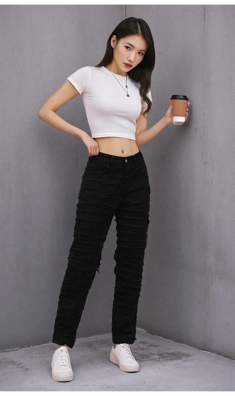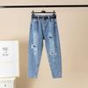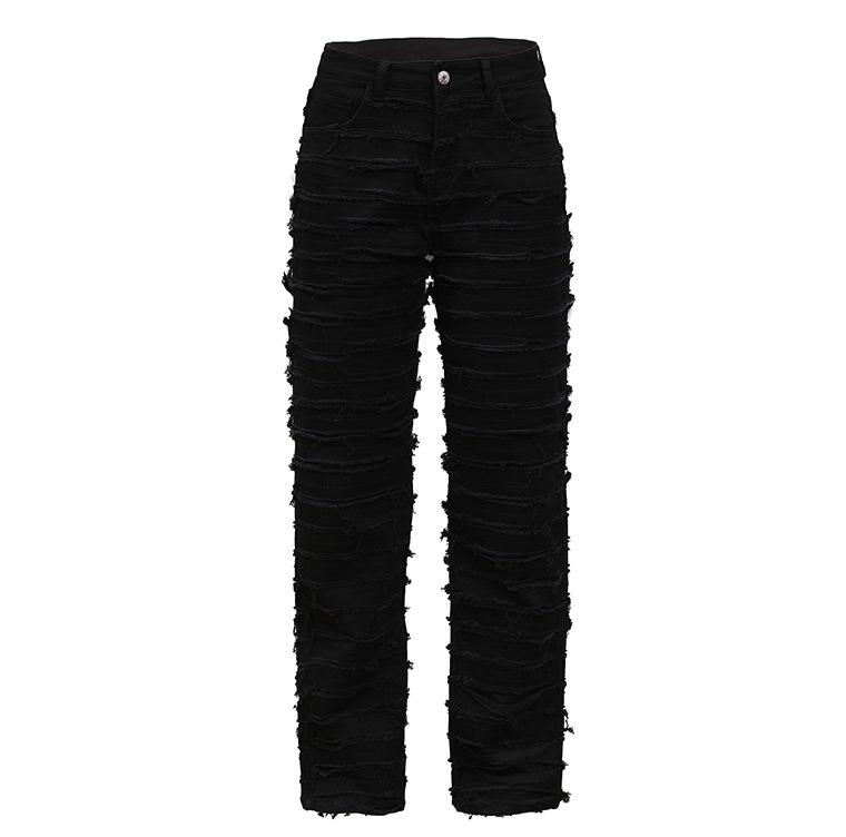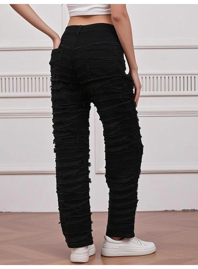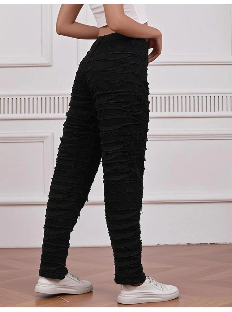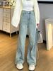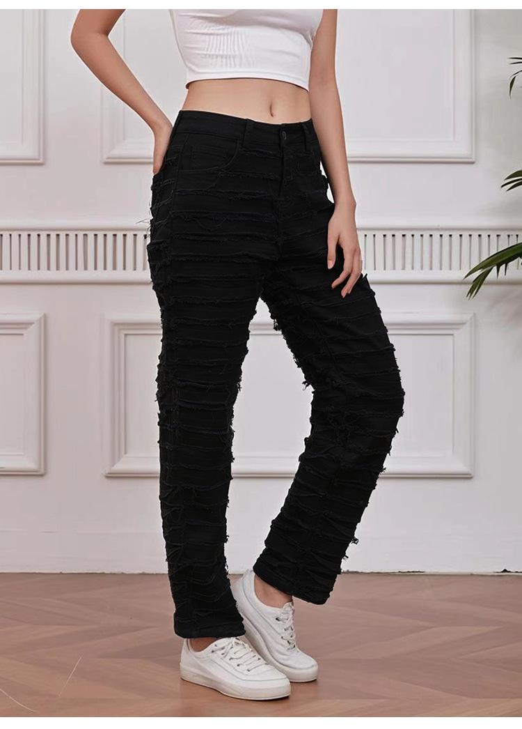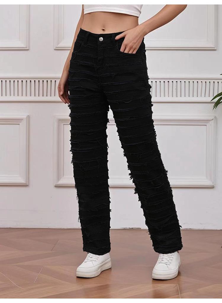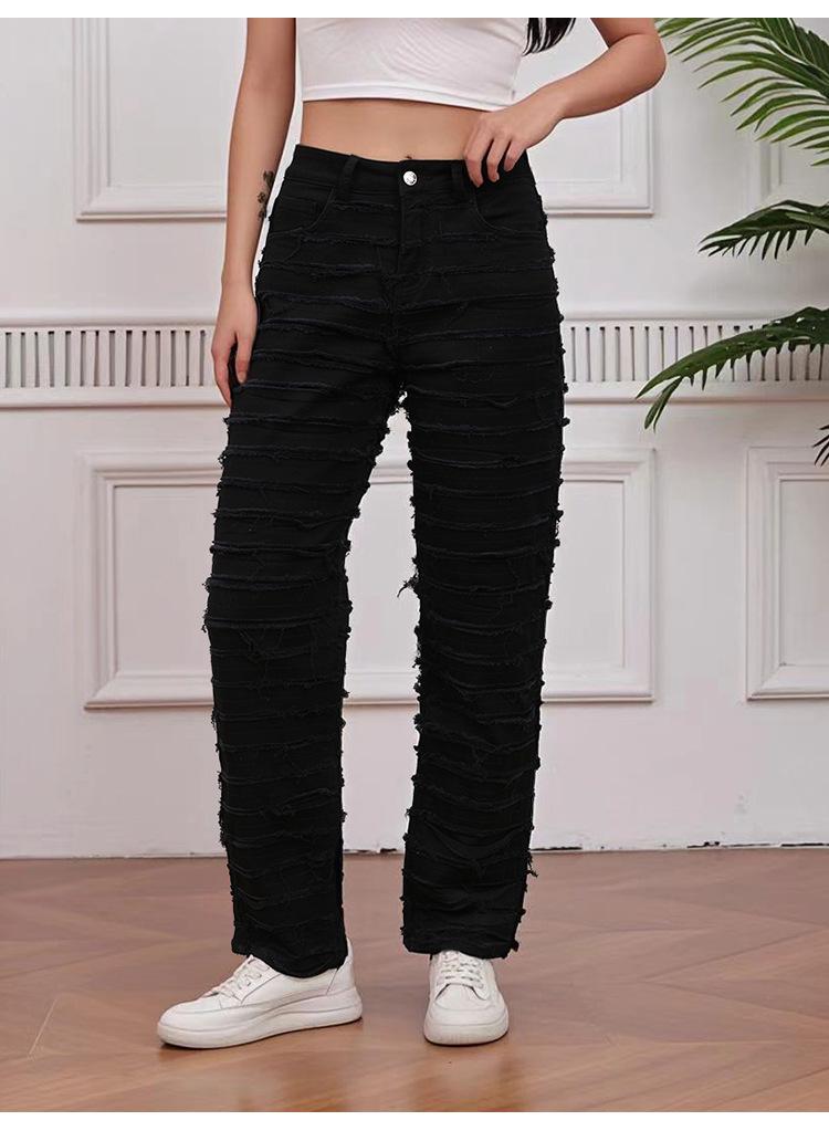 Jeans rectos de pierna recta de primavera para mujer europea y americana, jeans gruesos holgados rasgados para mujer