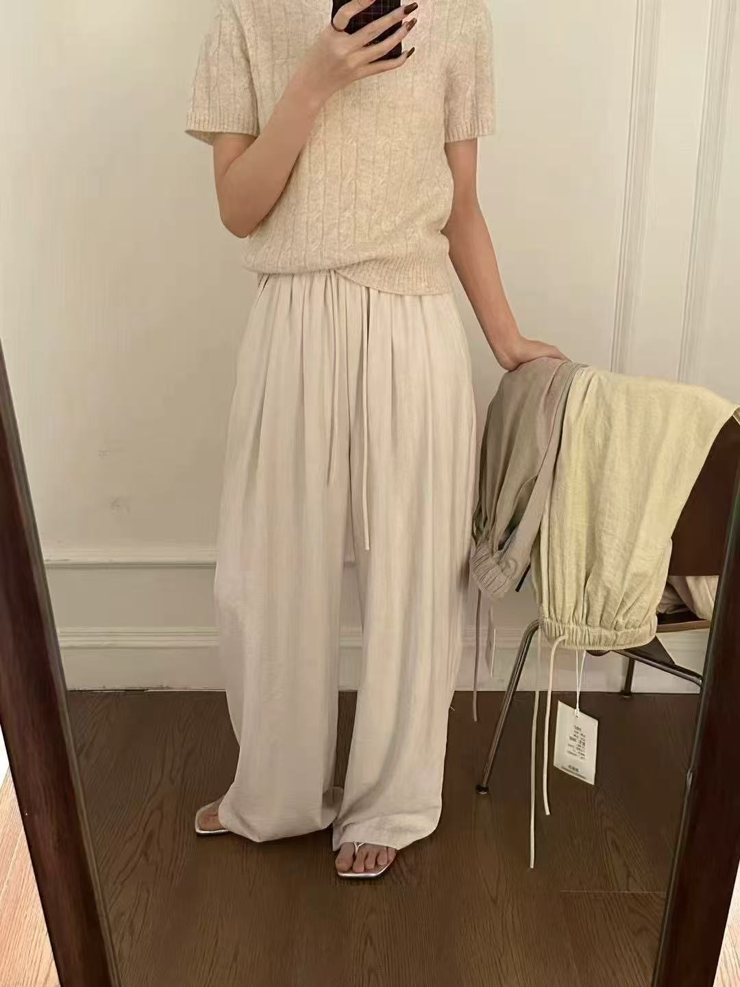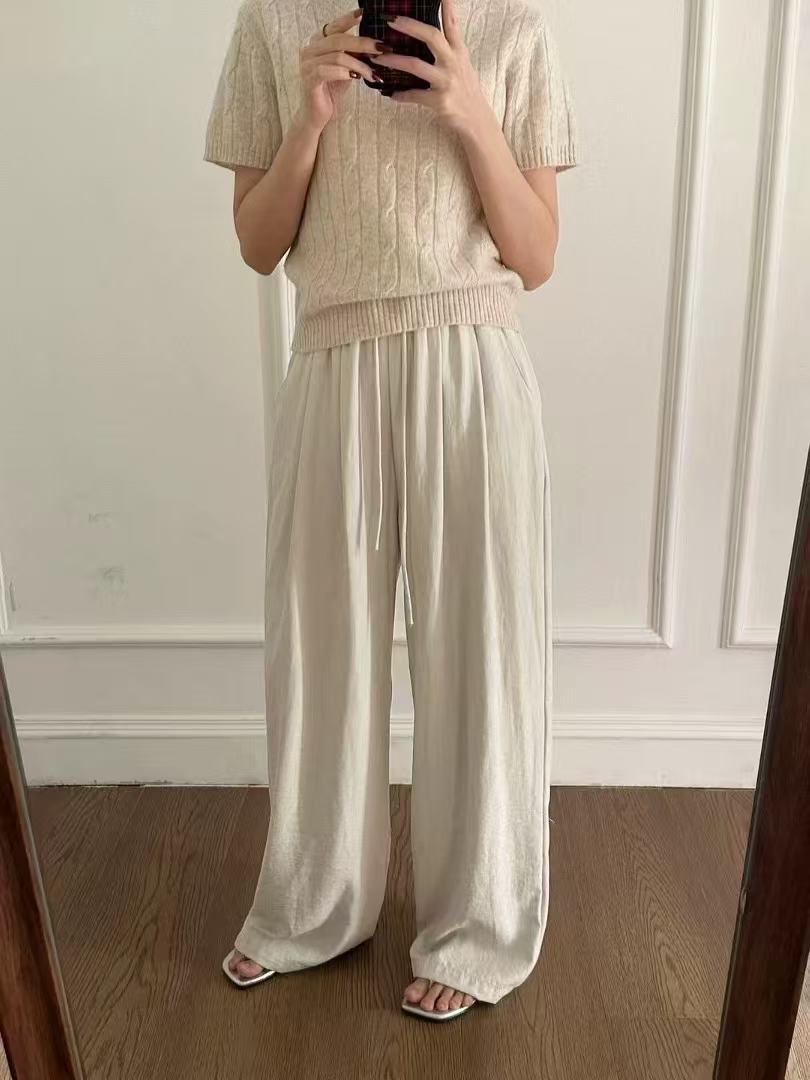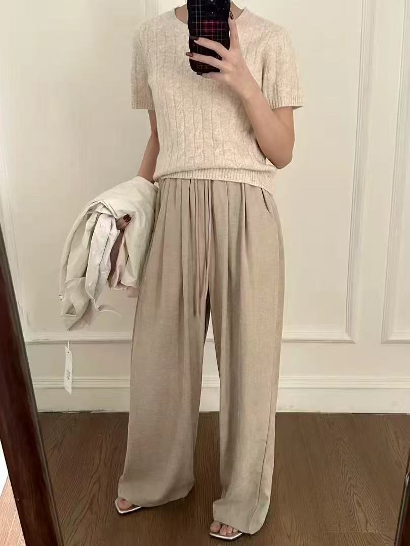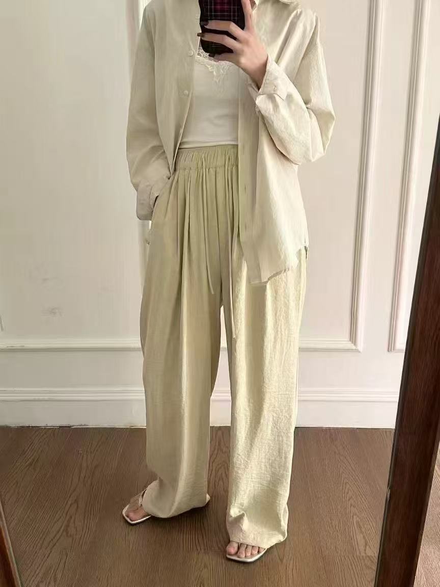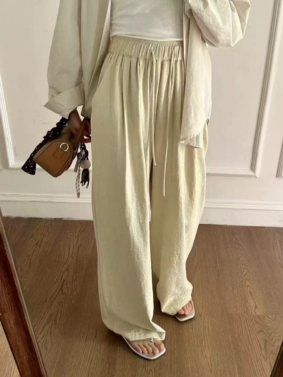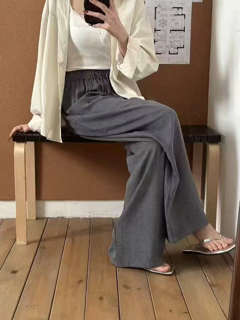 Pantalones Casuales de Estilo Holgazán para Combinar con Todo, Cintura Holgada, para Mujer, Primavera 2025 Nuevo, Sencillos, Delgados, Holgados, Tipo Dopping