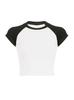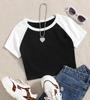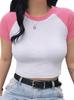 Verano Nueva Camiseta de Manga Raglán con Bloques de Color para Mujer Ins Trendy 2021 Europea y Americana BM Crop Top Corto de Contraste de Color
