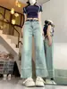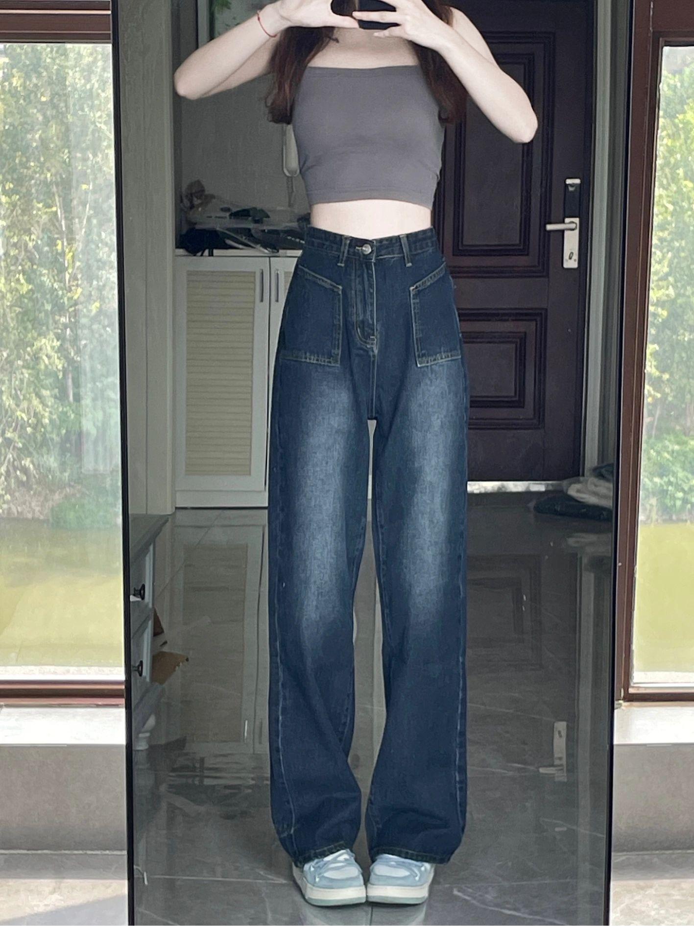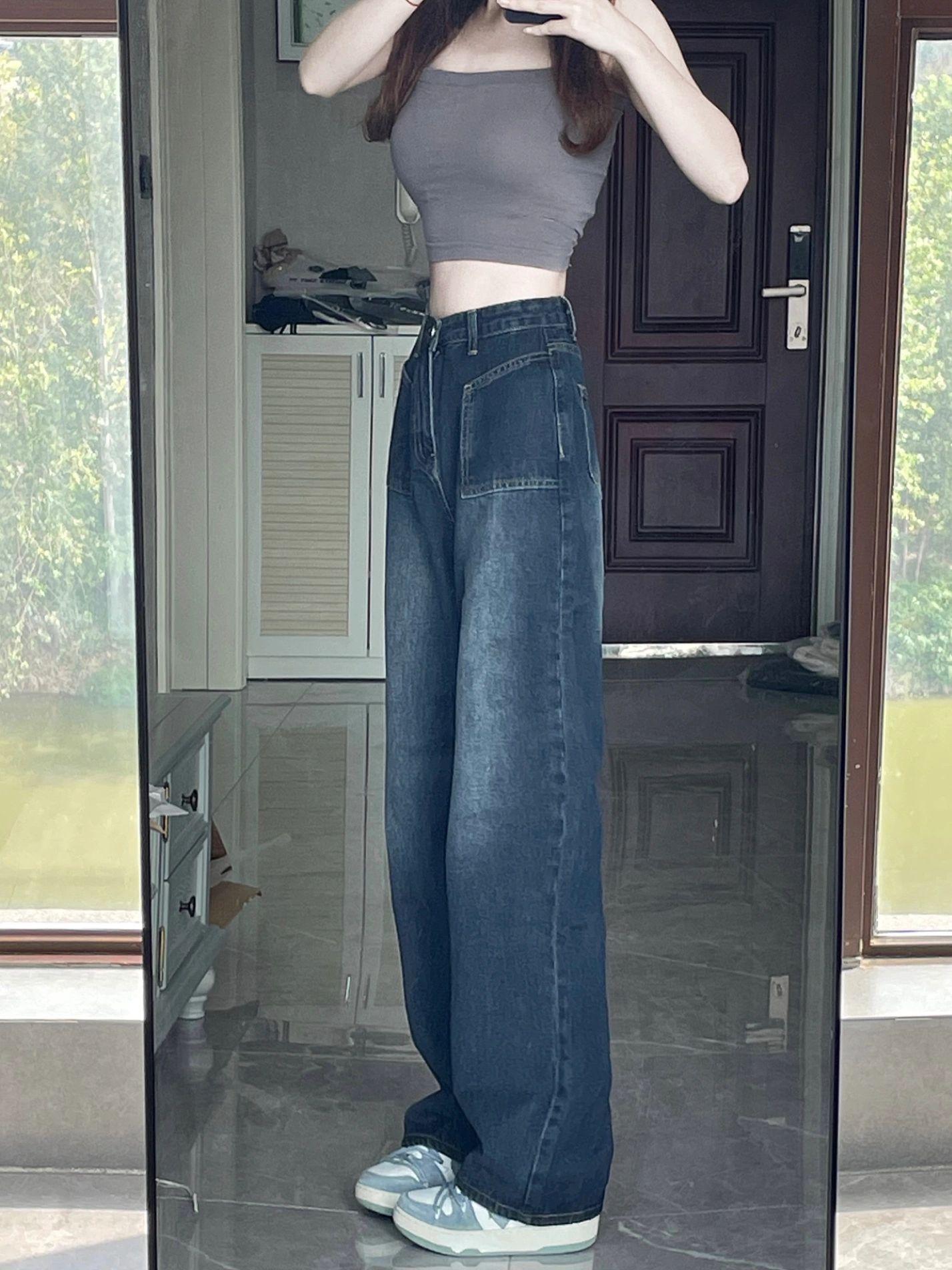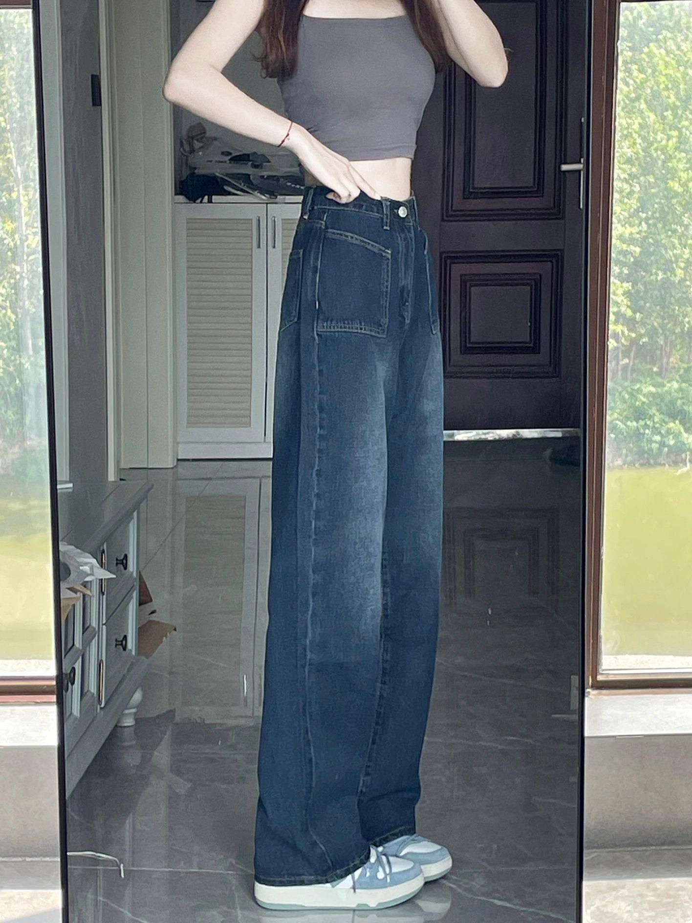 Jeans Vintage de Cintura Alta y Pierna Recta para Mujer, Primavera/Verano Nuevo Talla Grande Sueltos Adelgazantes Pera Pantalones de Pierna Ancha