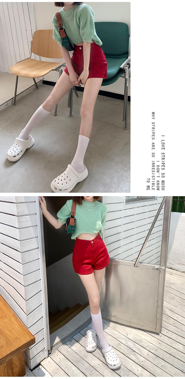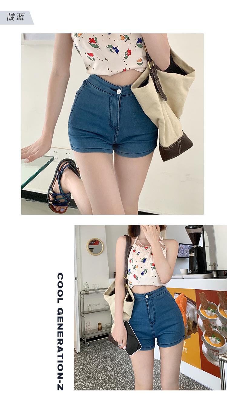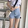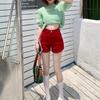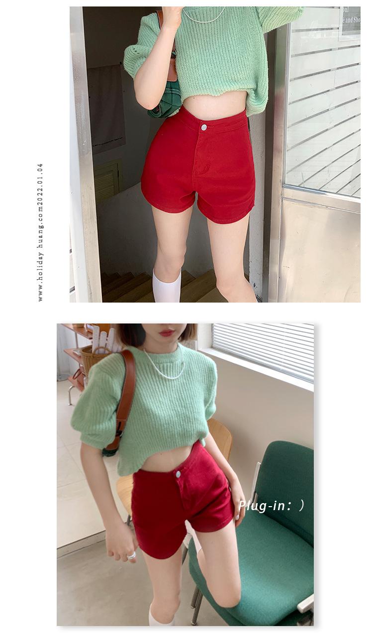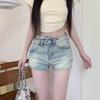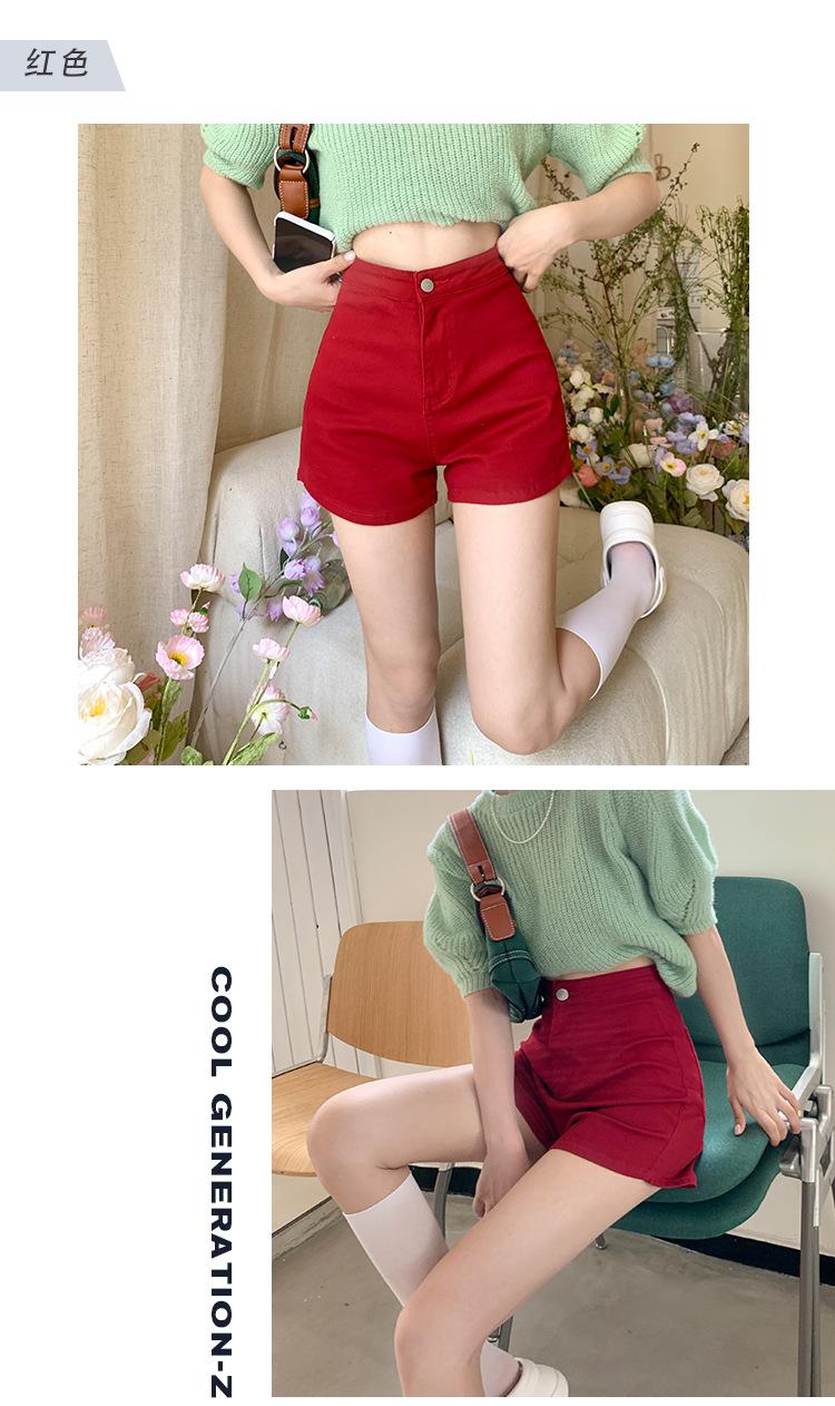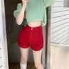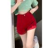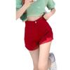 Pantalones cortos vaqueros de cintura alta para mujer, estilo Spice Girl, ajustados, de moda, estilo americano, color rojo, 2025