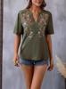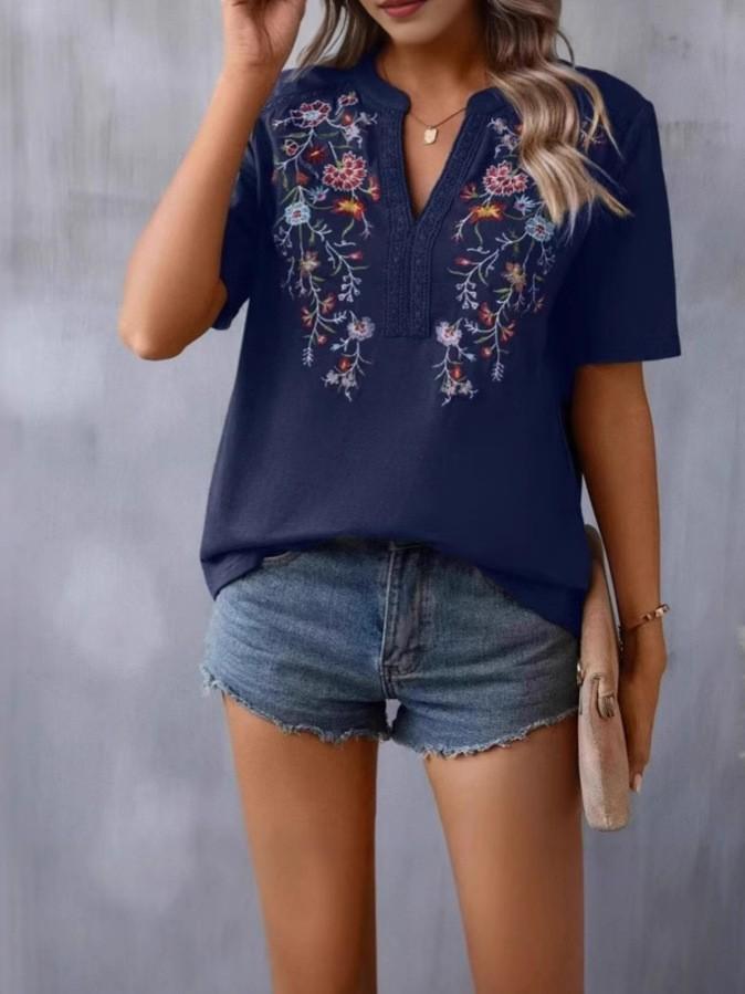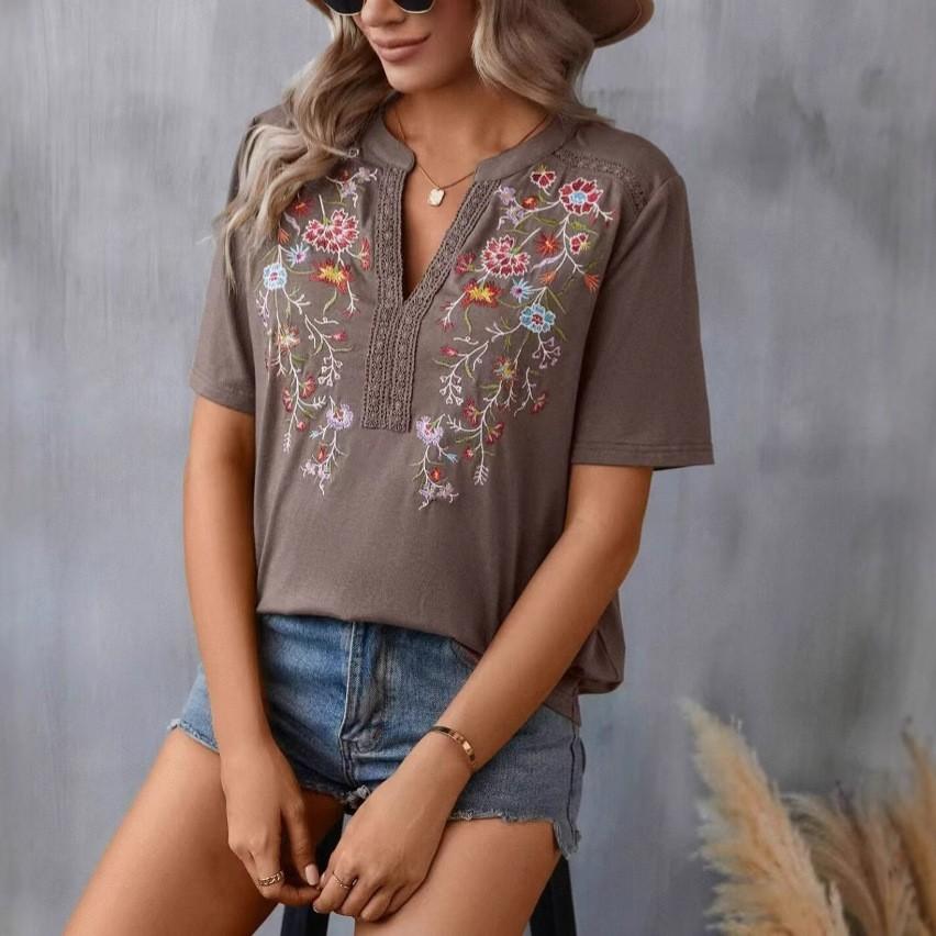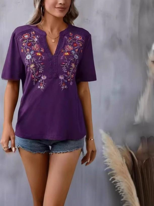 AliExpress Europa y América Amazon 2025 Transfronterizo Nueva Moda Diez Mil Agujas Bordado Costura Encaje Top Mujer Camiseta
