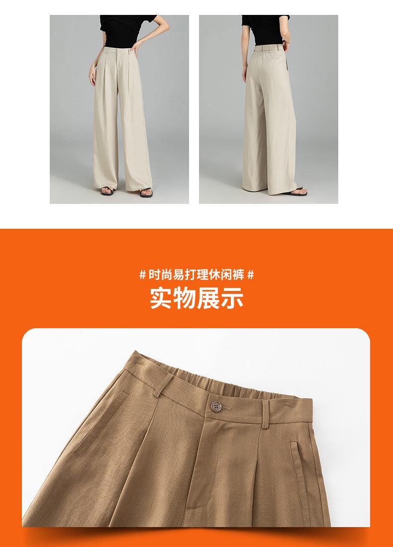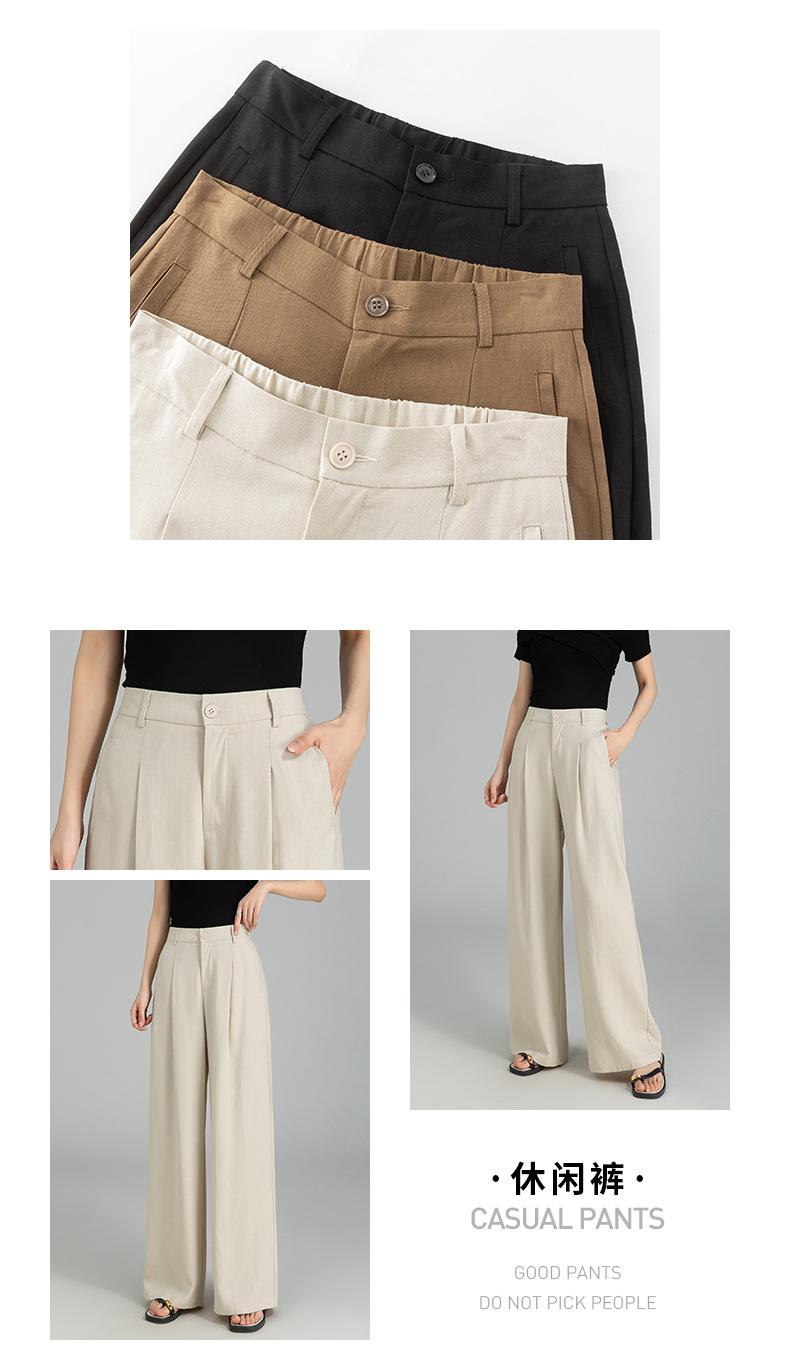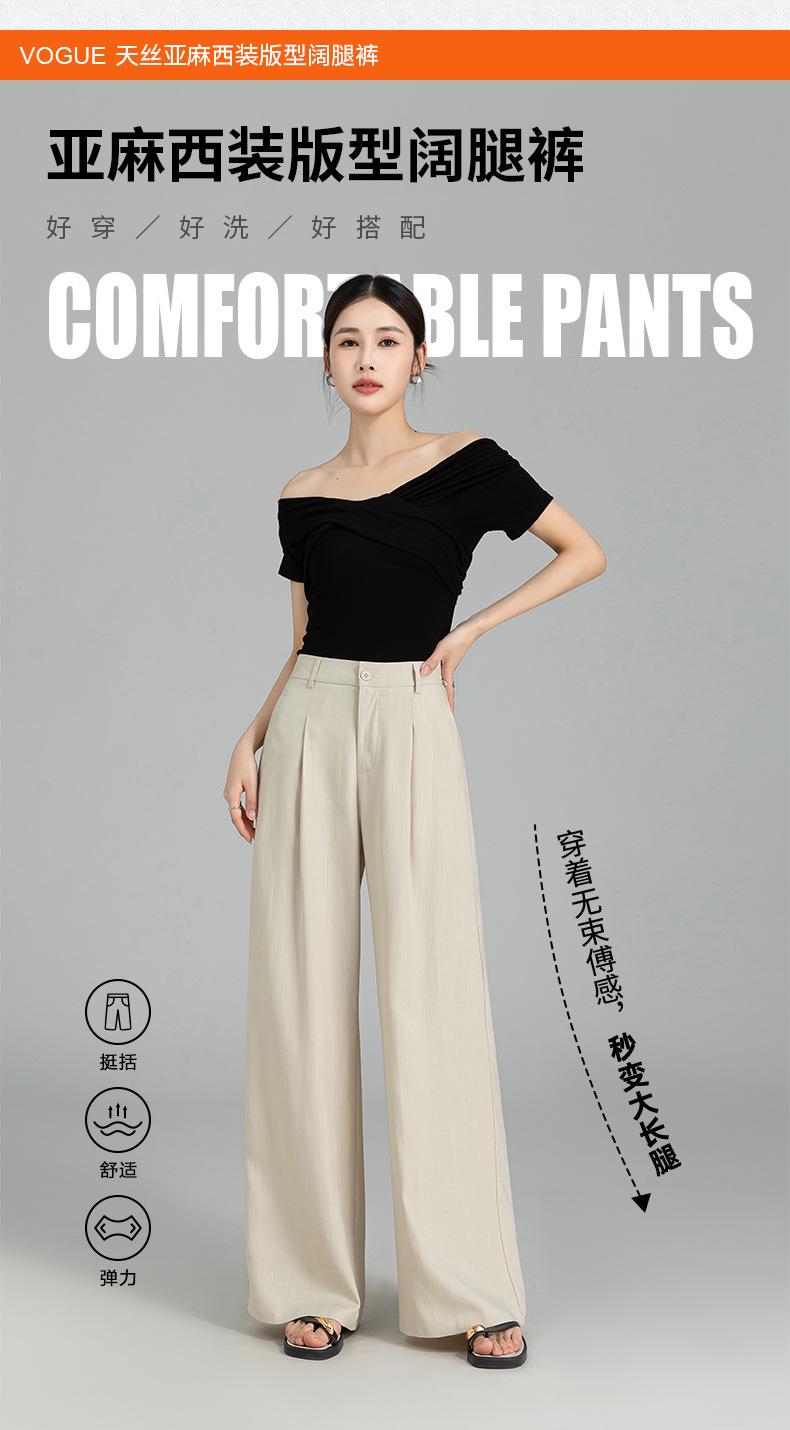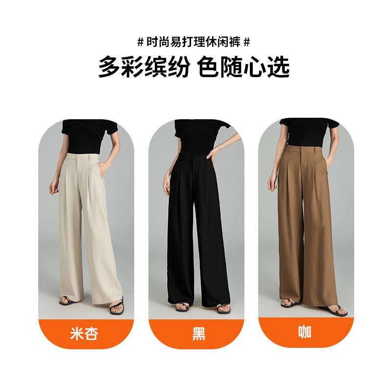 Pantalones de Pierna Ancha Estilo Traje de Lino de Seda de Primavera Qianbaijia Pantalones de Pierna Ancha de Seda de Hielo de Cintura Alta Adelgazantes Modernos Versátiles