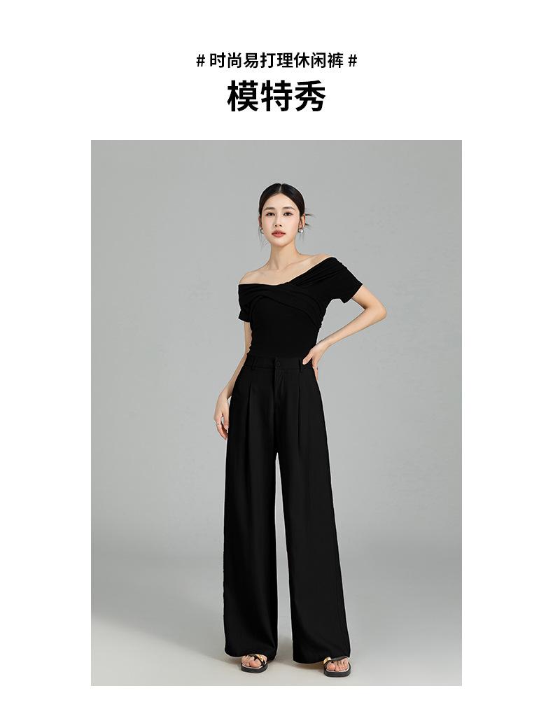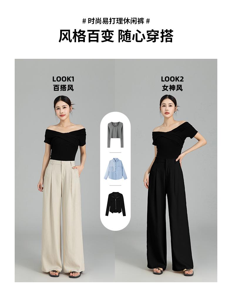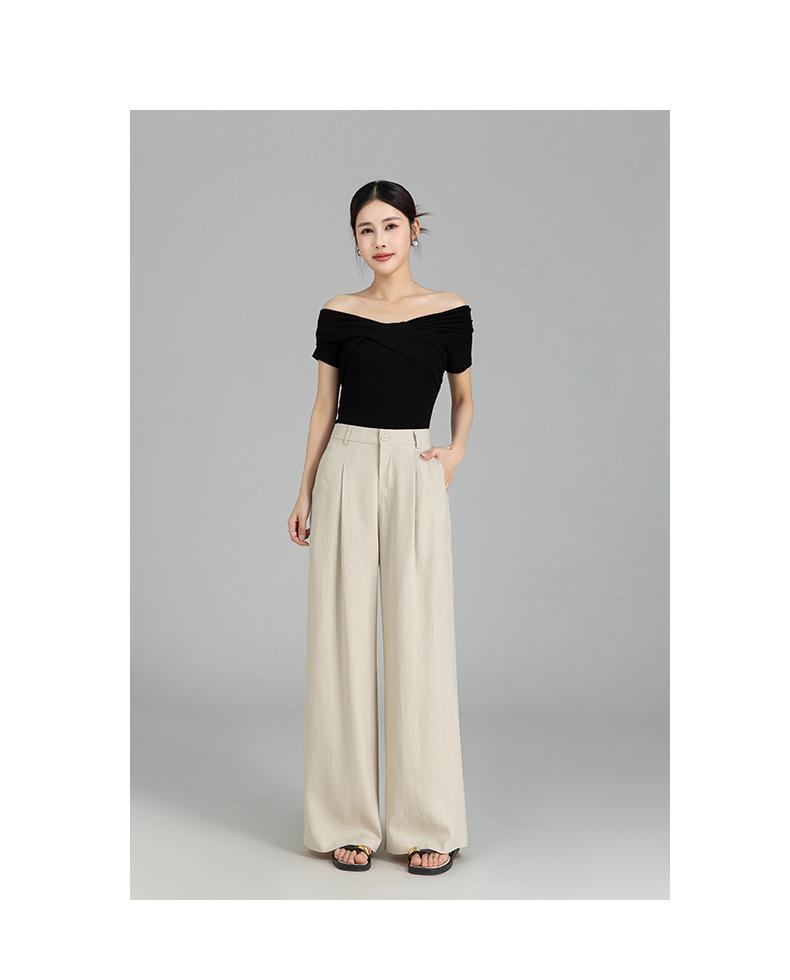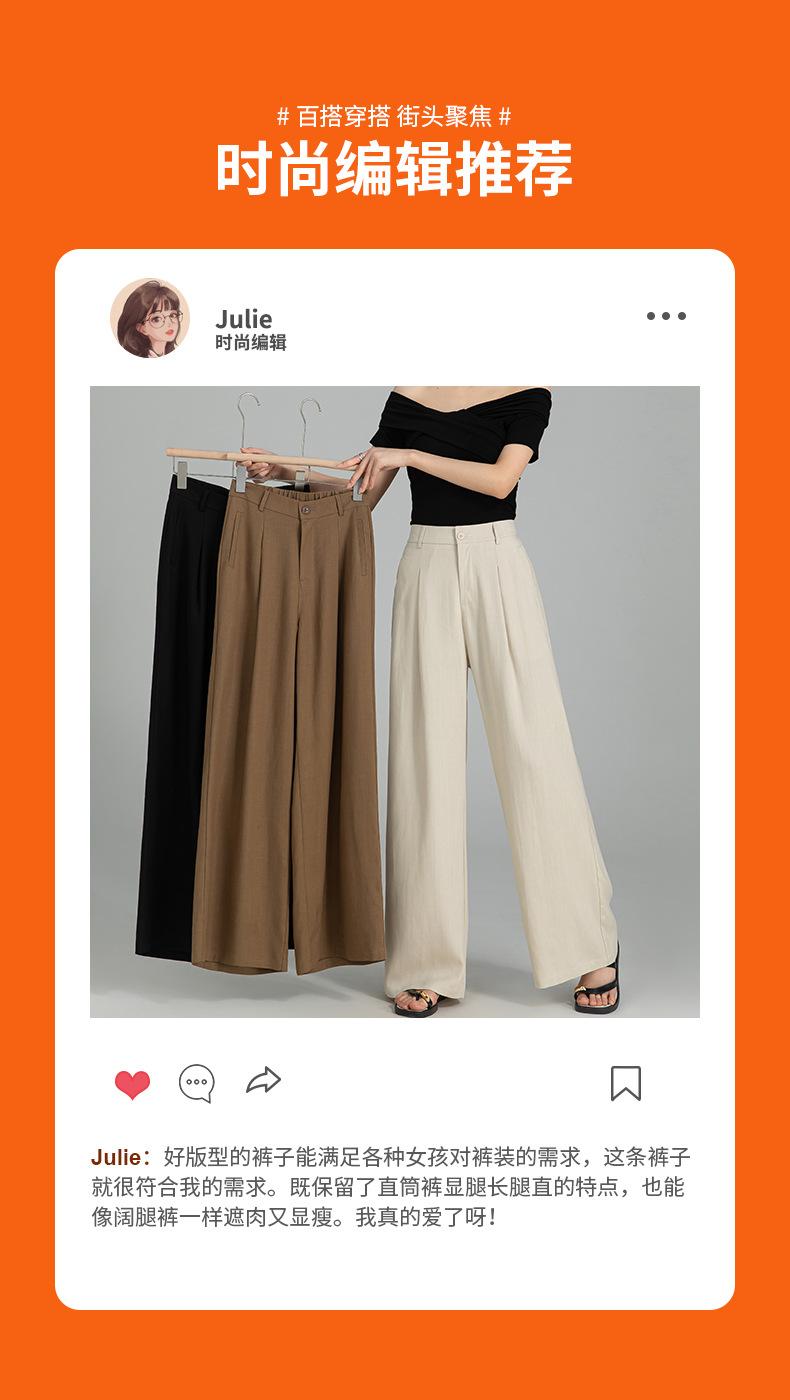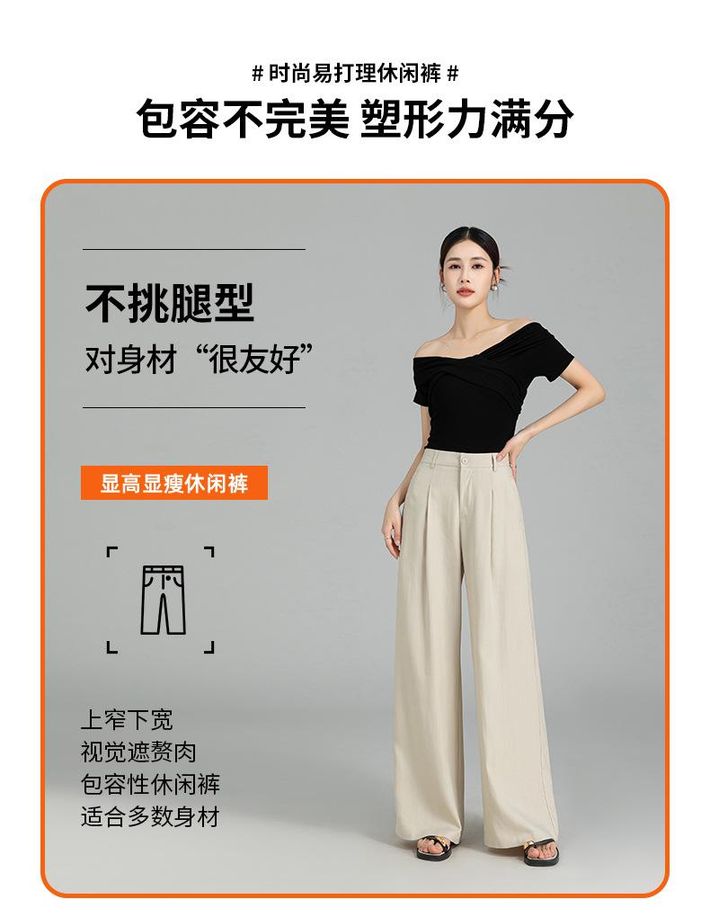 Pantalones de Pierna Ancha Estilo Traje de Lino de Seda de Primavera Qianbaijia Pantalones de Pierna Ancha de Seda de Hielo de Cintura Alta Adelgazantes Modernos Versátiles