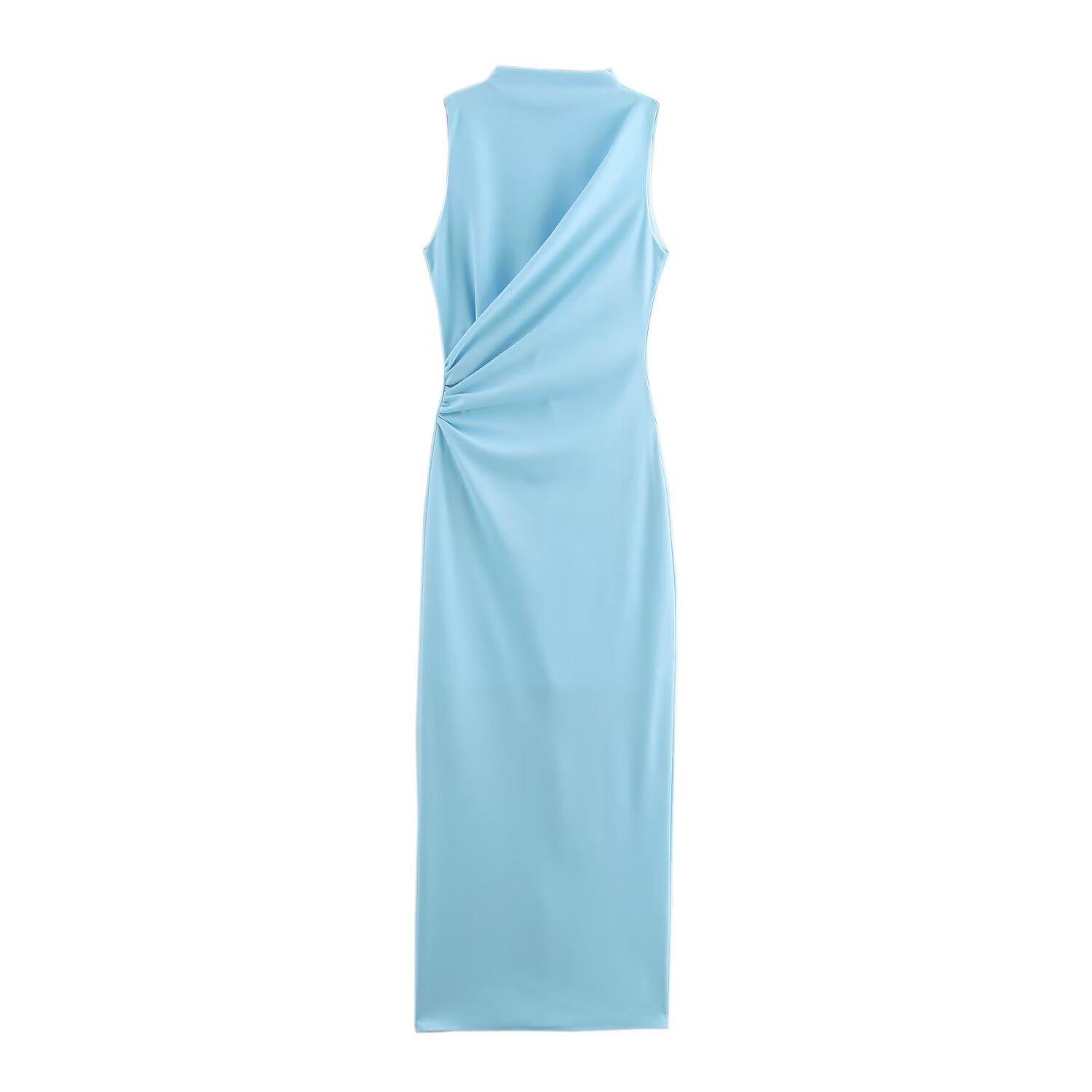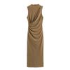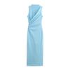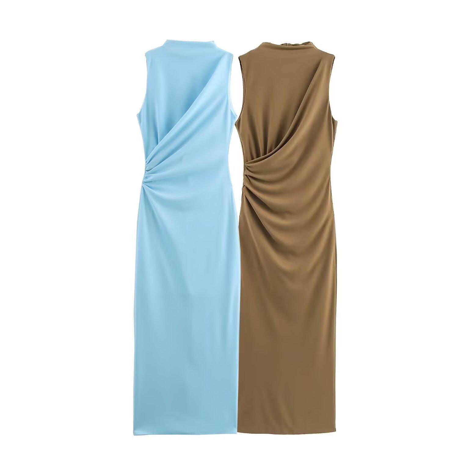 Vestido midi con pliegues y decoración, moda transfronteriza europea y americana, novedad primavera 2025, w025 11114