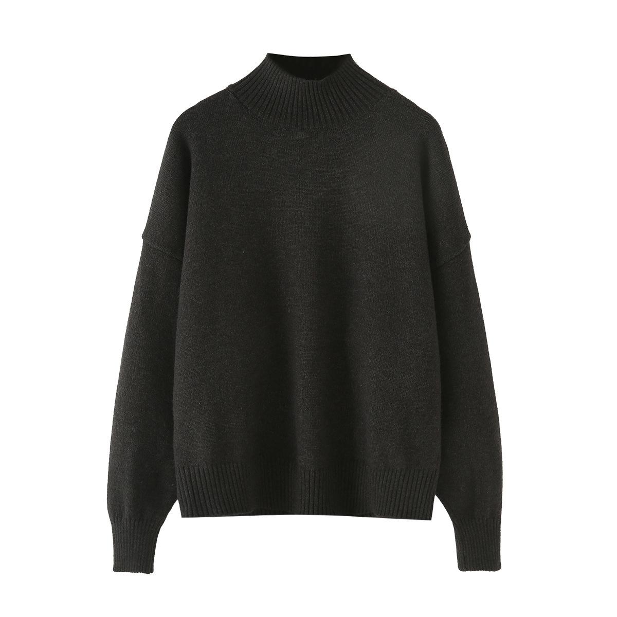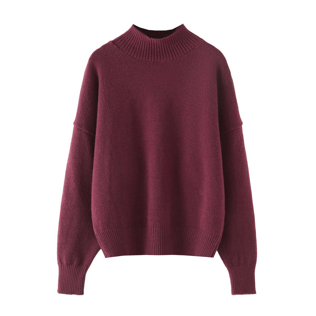 Exportación Transfronteriza Ropa de Mujer Otoño e Invierno 2025 Estilo Europeo y Americano Color Puro Cuello Redondo Manga Larga Tejido de Punto Camiseta Básica para Mujer M86709