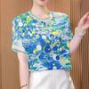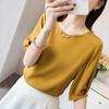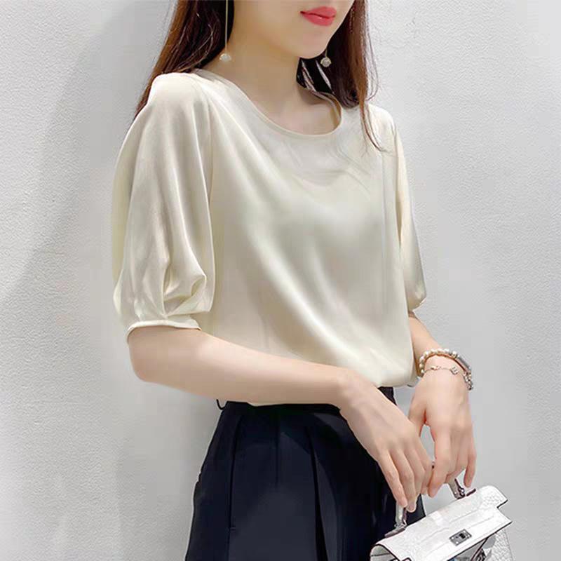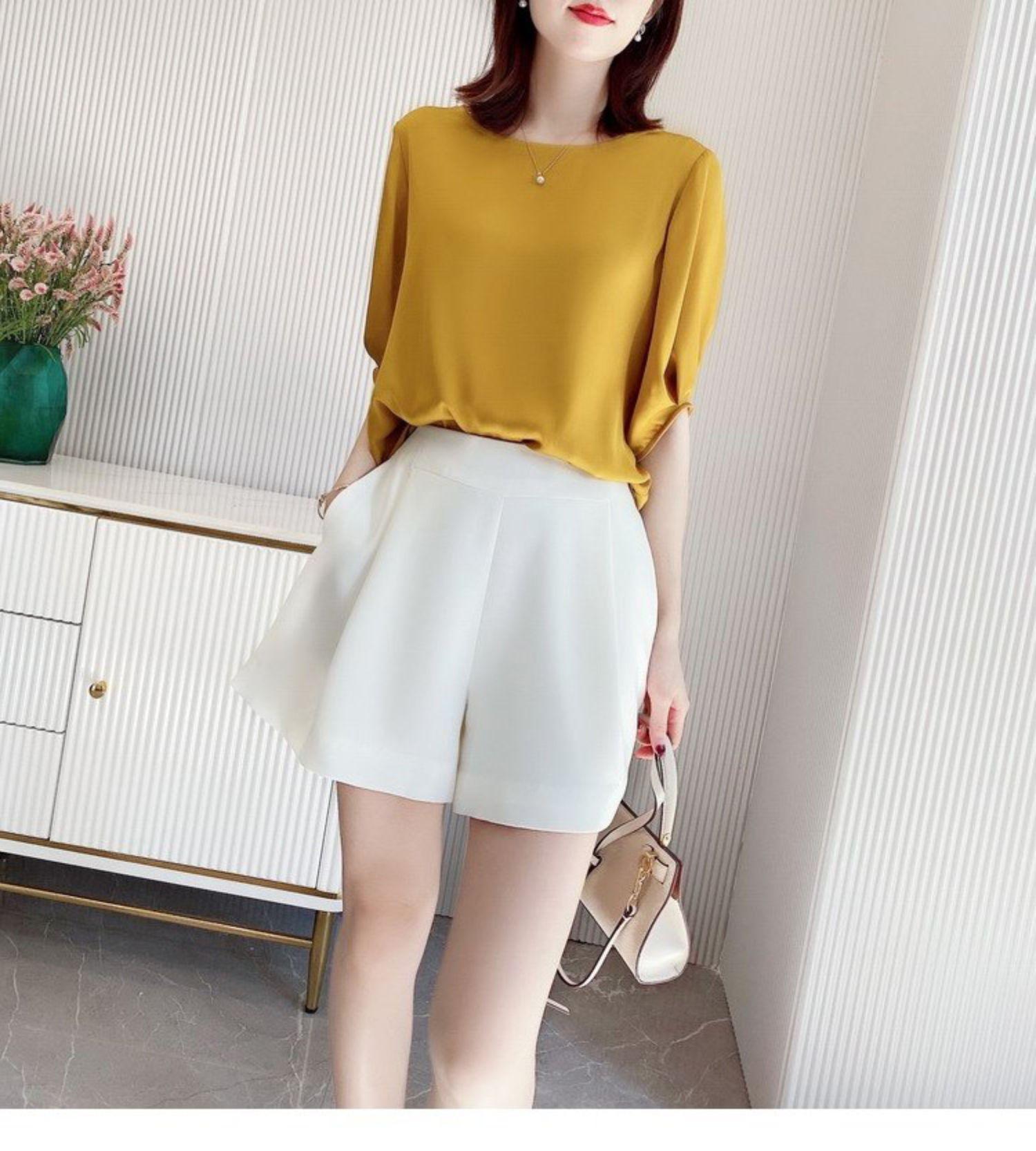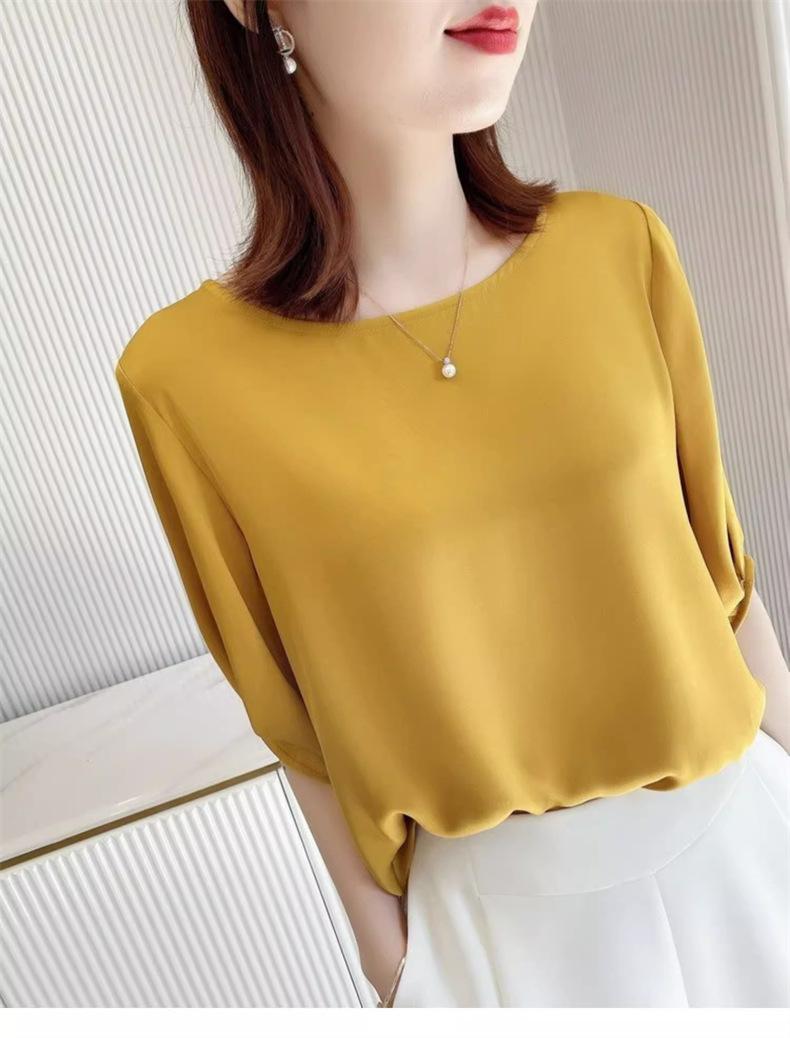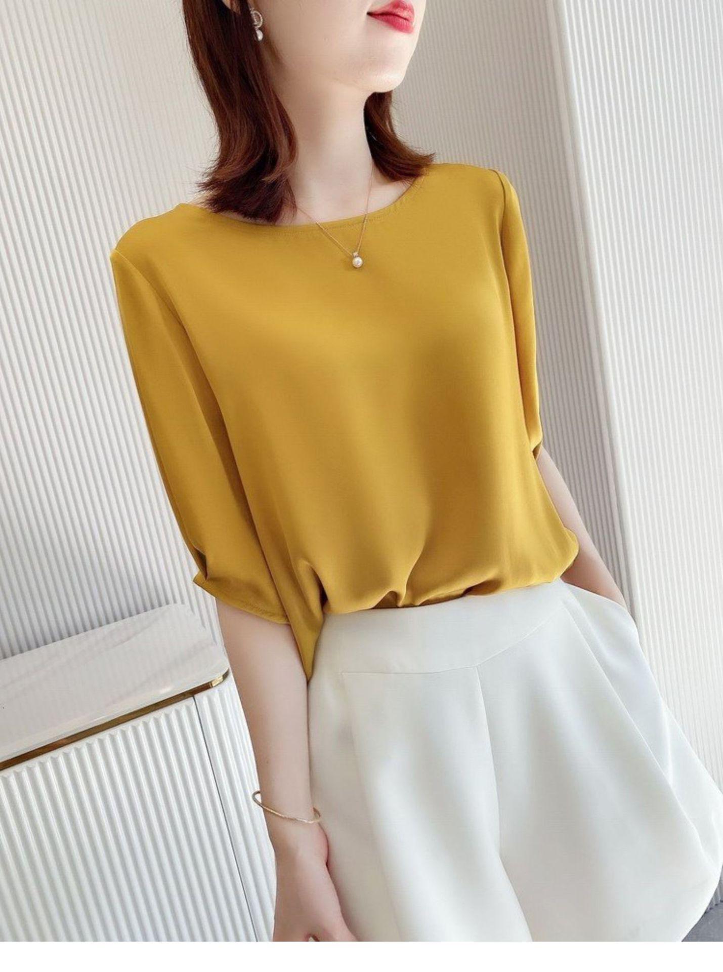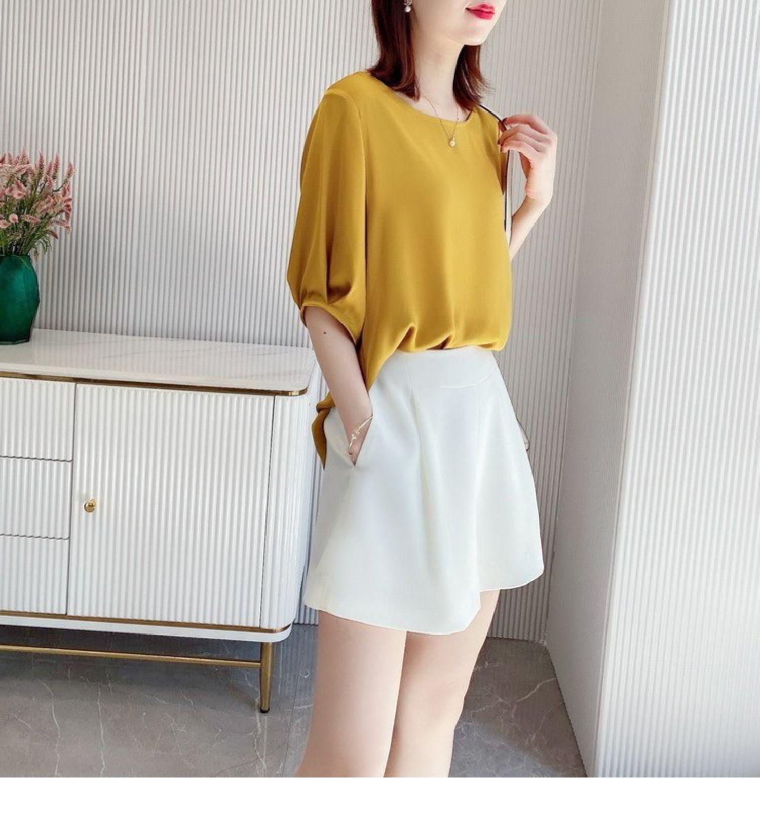 Camisa de manga corta gruesa con cuello redondo y drapeado, holgada, de gasa, para mujer, verano 2025