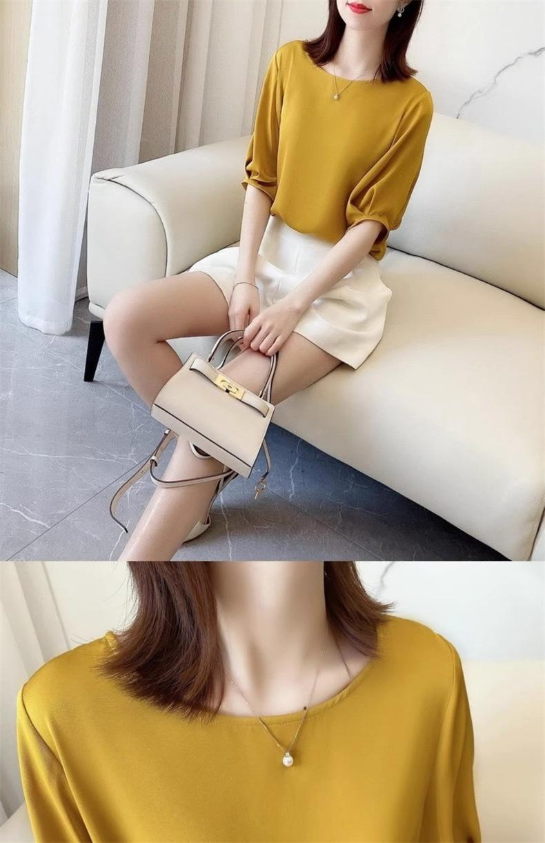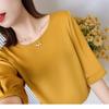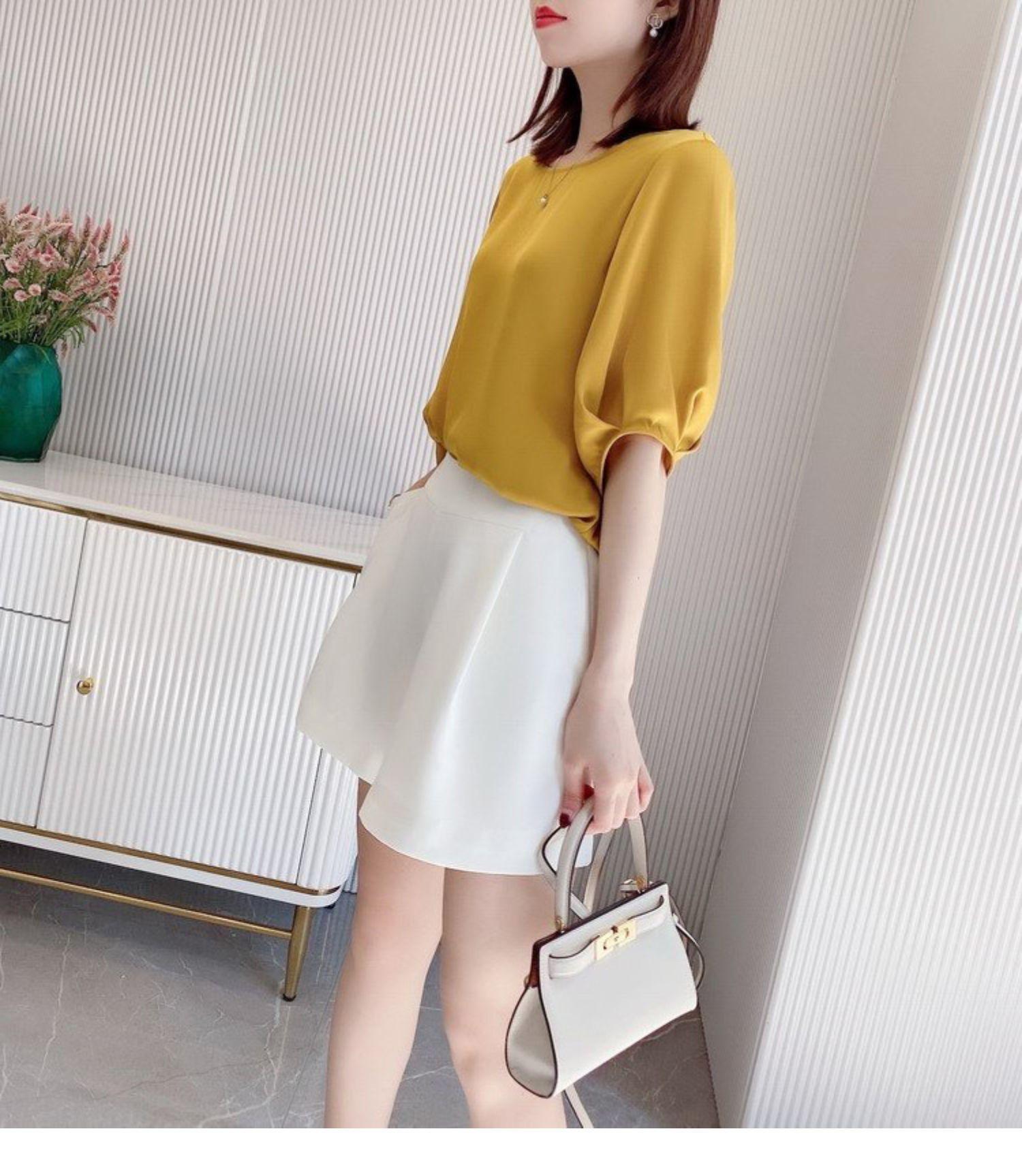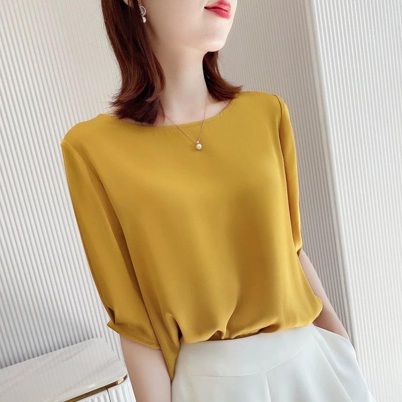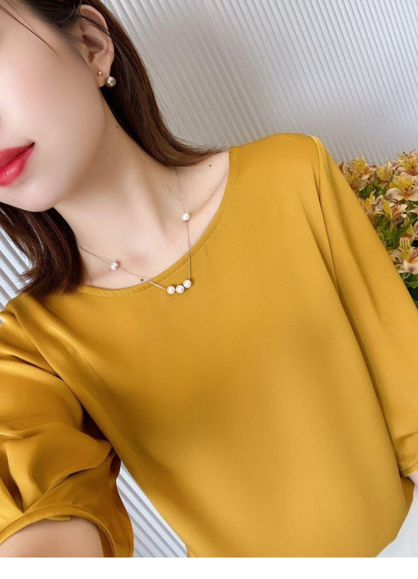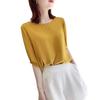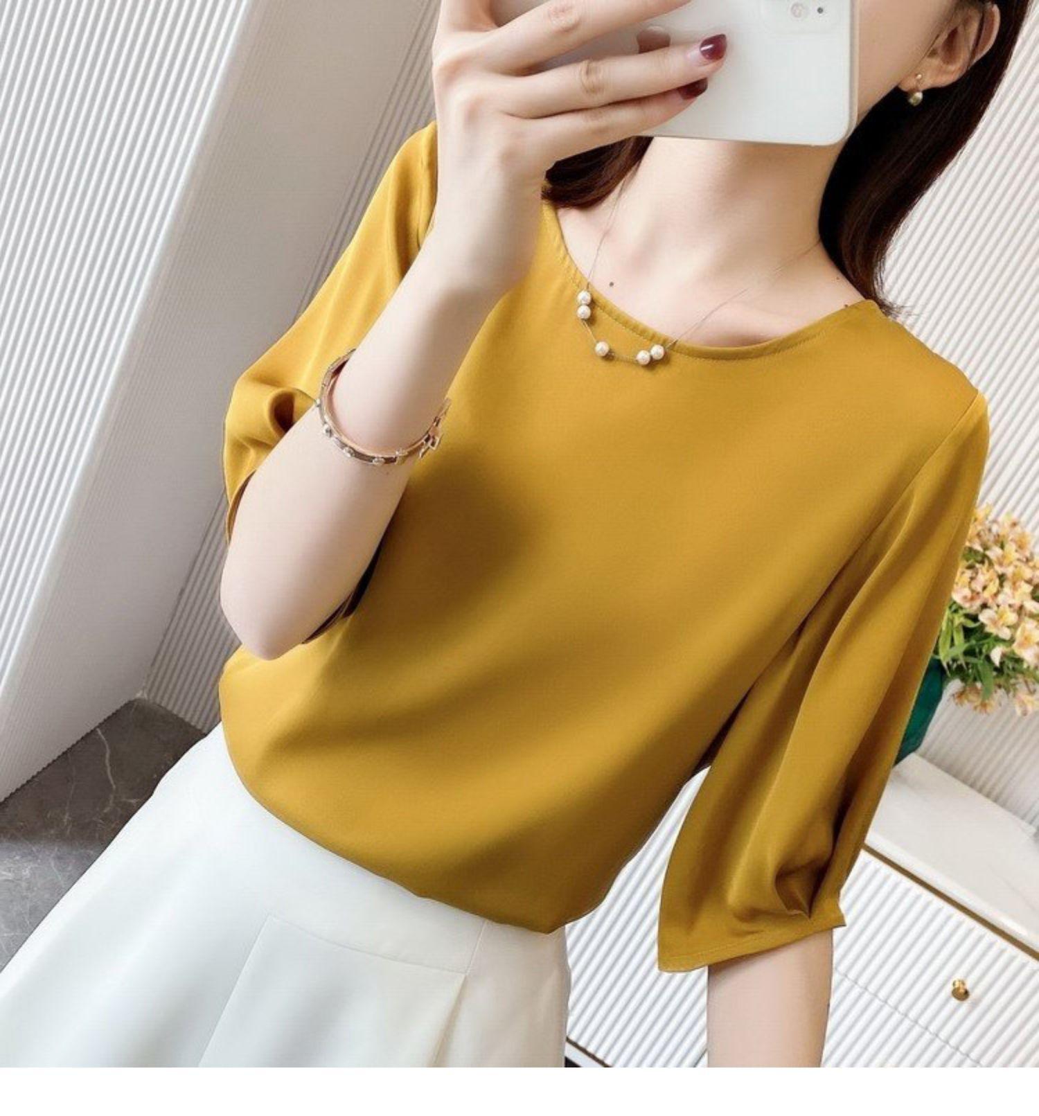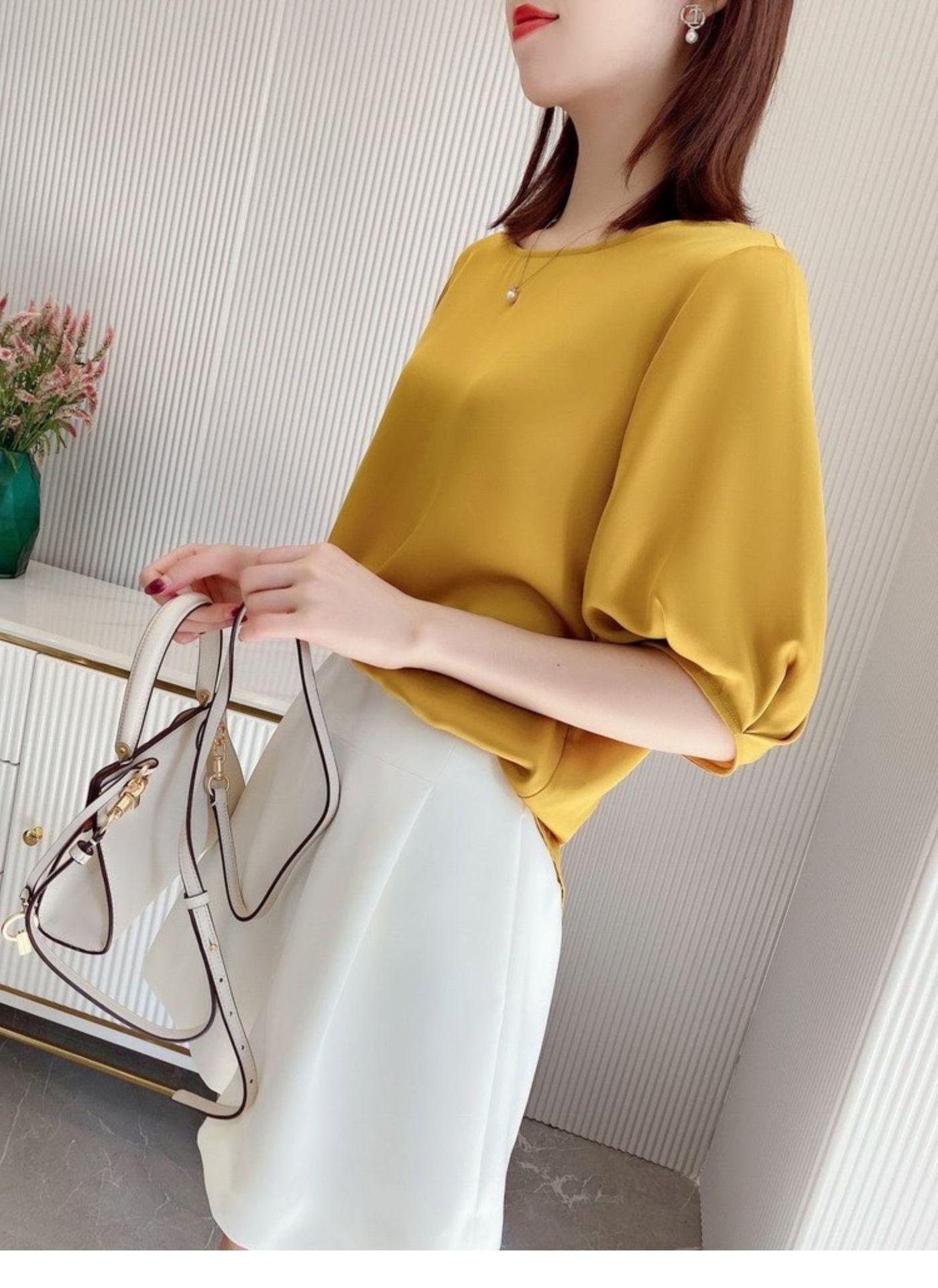 Camisa de manga corta gruesa con cuello redondo y drapeado, holgada, de gasa, para mujer, verano 2025