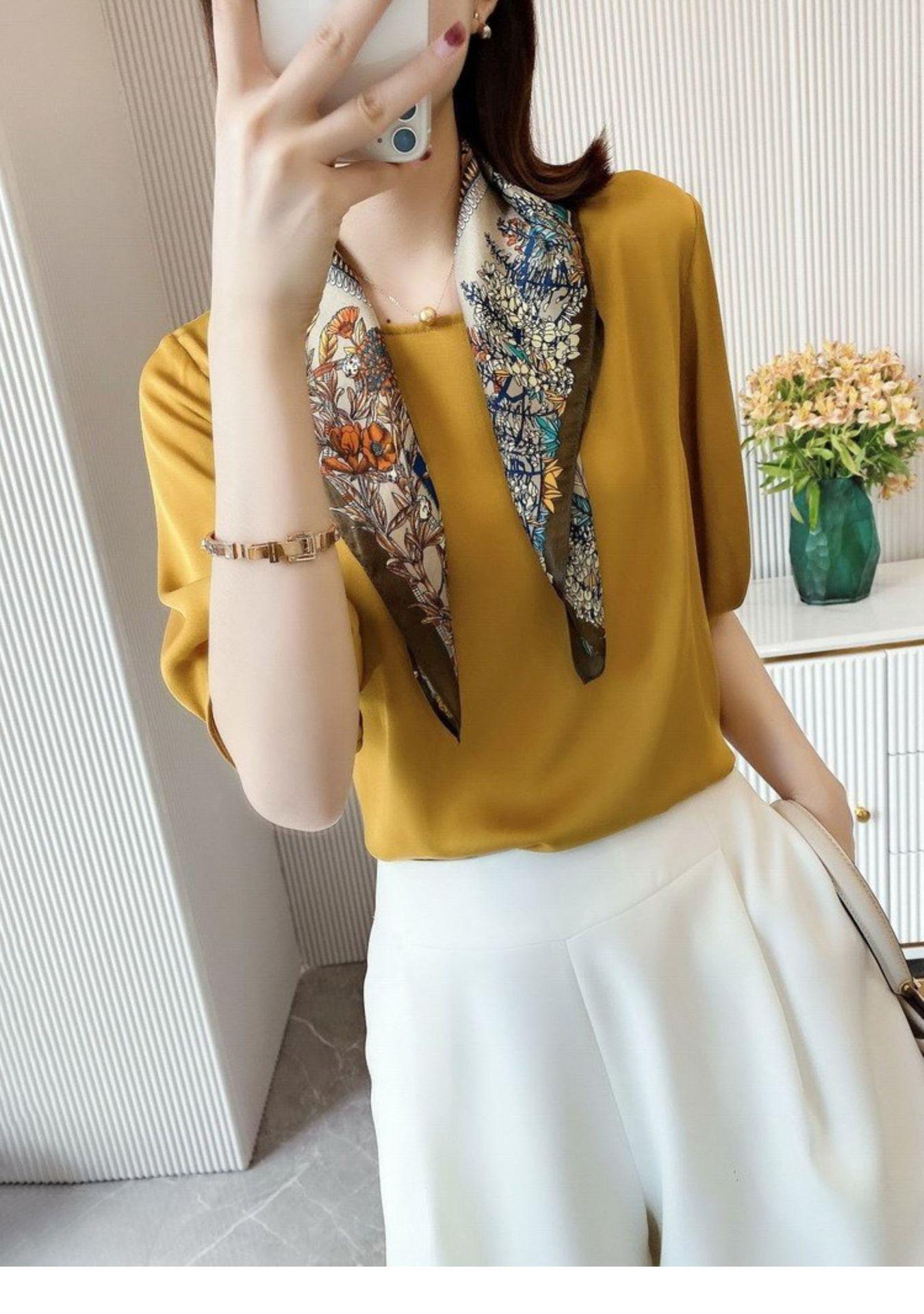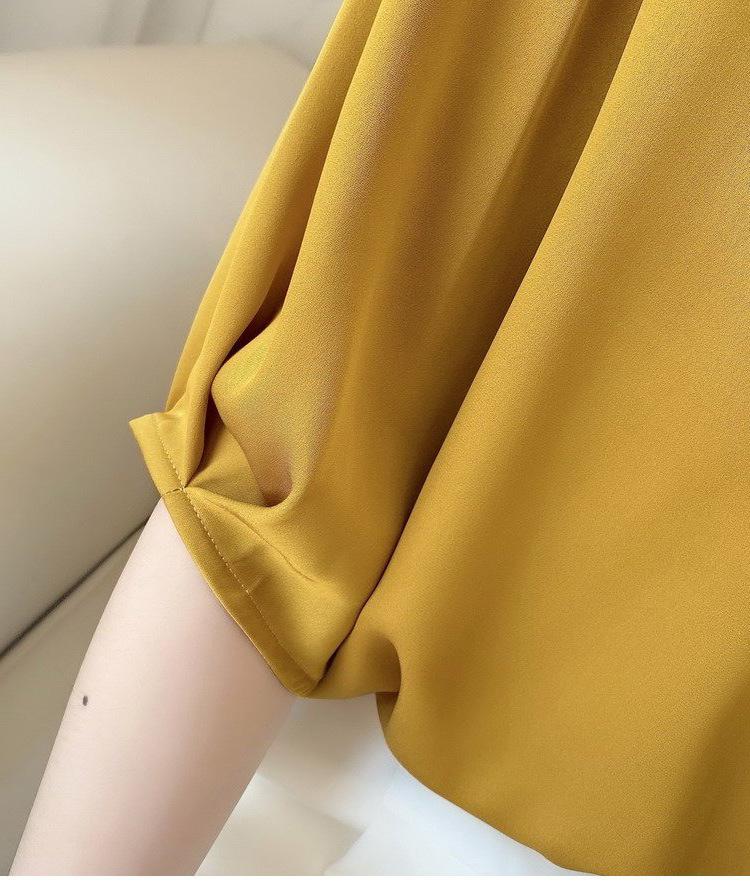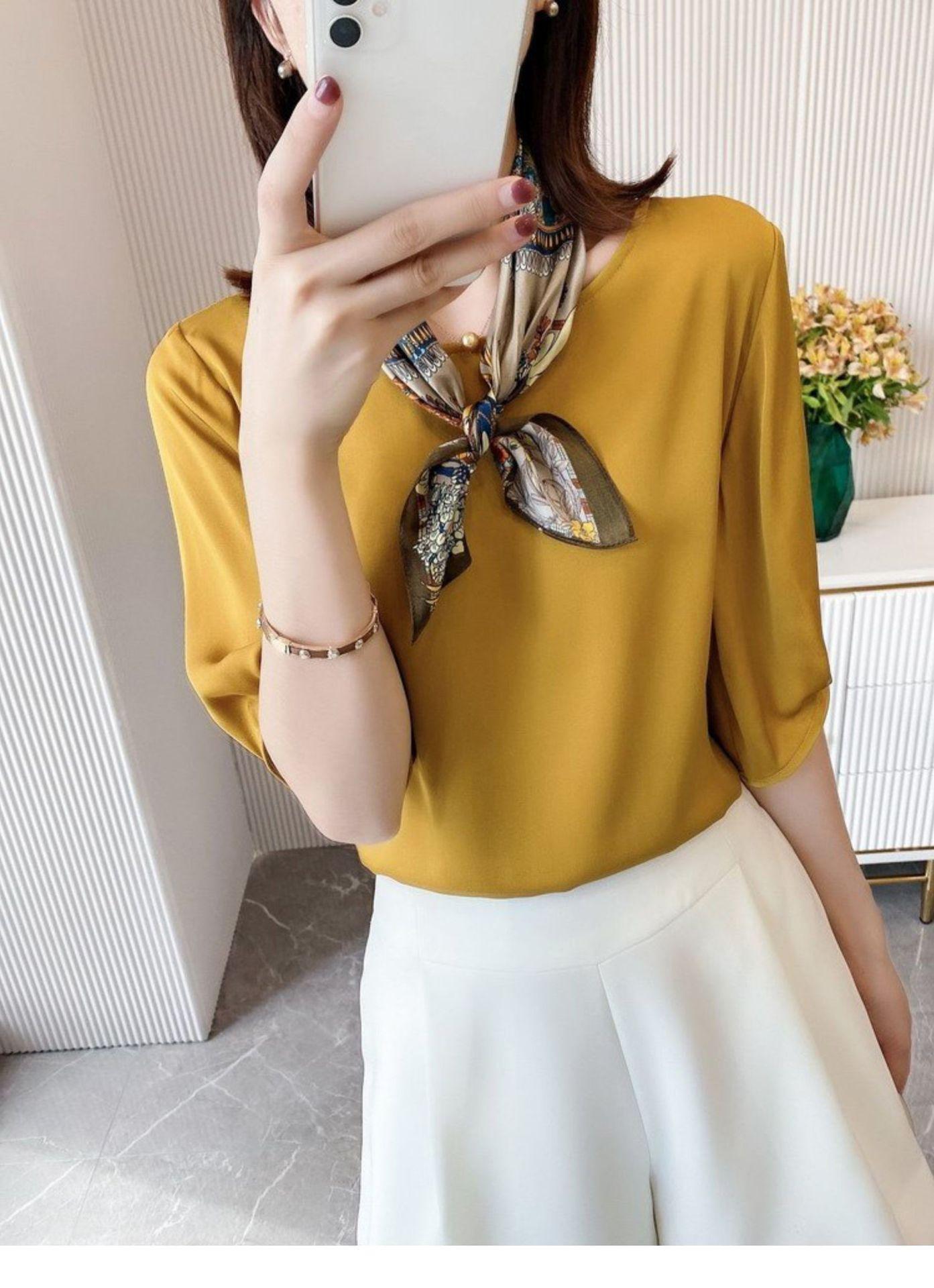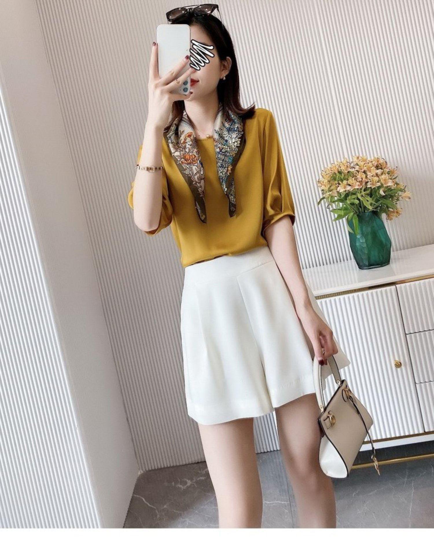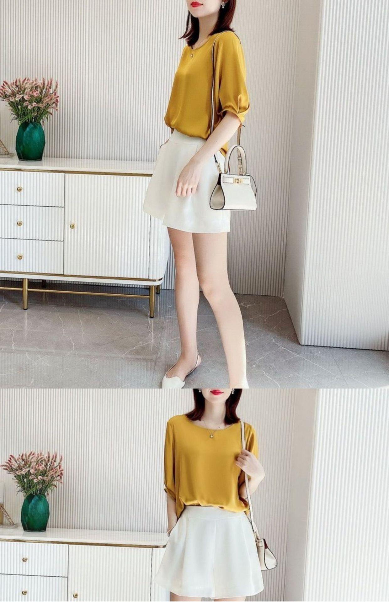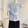 Camisa de manga corta gruesa con cuello redondo y drapeado, holgada, de gasa, para mujer, verano 2025